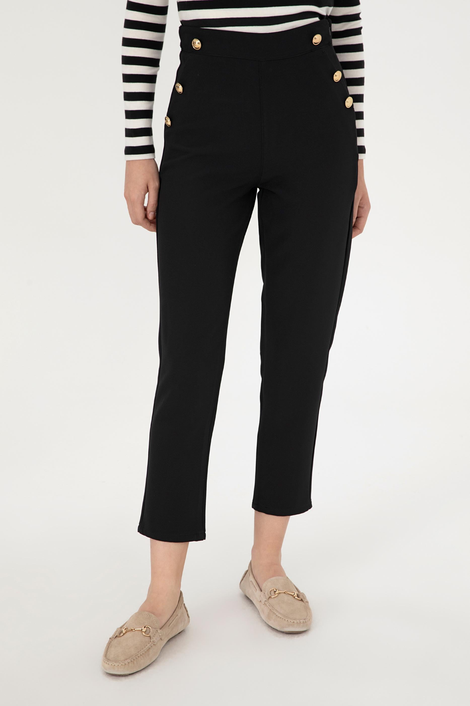 - Kadın Siyah Carrot Fit Kanvas Pantolon