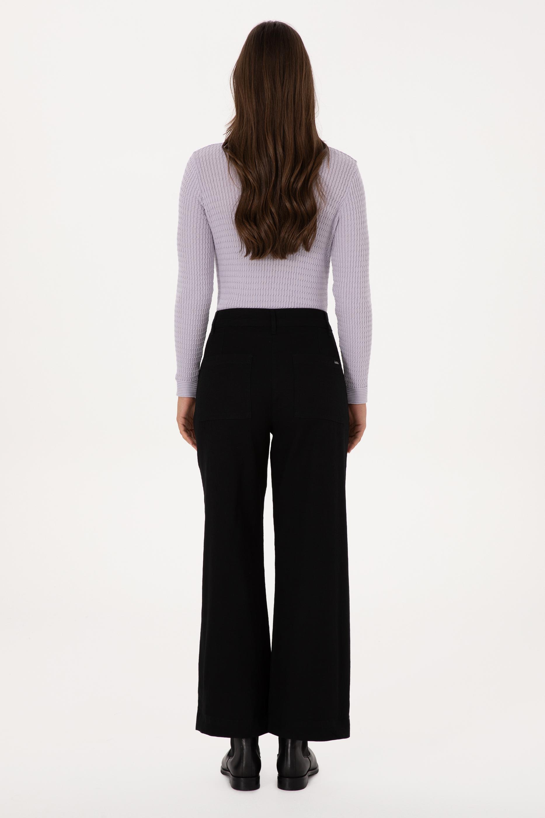 Kadın Siyah Loose Fit Kanvas Pantolon