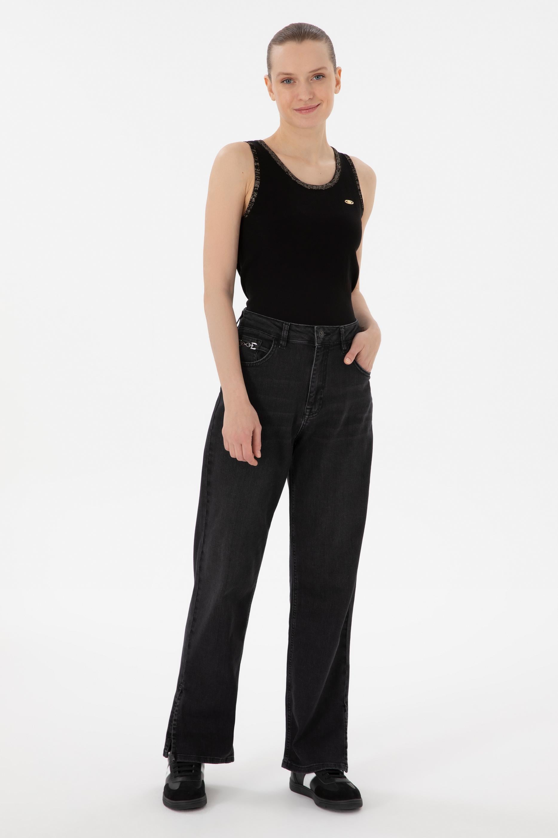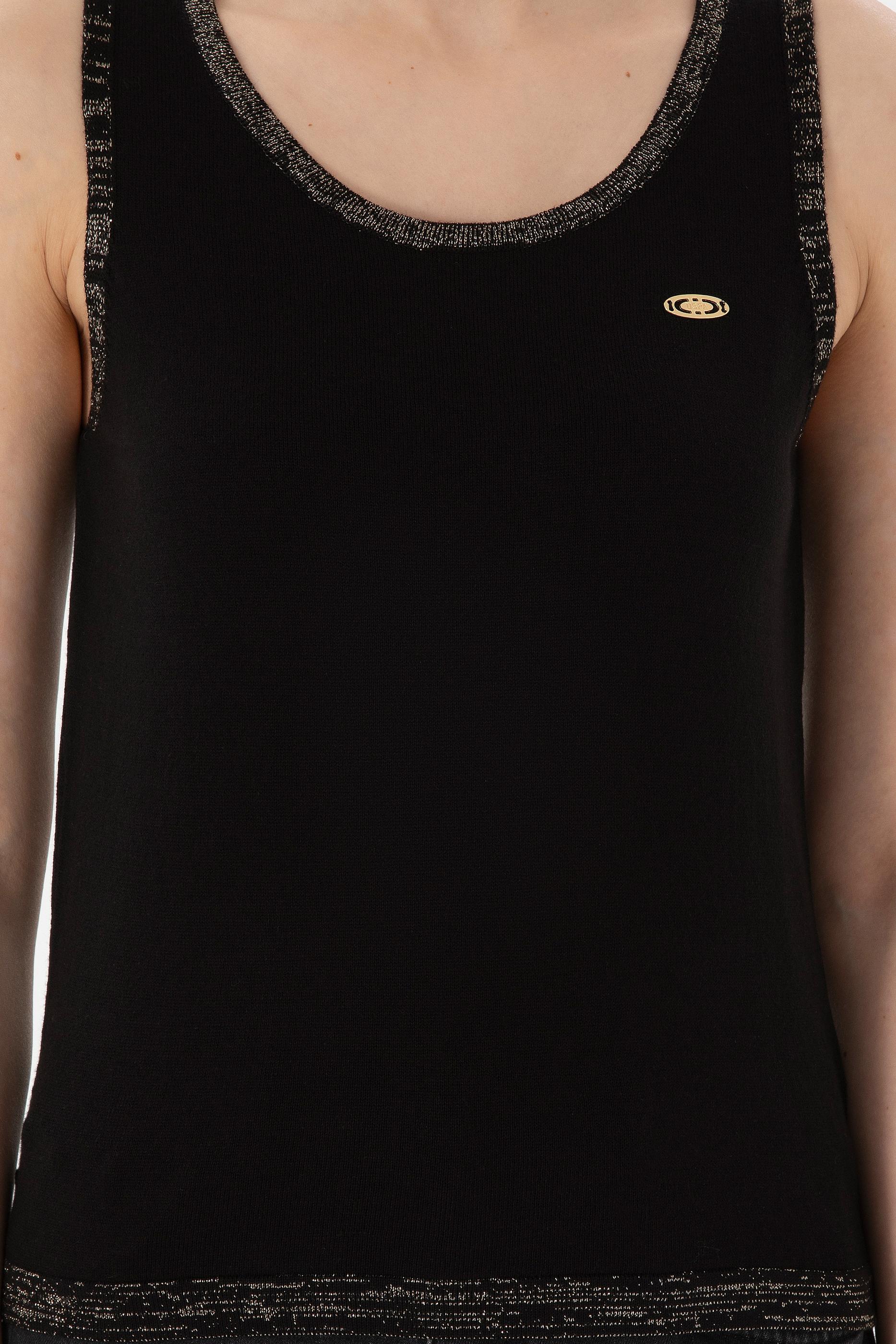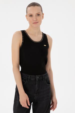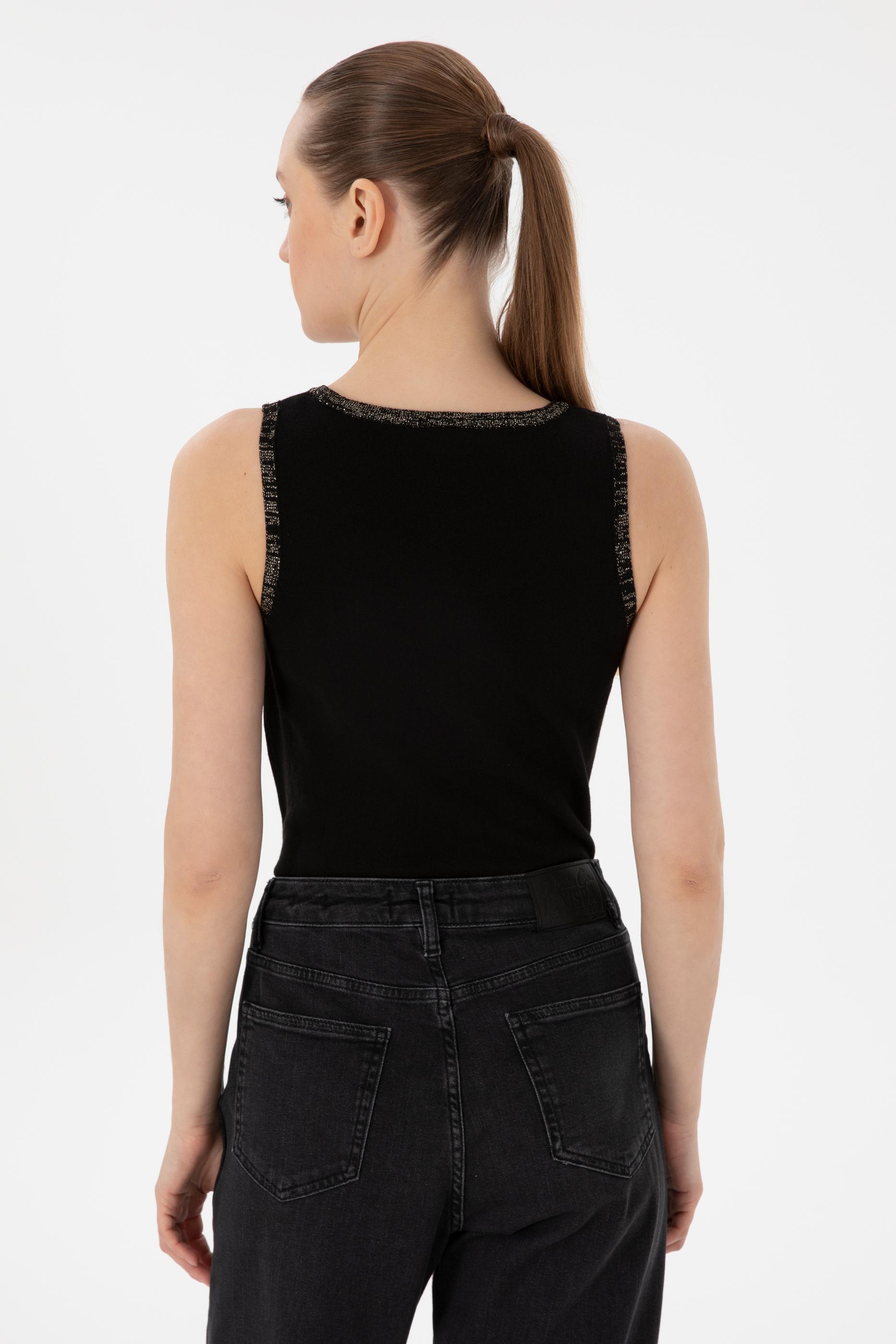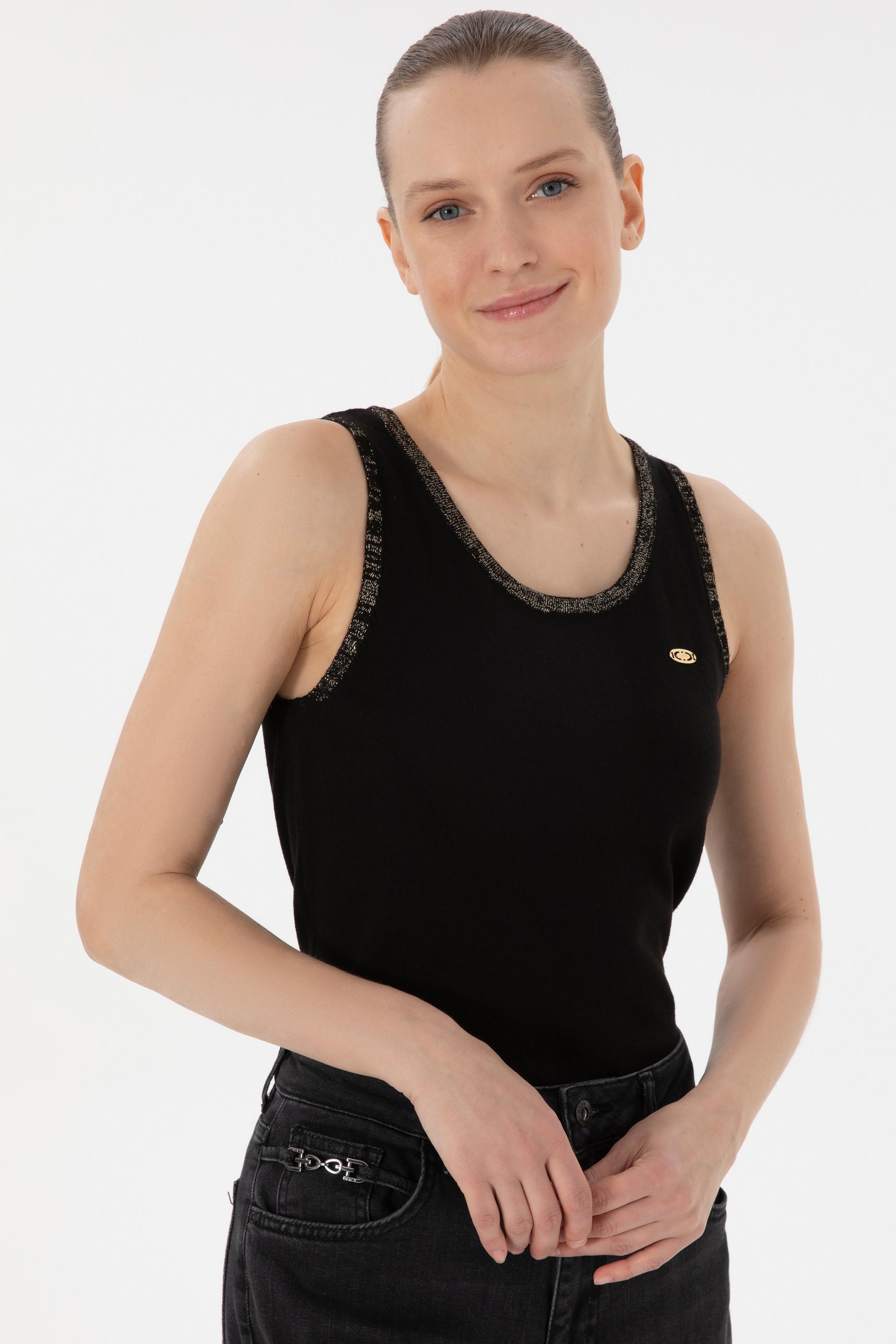 Kadın Siyah Bisiklet Yaka Triko Tişört