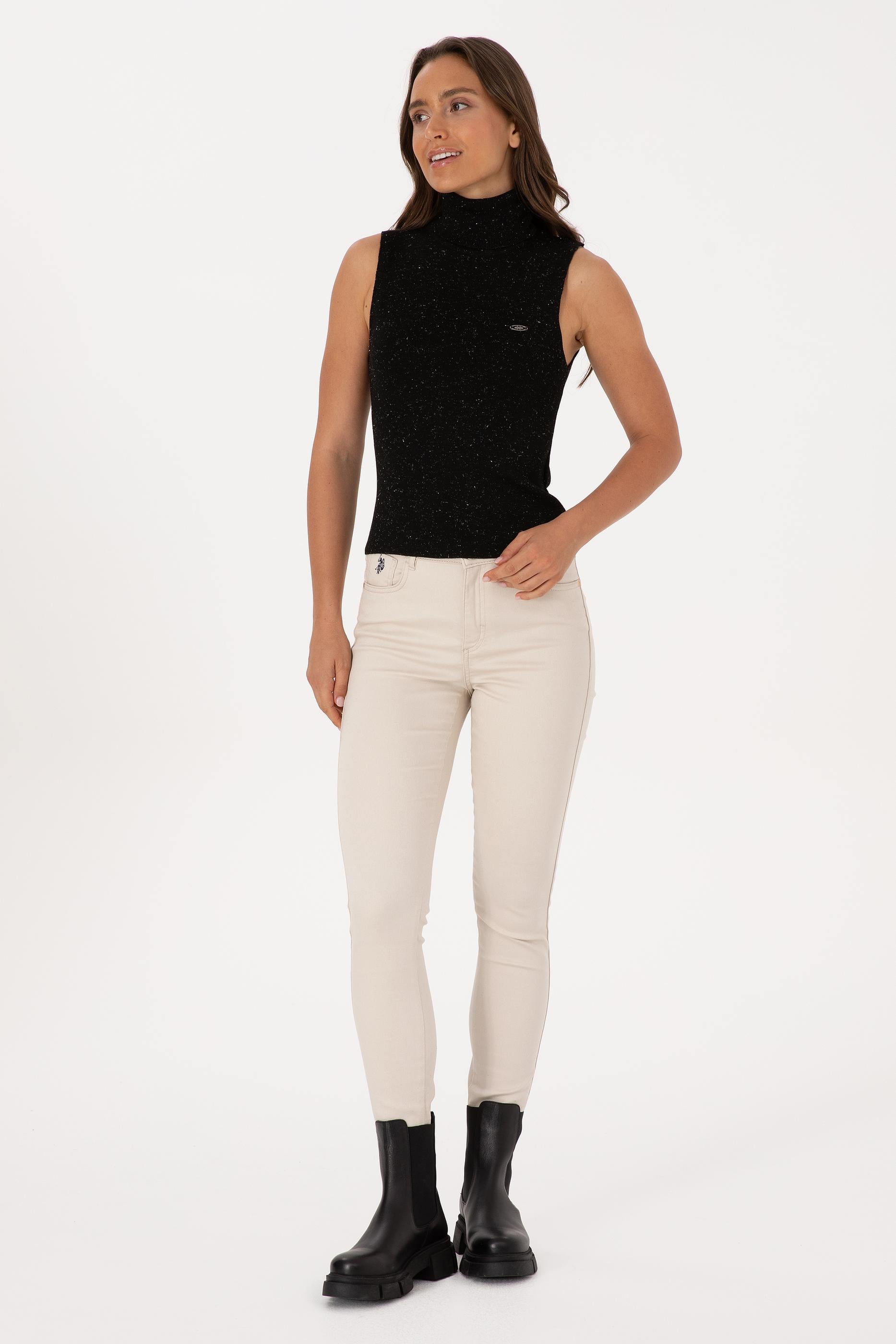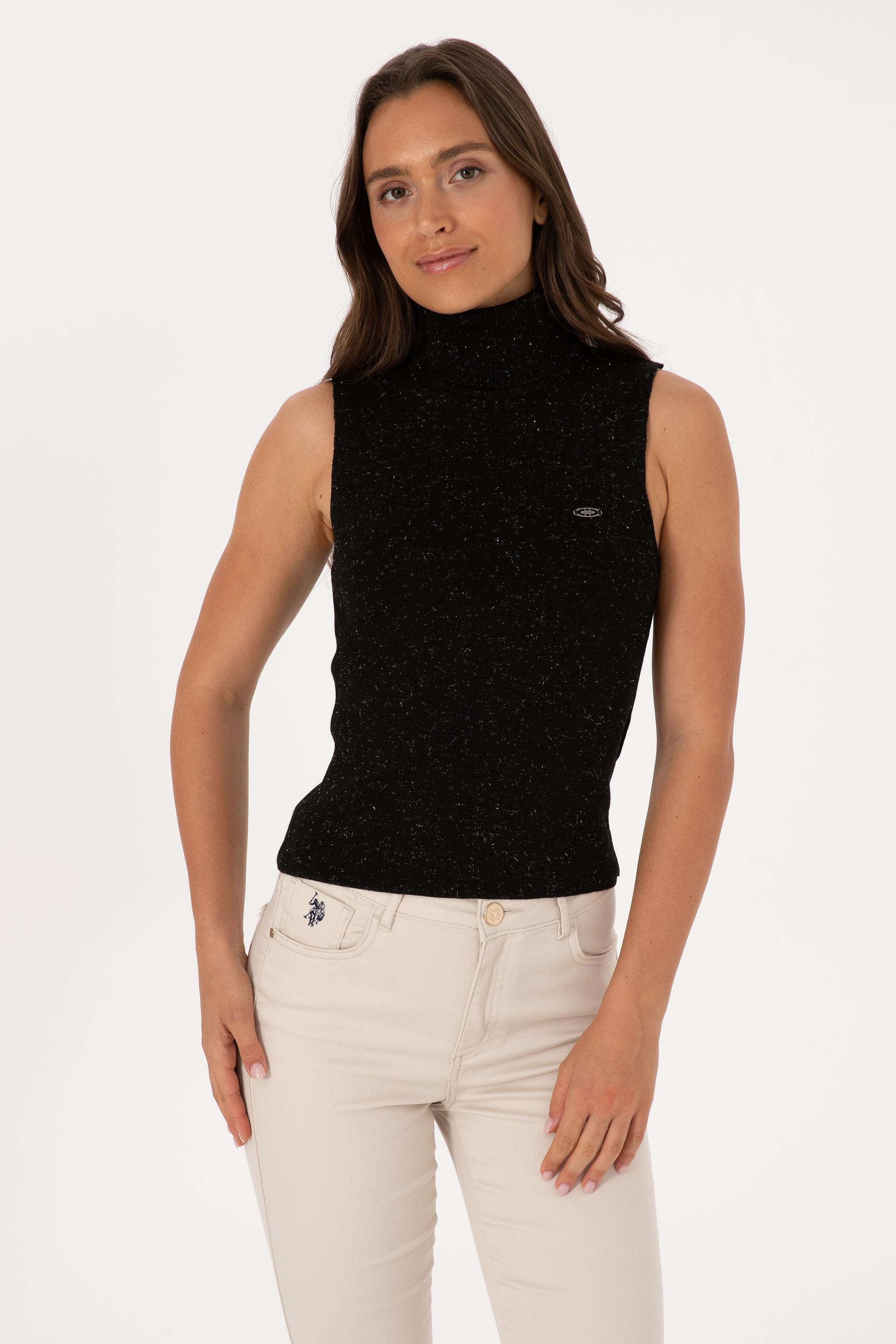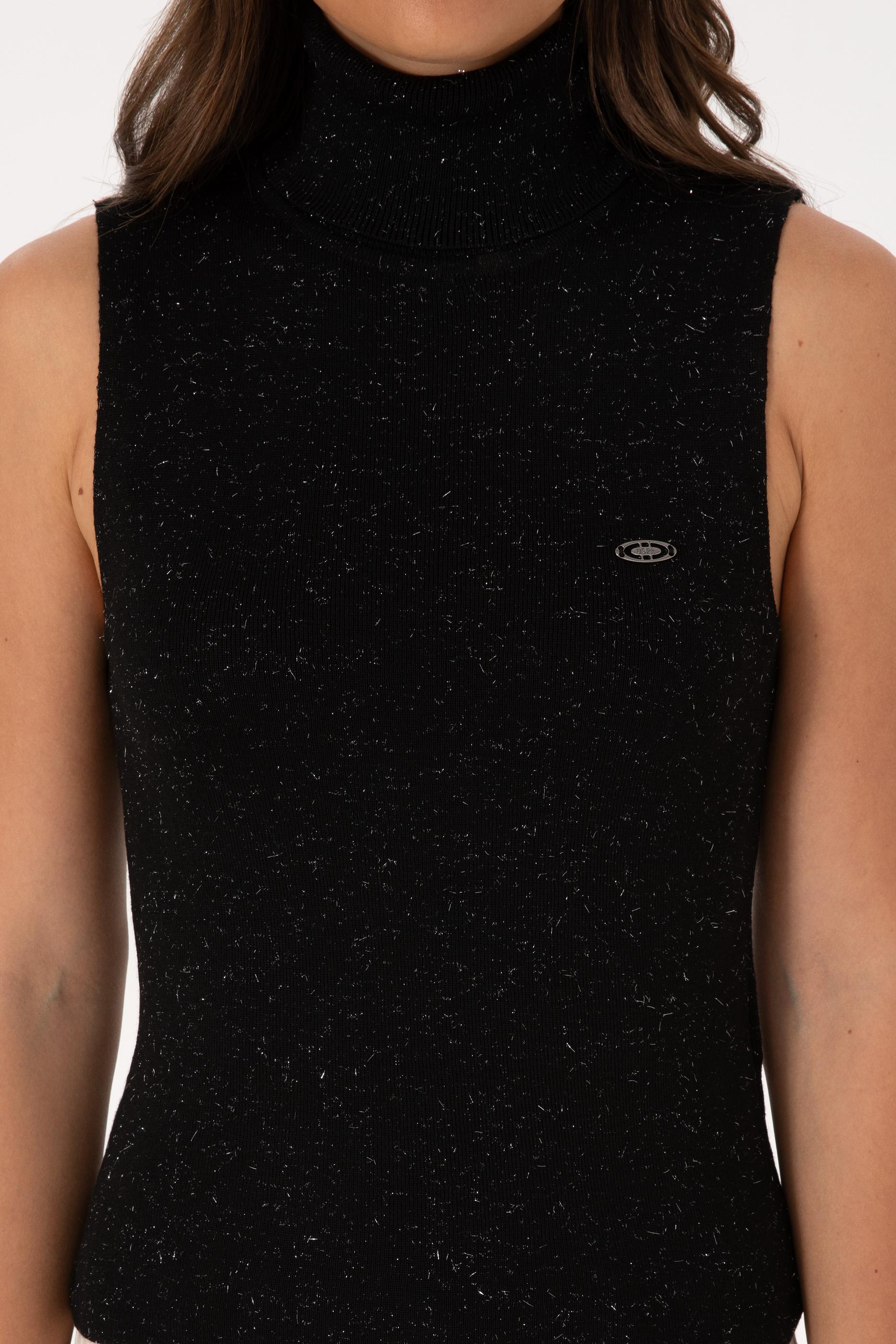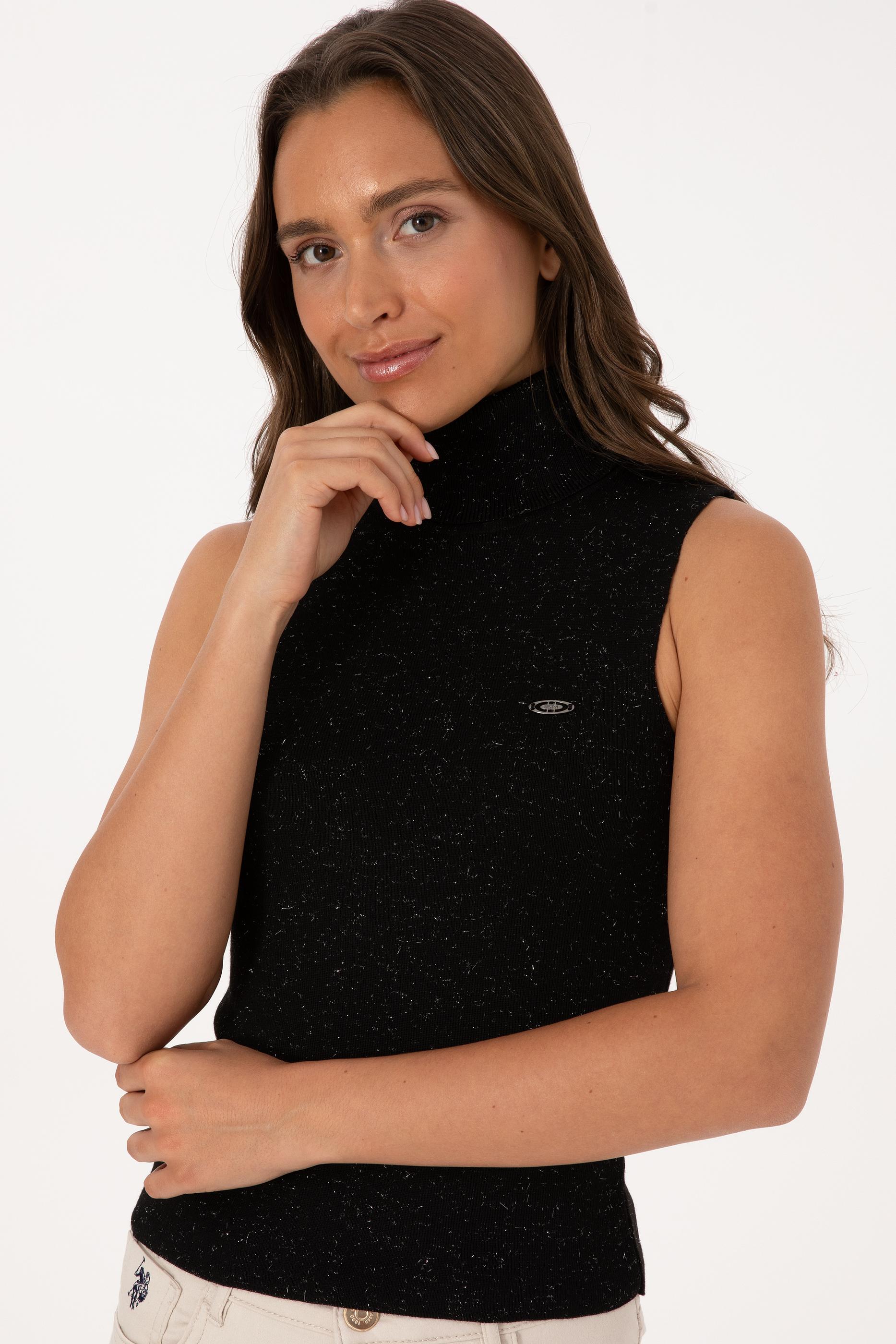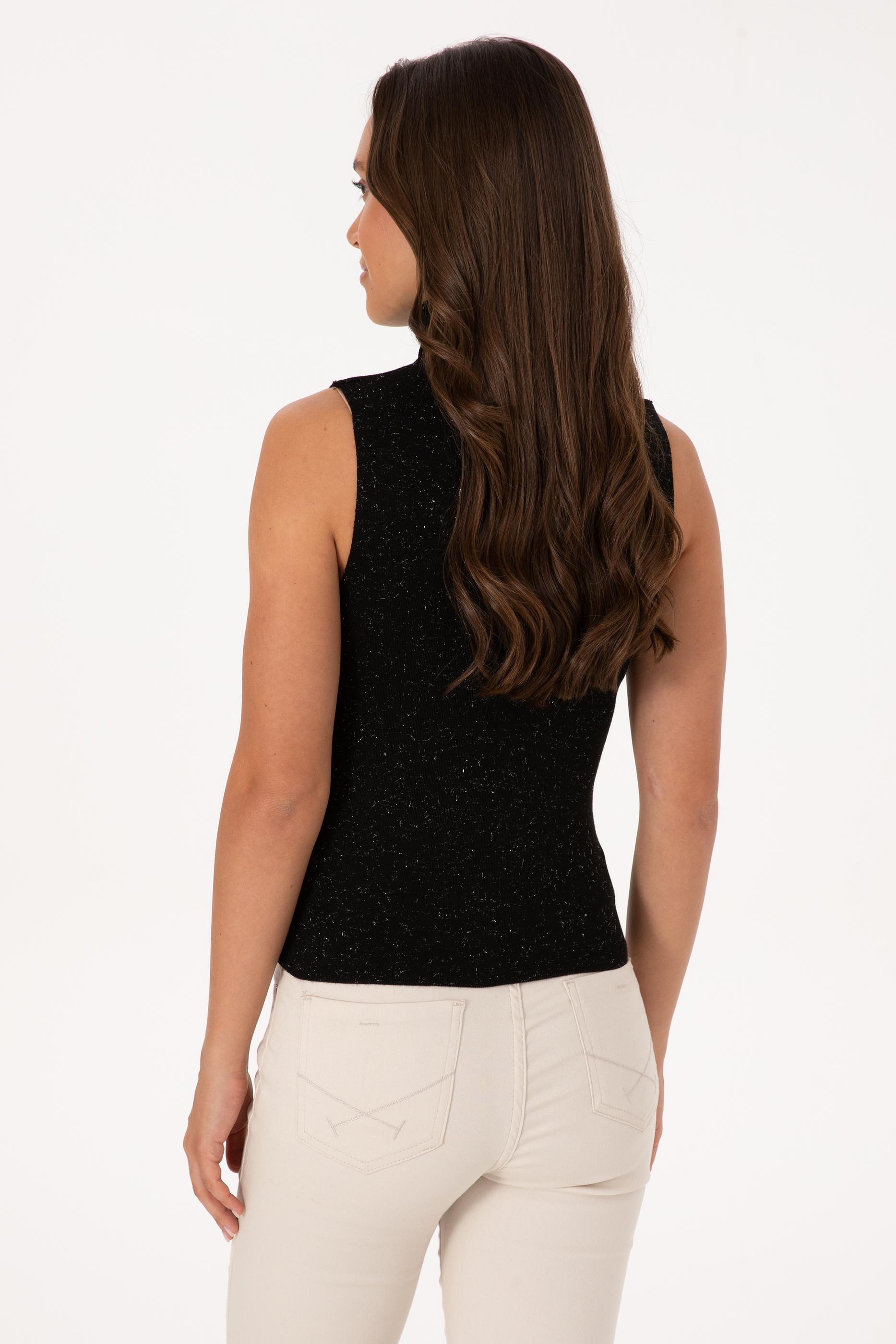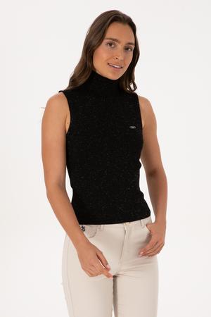Kadın Siyah Boğazlı Simli Kazak