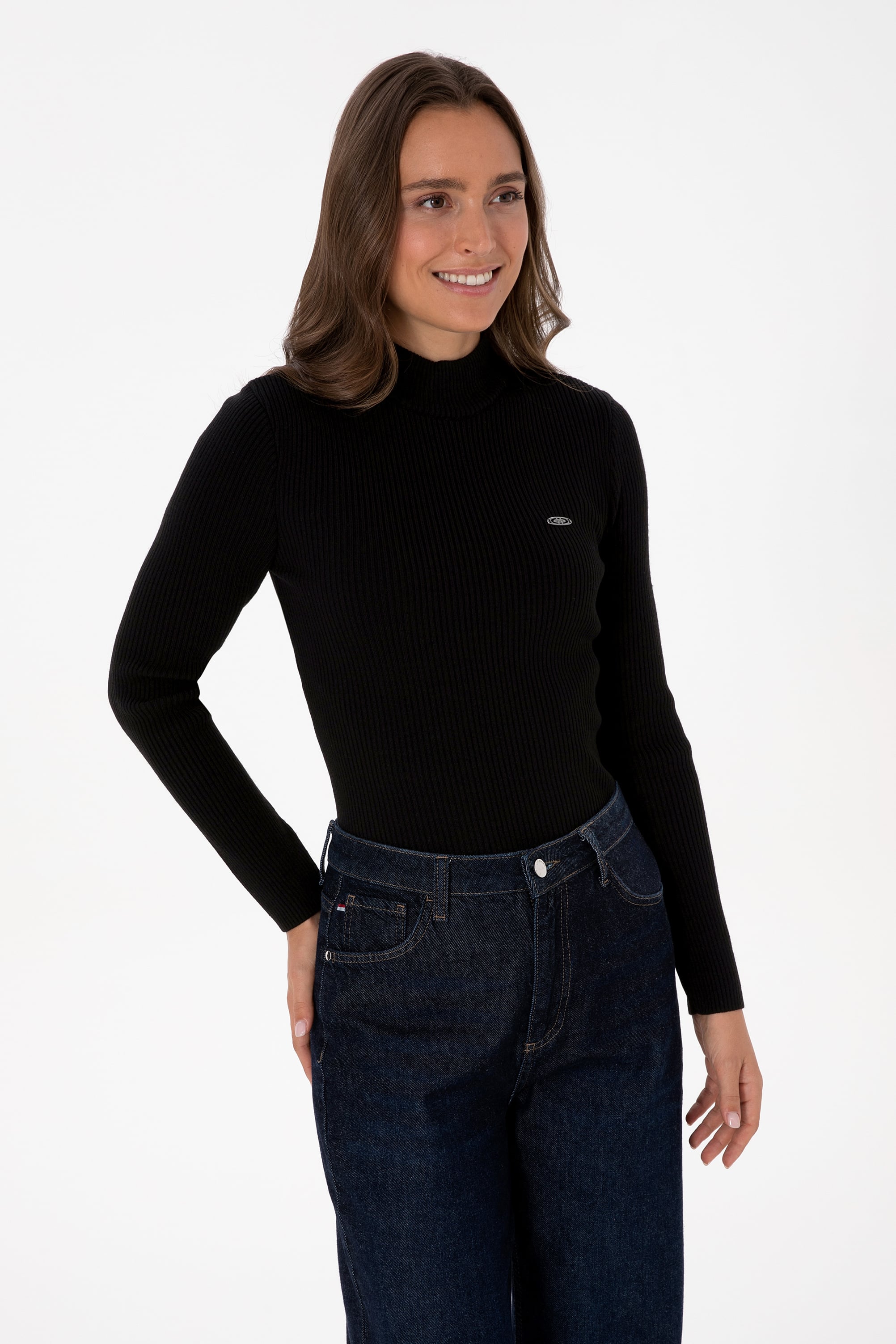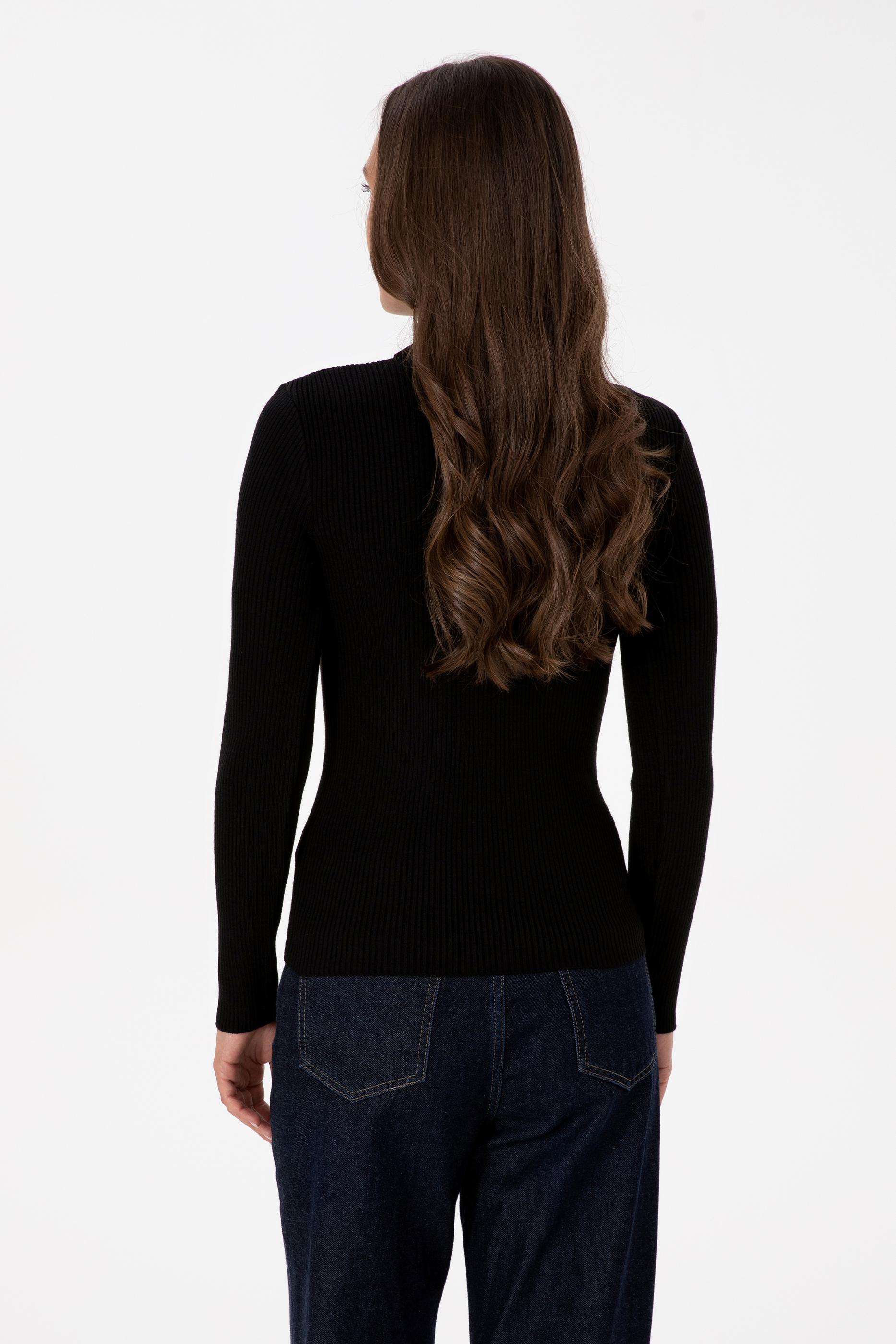 Kadın Siyah Balıkçı Yaka Kazak - 50315937002