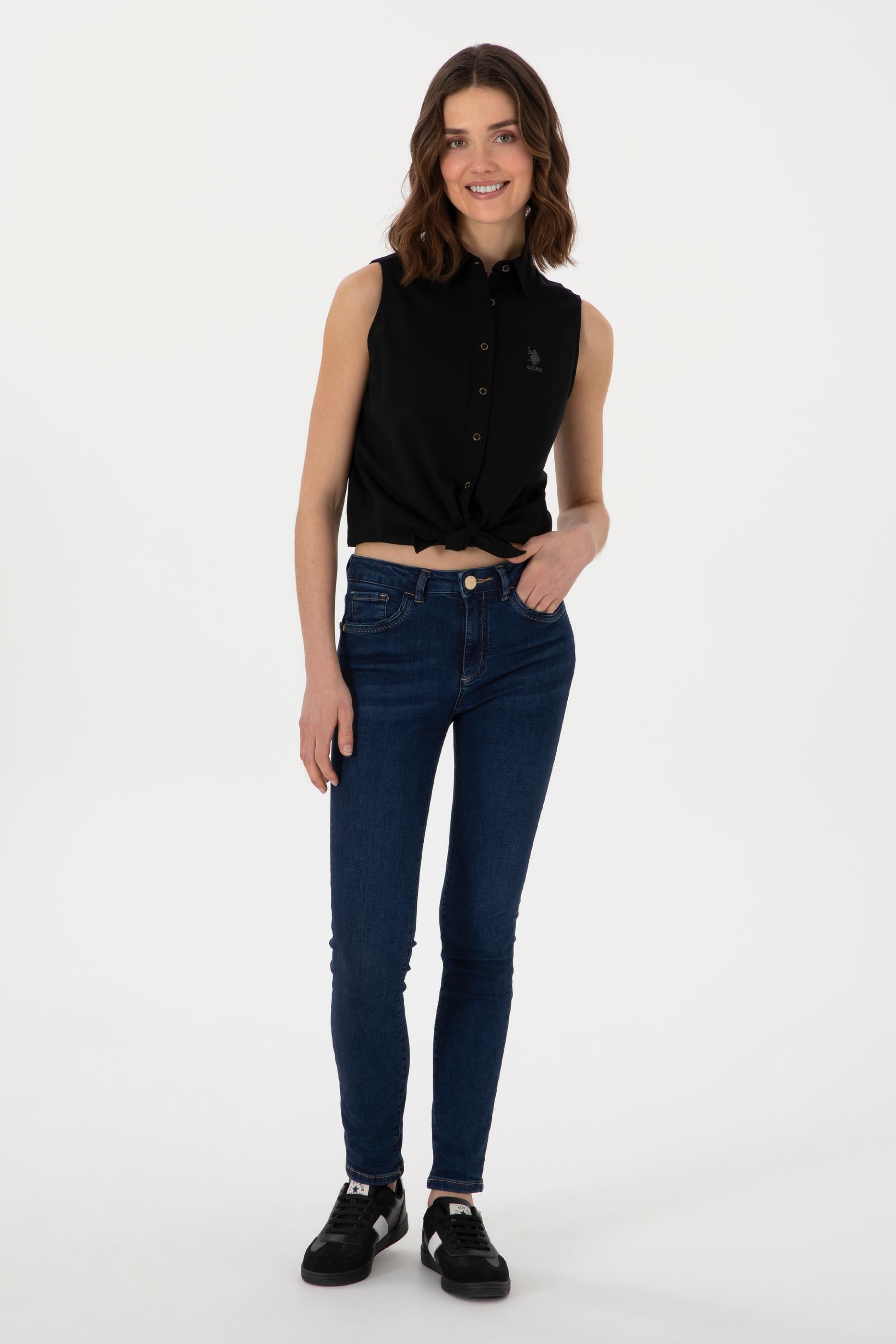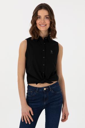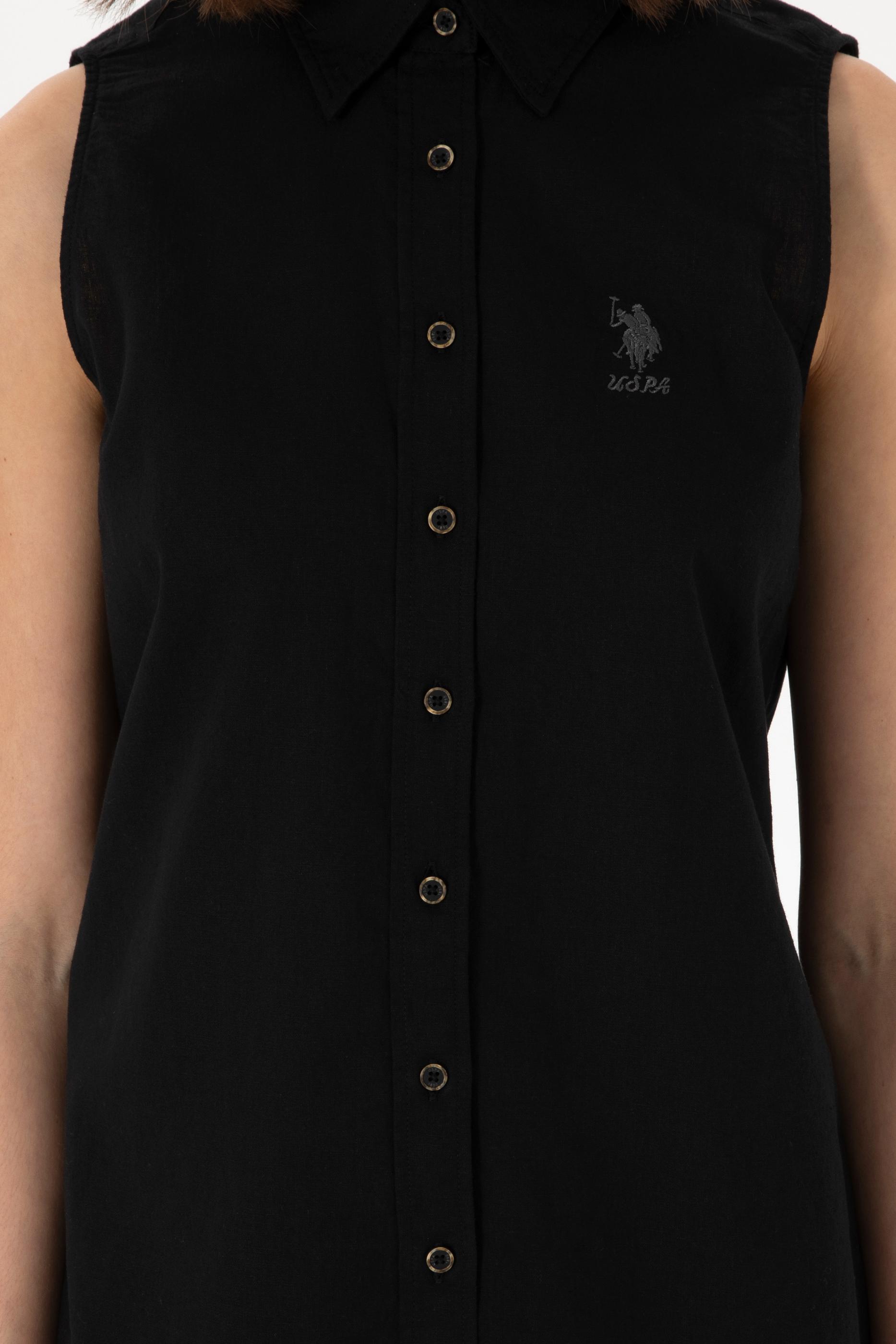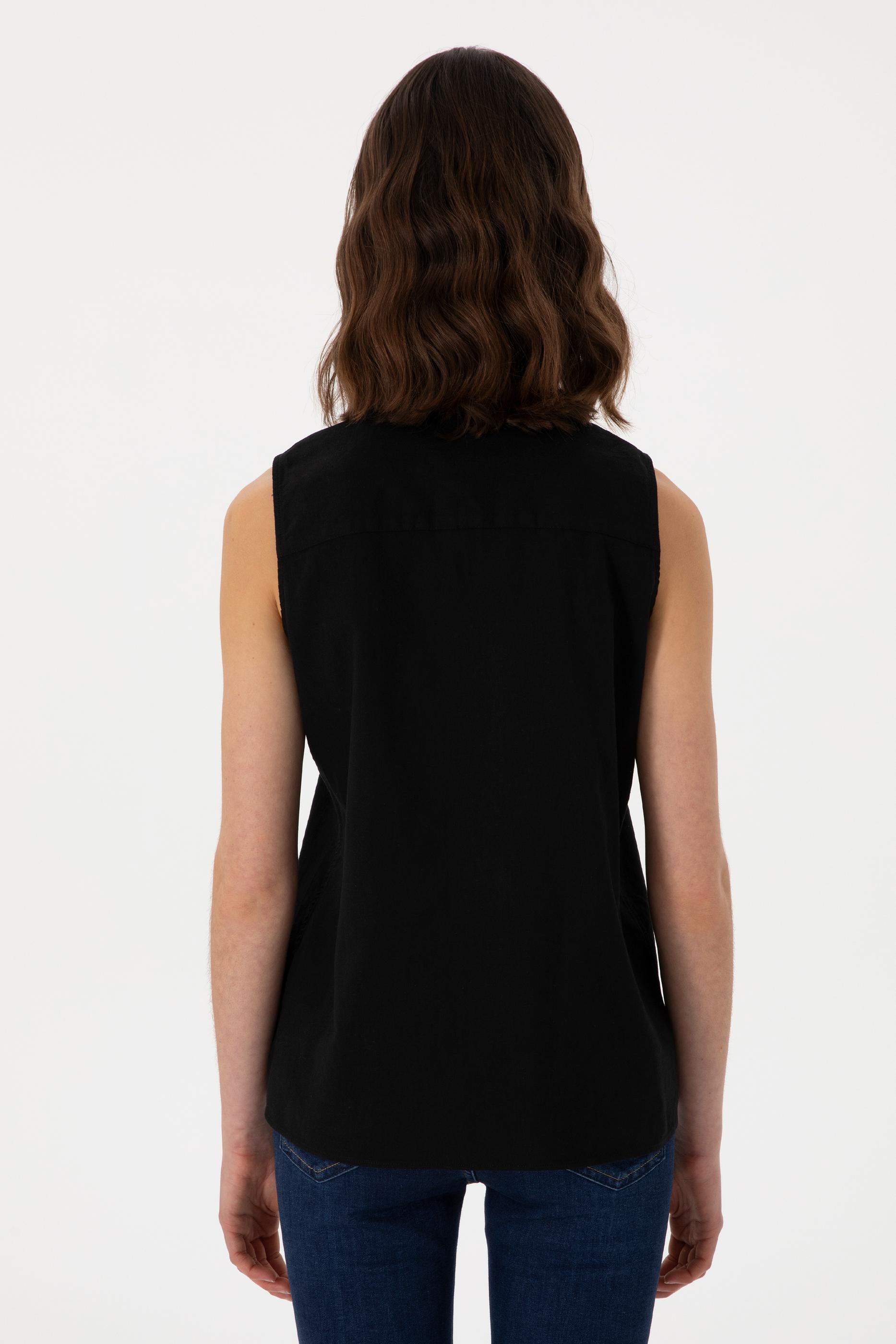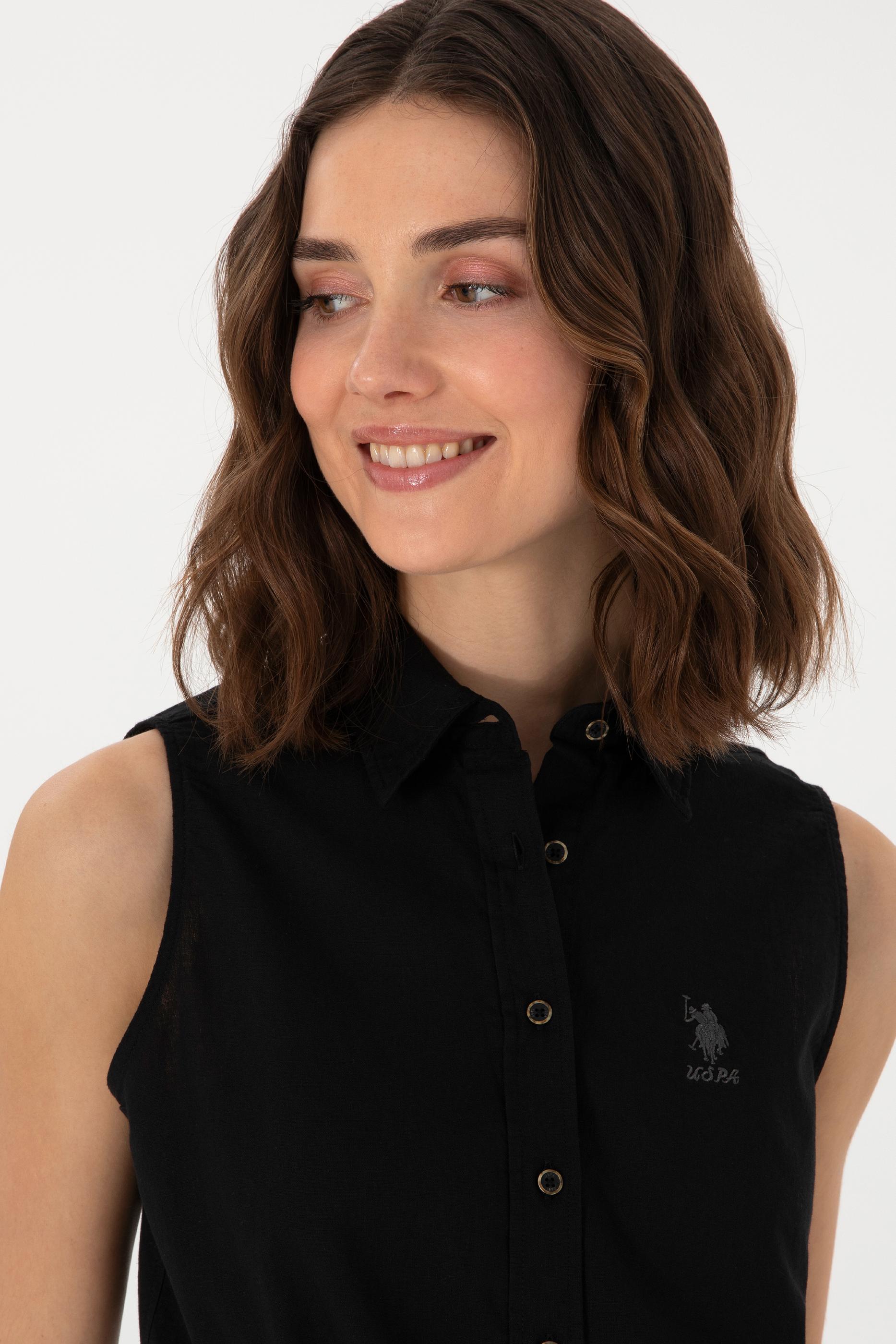 - Kadın Siyah Keten Karışımlı Kısa Kollu Gömlek
