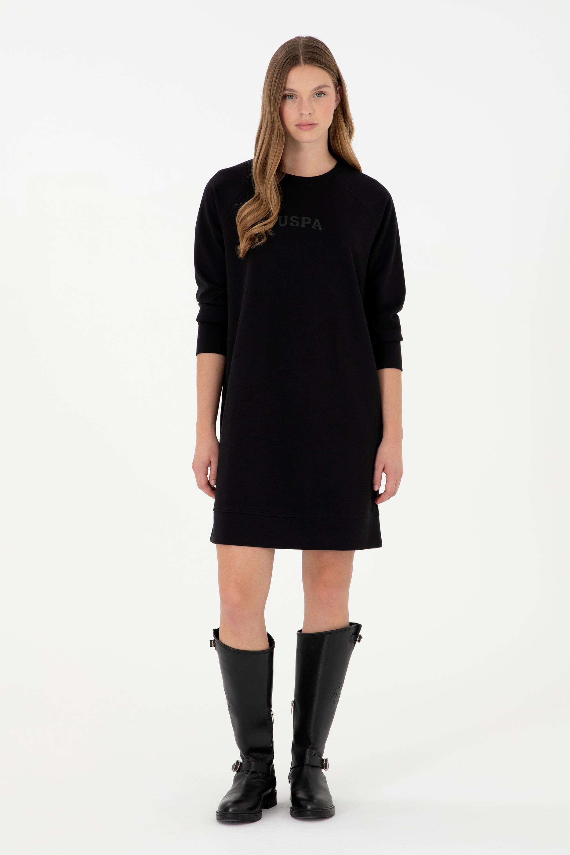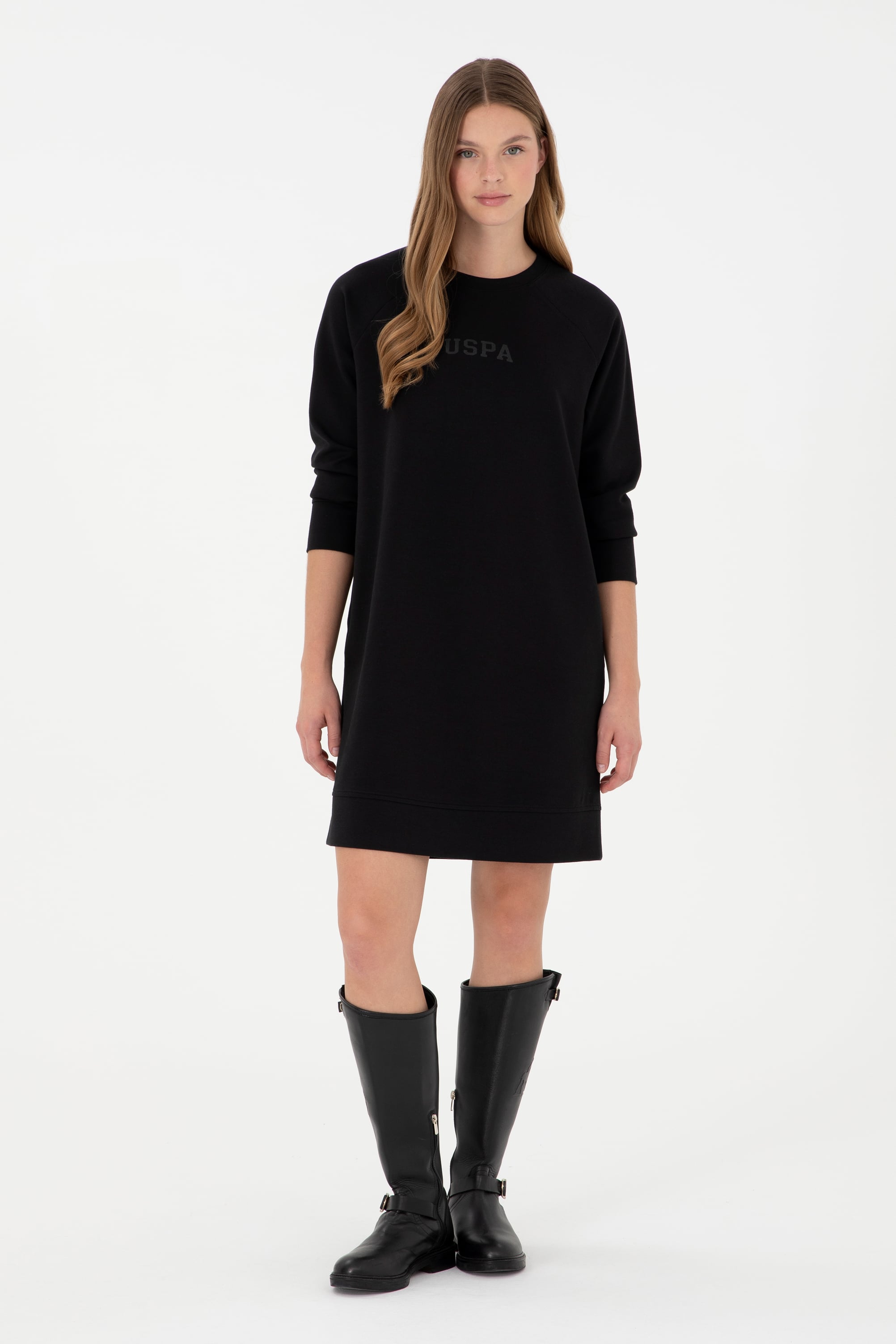 Kadın Siyah Sweatshirt Bisiklet Yaka Mini Boy Örme Elbise