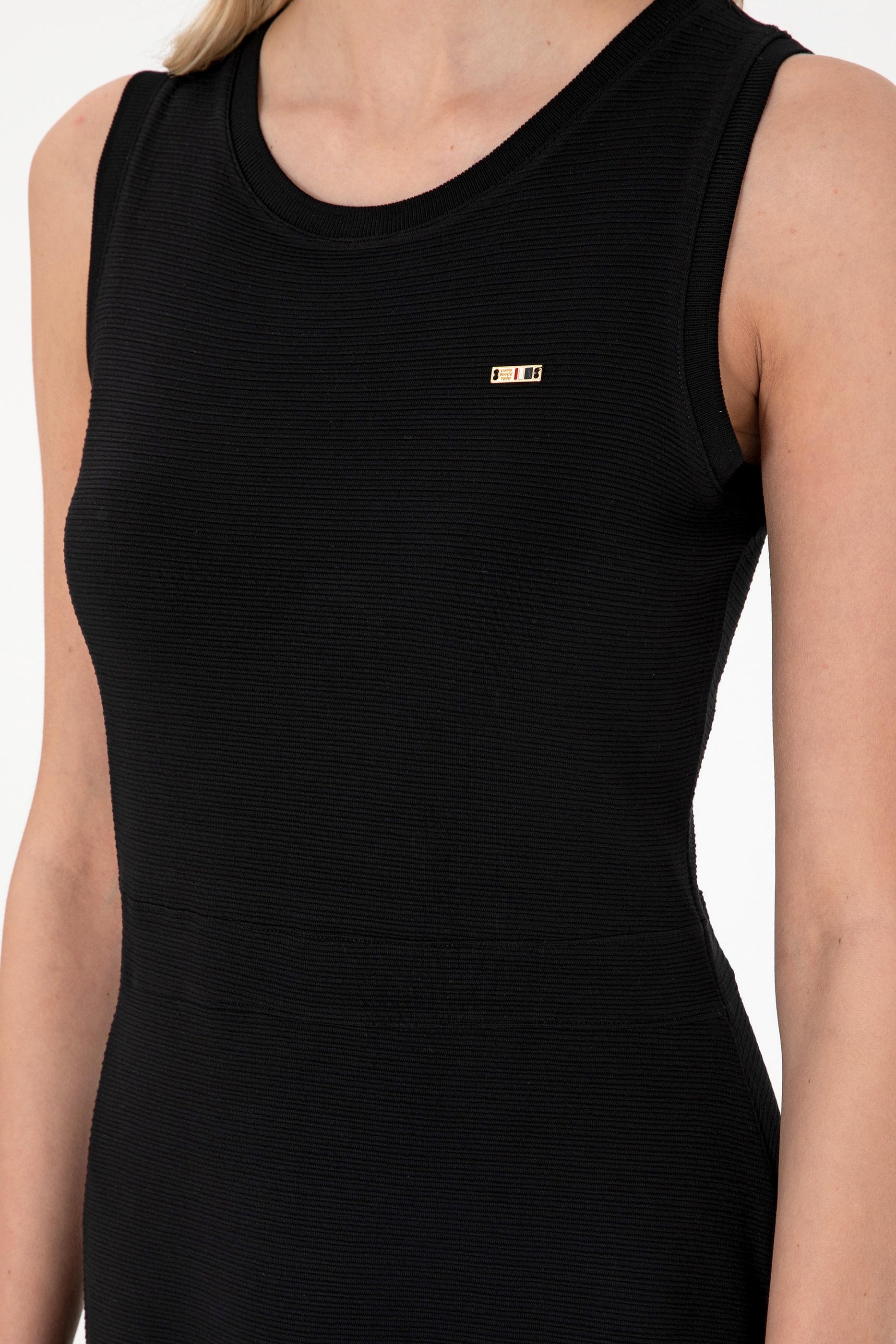 Kadın Siyah Kolsuz Bisiklet Yaka Mini Boy Örme Elbise