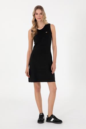 U.S. Polo Assn. estetiğini yalın çizgilerle yansıtan bu siyah mini elbise, bisiklet yaka ve kolsuz tasarımıyla sade ama güçlü bir stil sunar. Yumuşak dokulu örme kumaşı ve rahat kesimiyle gün boyu konfor sağlarken, vücuda oturan yapısıyla modern bir siluet oluşturur. Göğüs kısmındaki küçük logo detayı markanın karakteristik duruşunu zarifçe yansıtır. Siyah rengin asil ve zamansız etkisiyle hem spor hem şık kombinlere kolayca uyum sağlayan bu model, kapsül dolabın olmazsa olmaz parçalarından biridir.