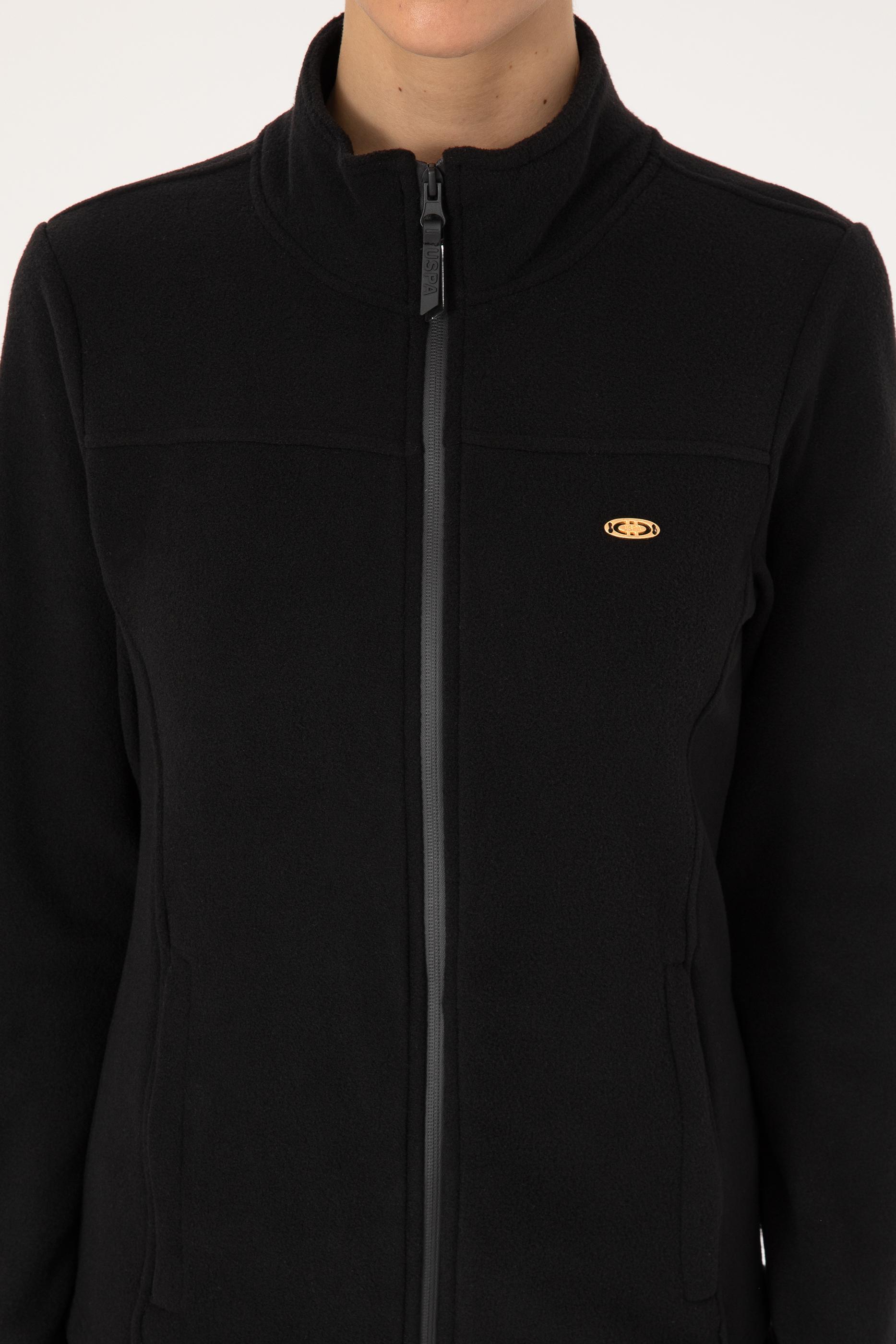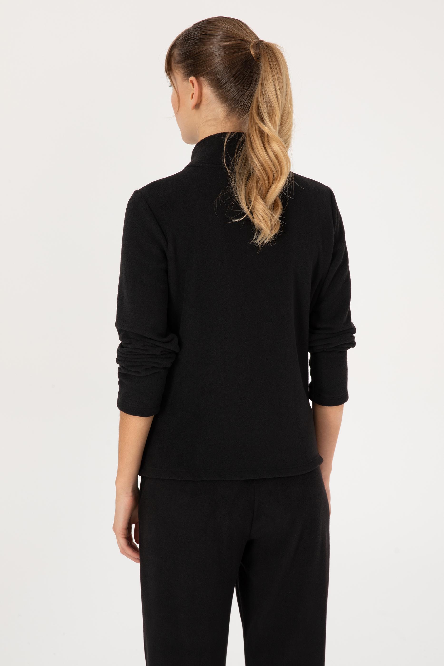 Kadın Siyah Fermuarlı Dik Yaka Polar Sweatshirt