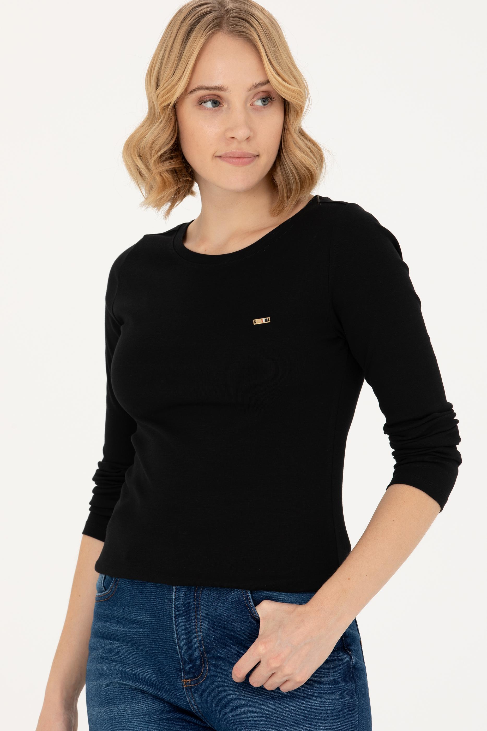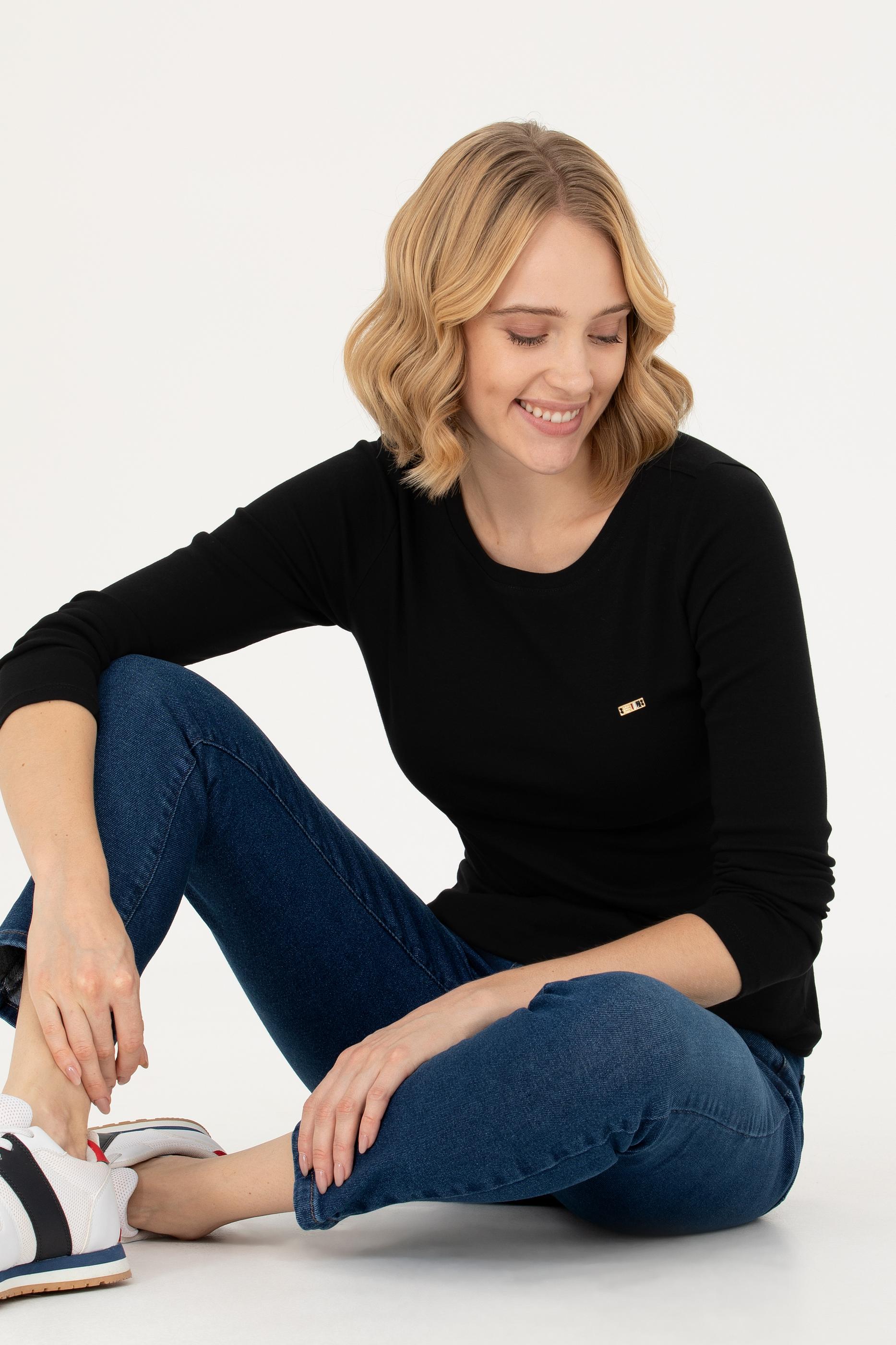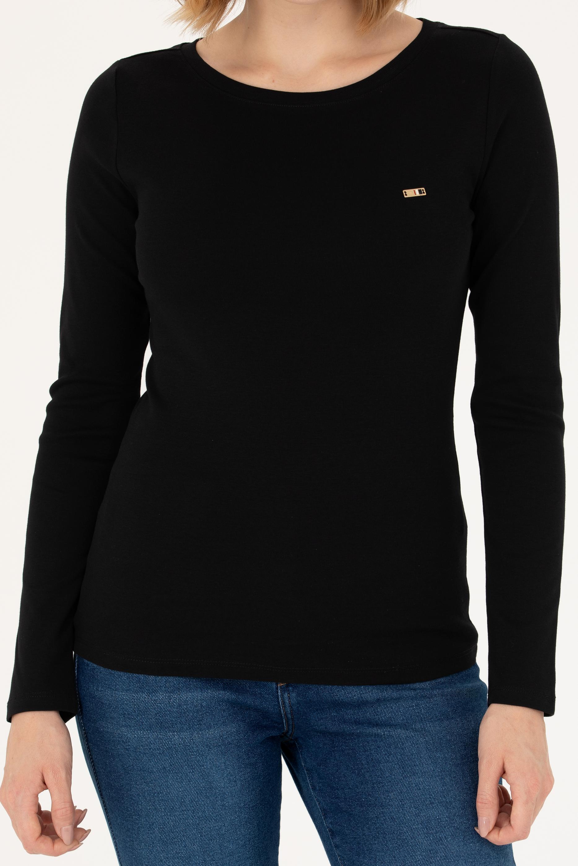 "name": "Kadın Siyah Kayık Yaka Sweatshirt",