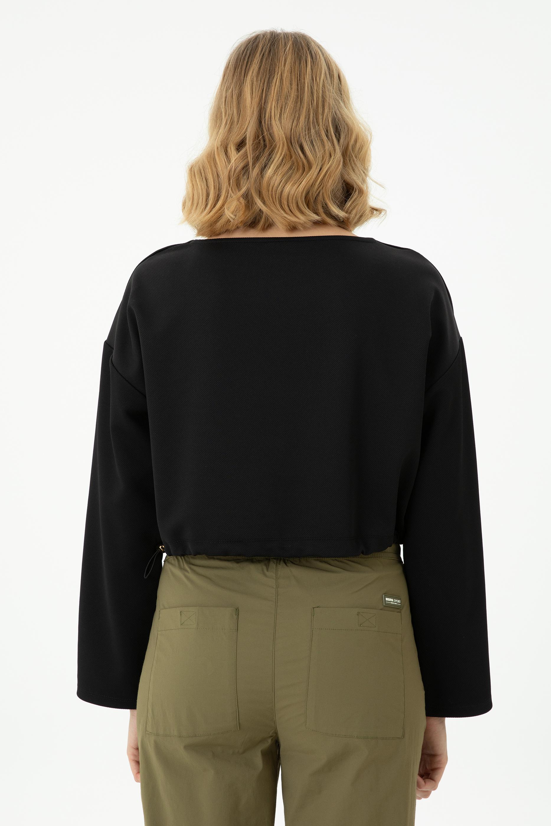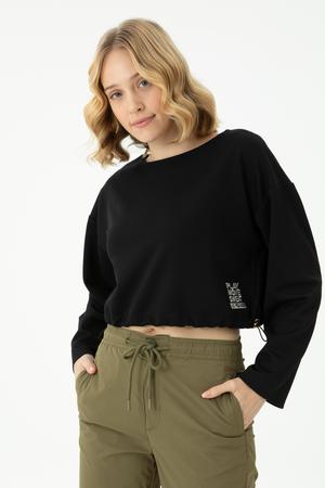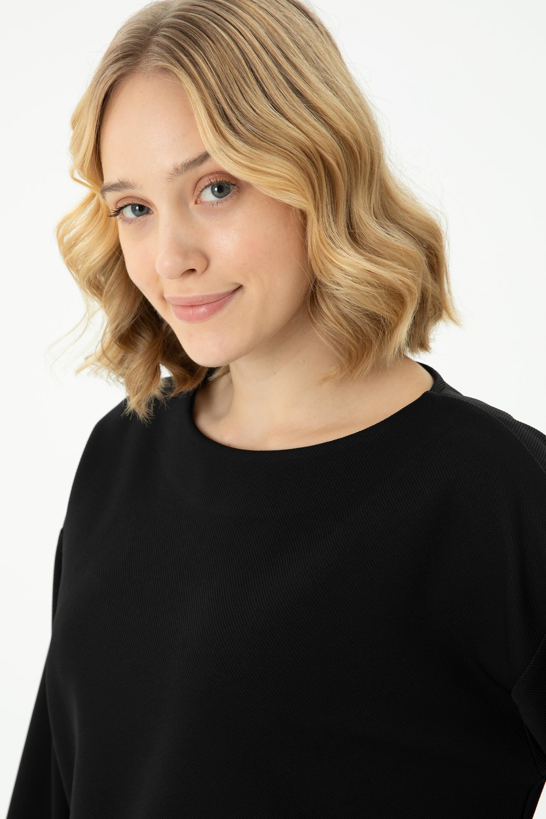 Kadın Siyah Bisiklet Yaka Sweatshirt