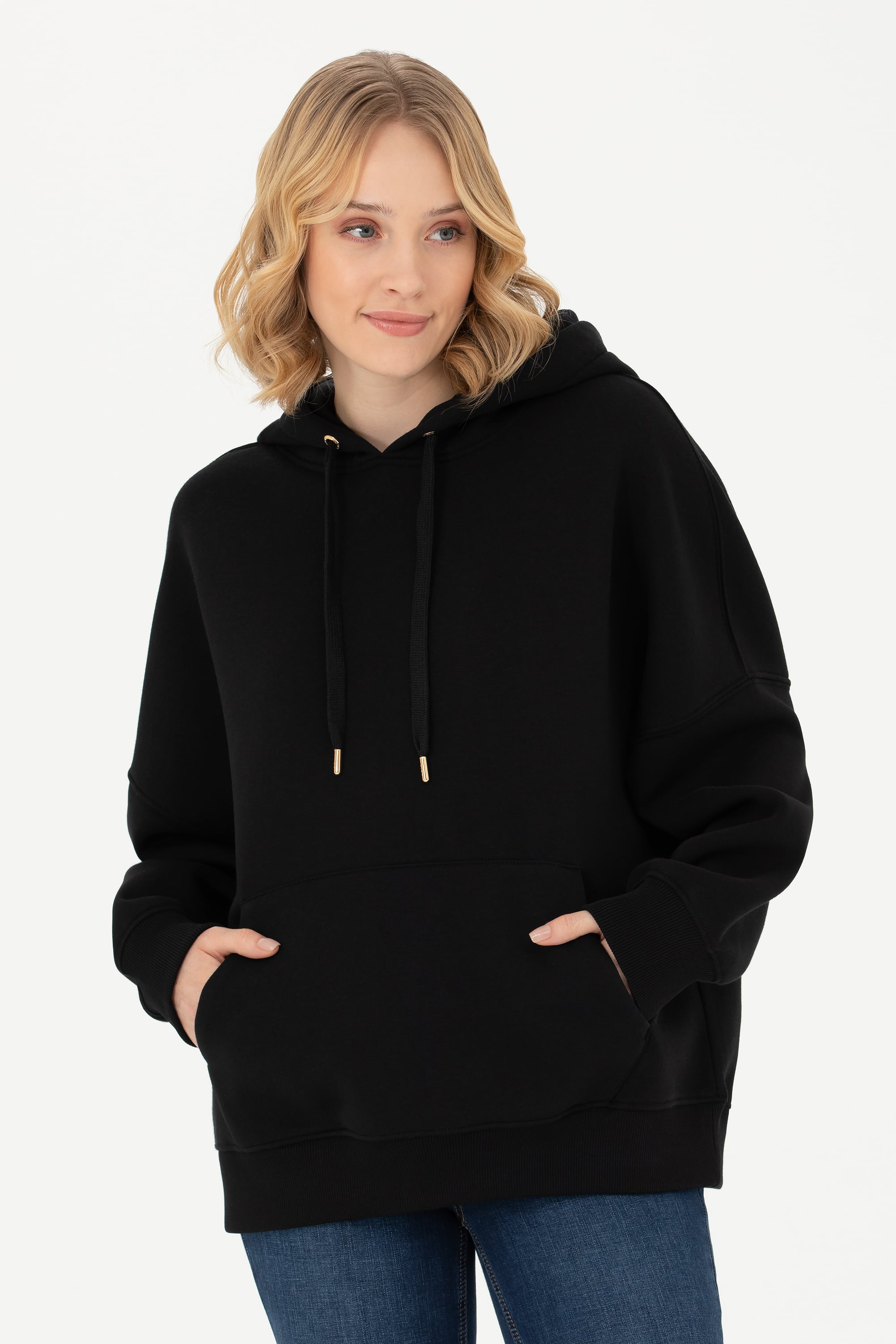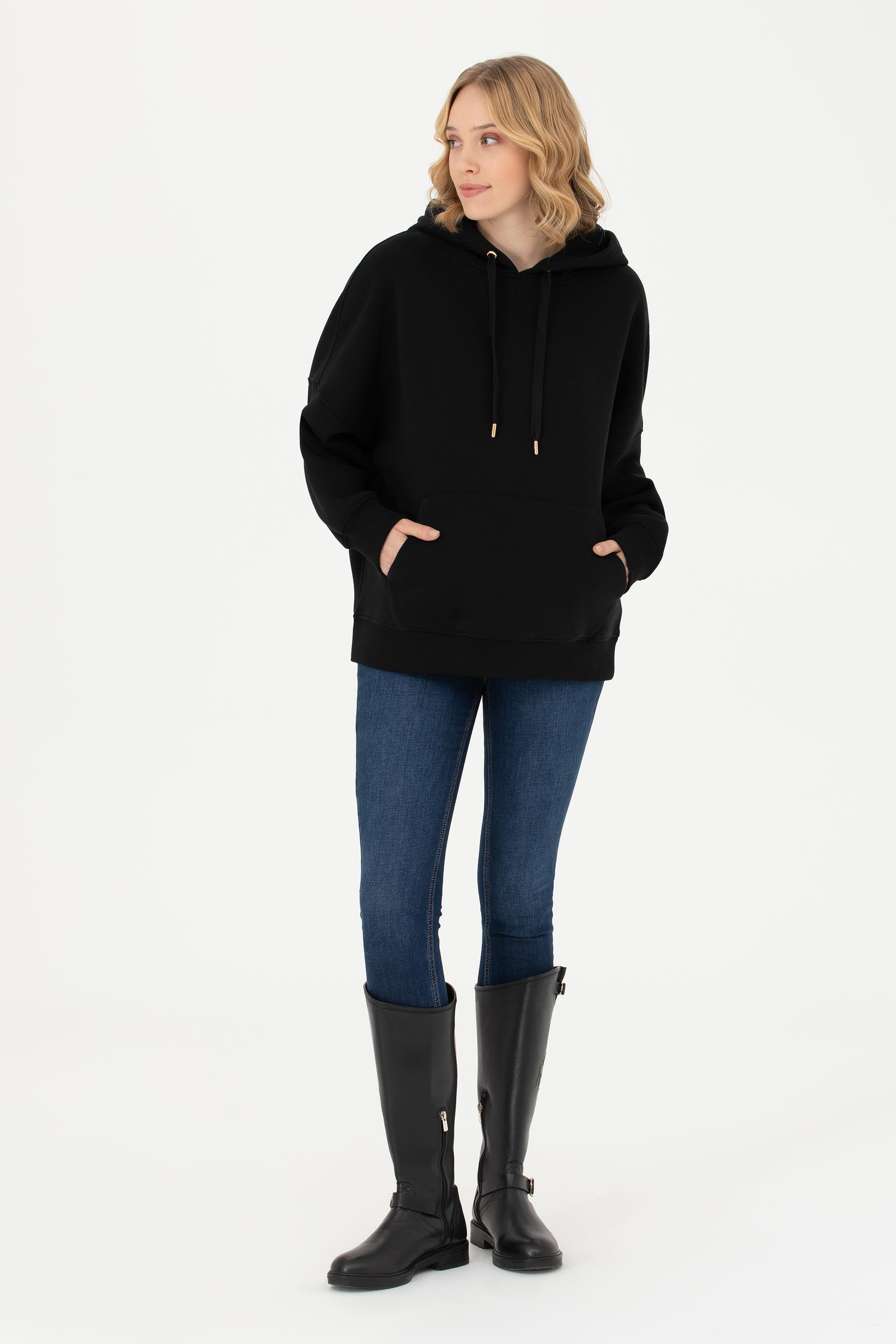 - Kadın Siyah Kapüşonlu Sweatshirt