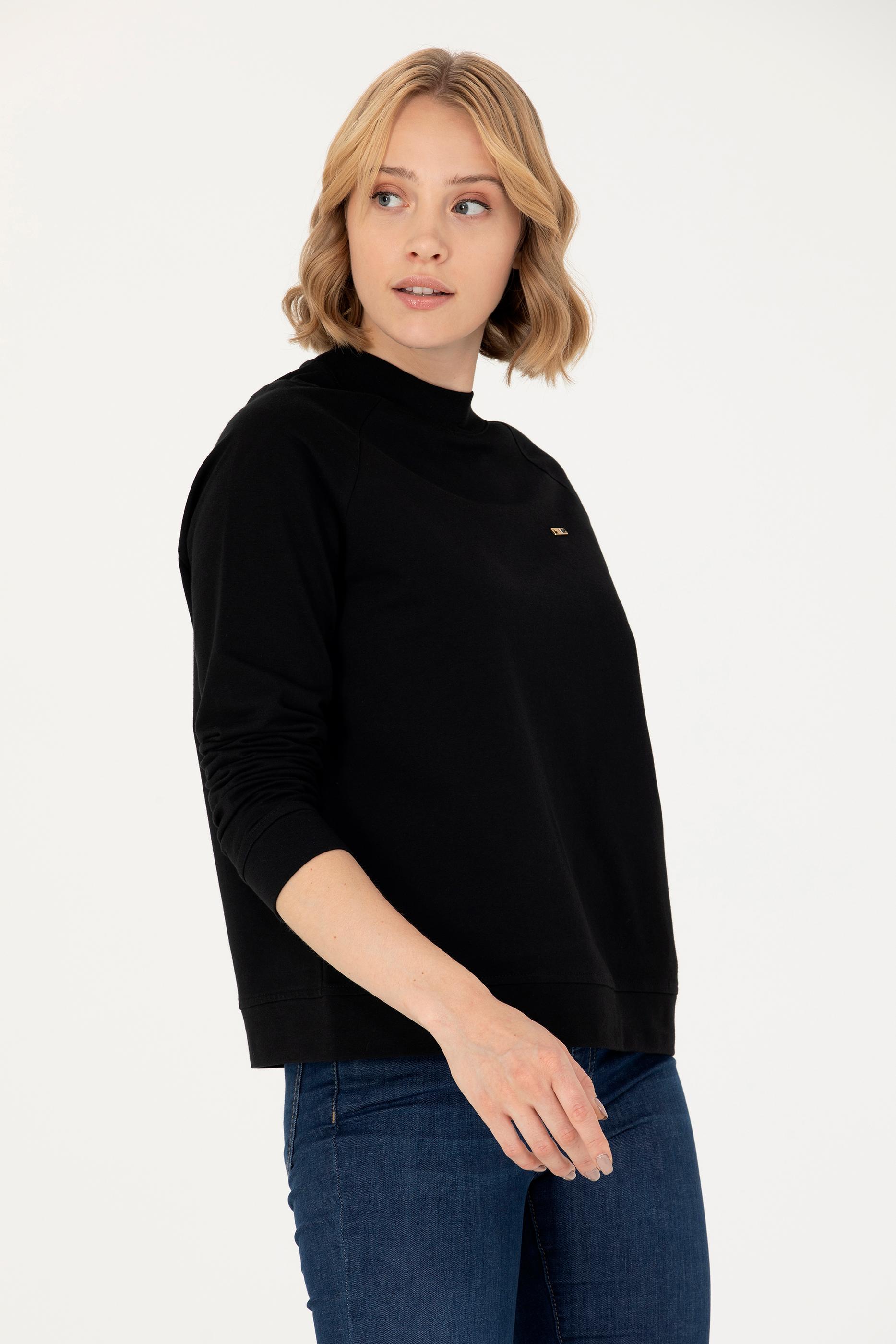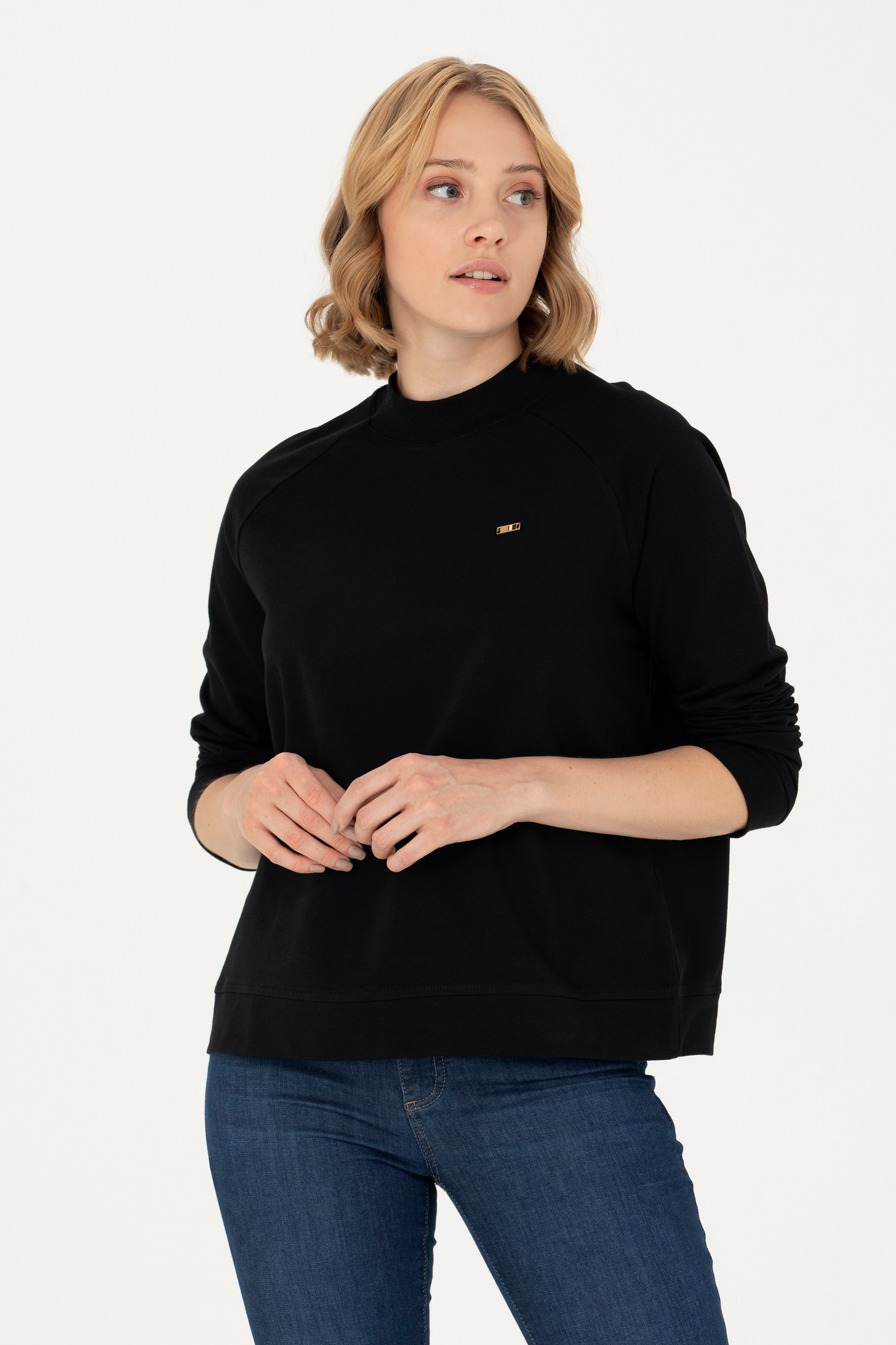 Kadın Siyah Bisiklet Yaka Sweatshirt