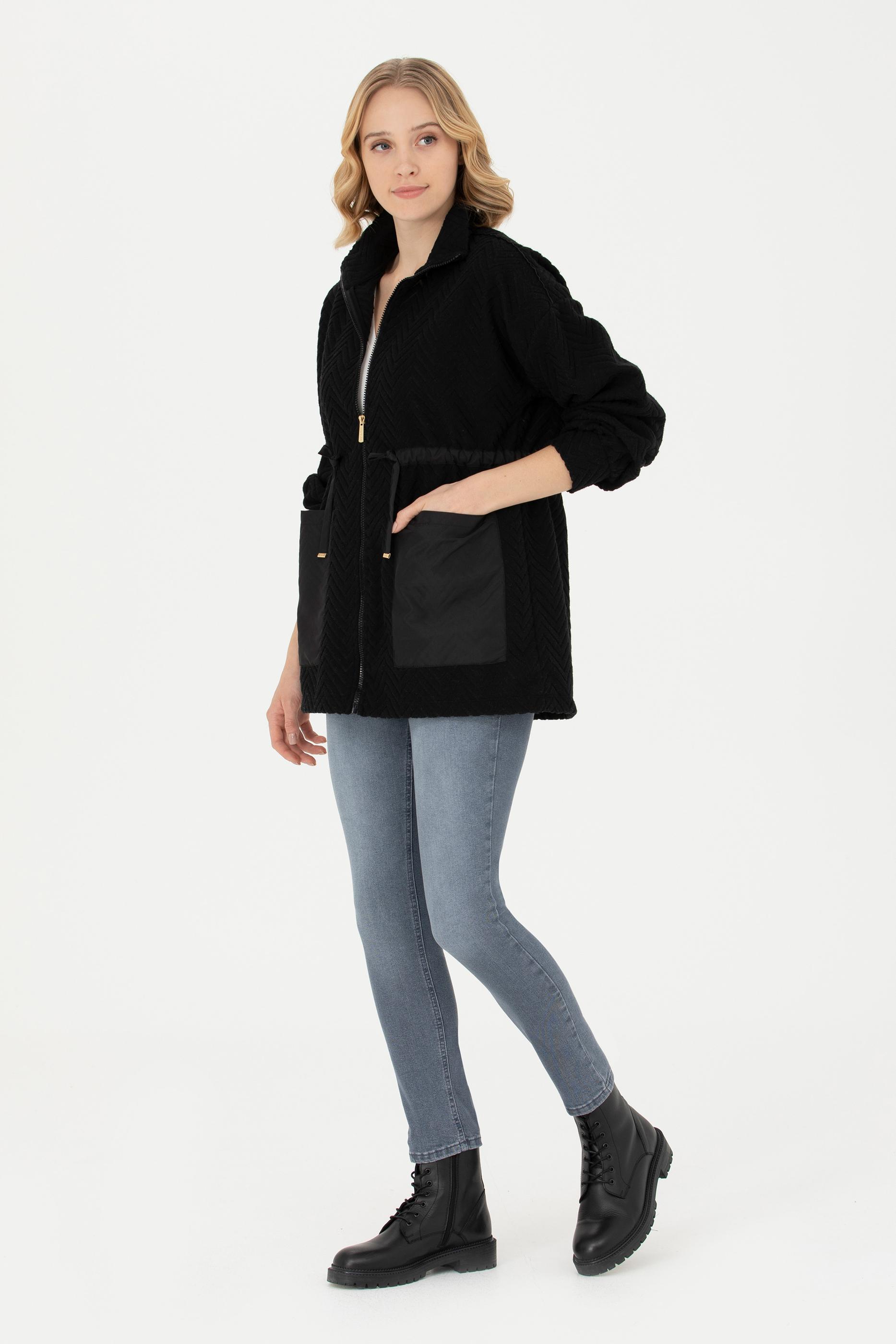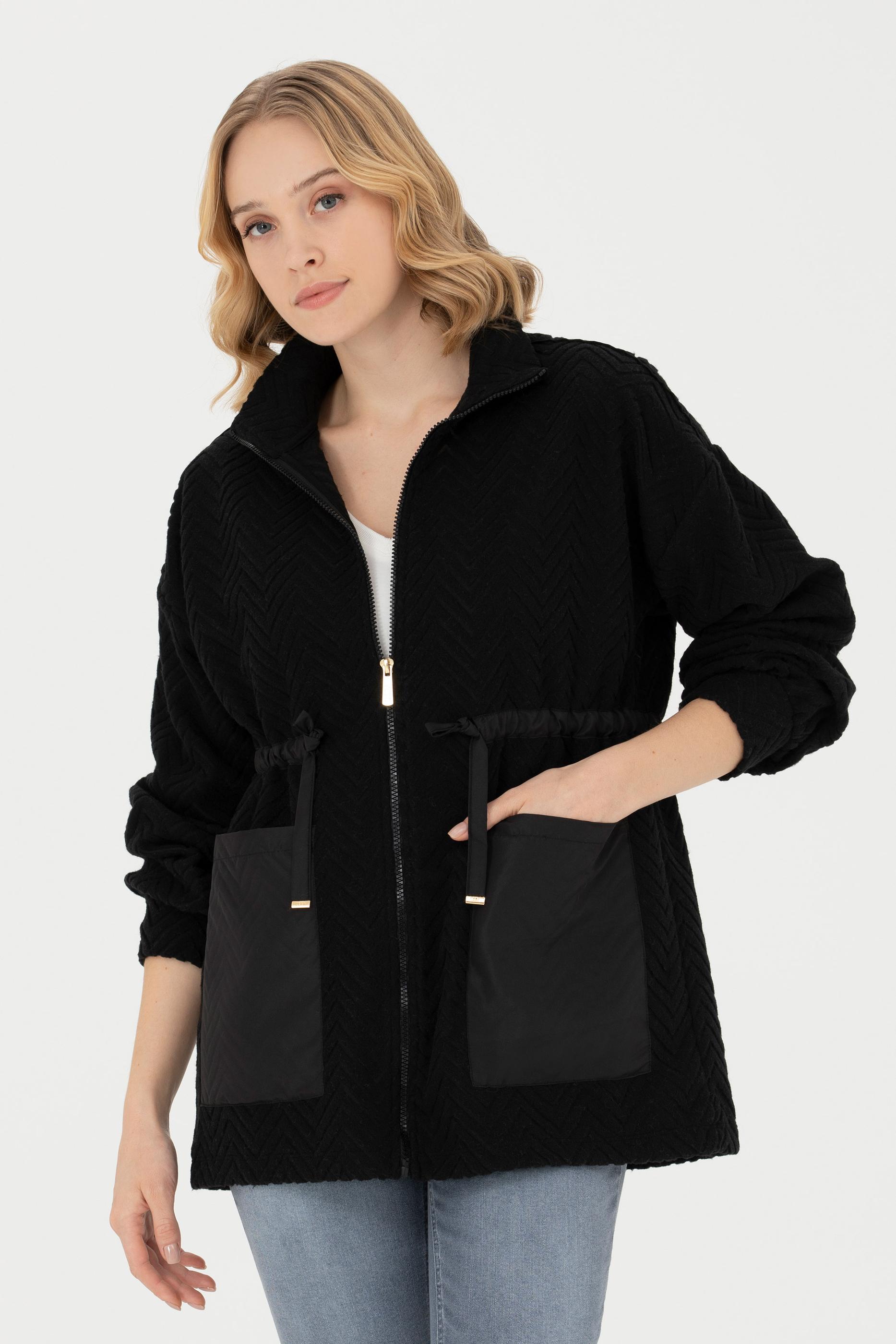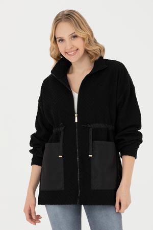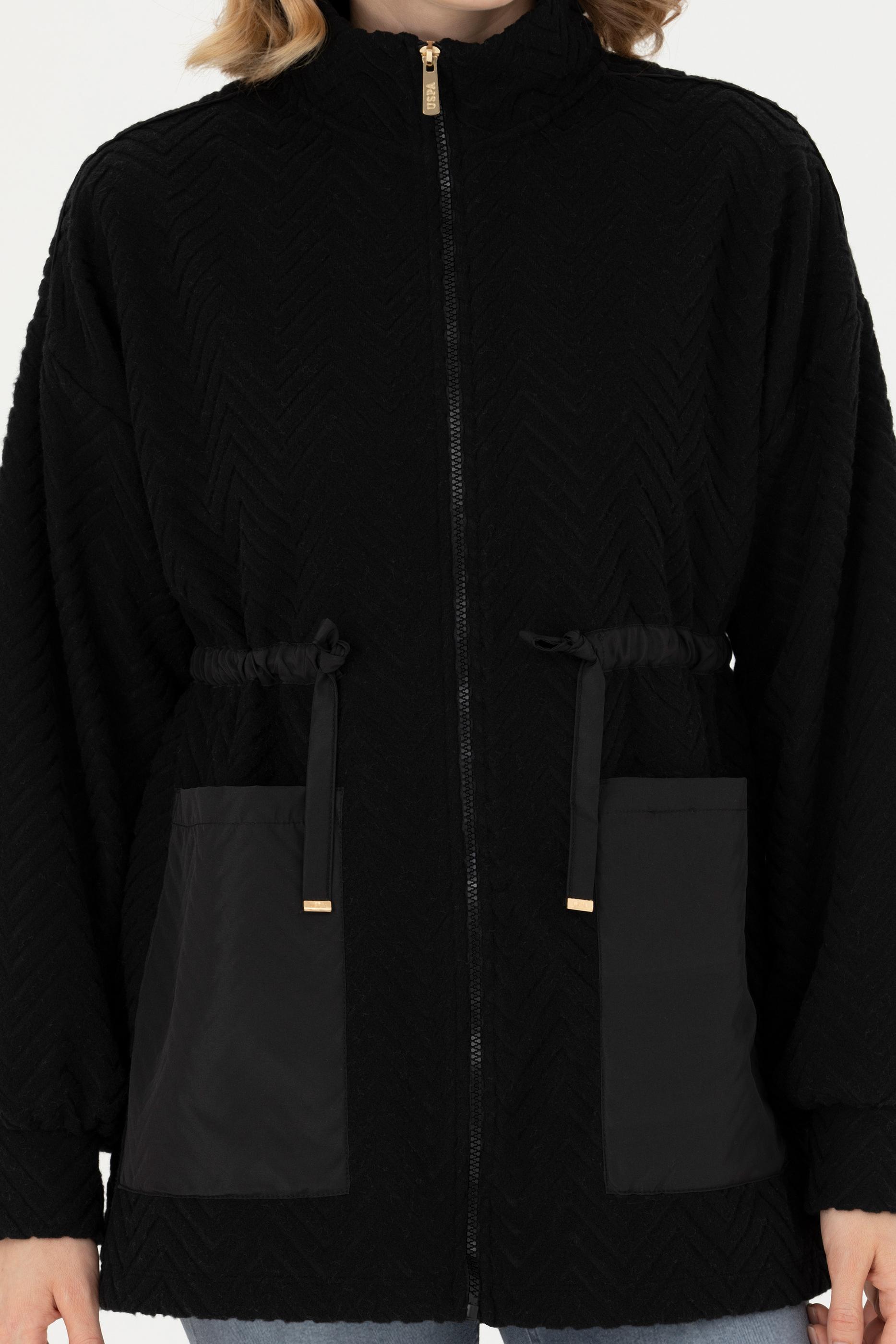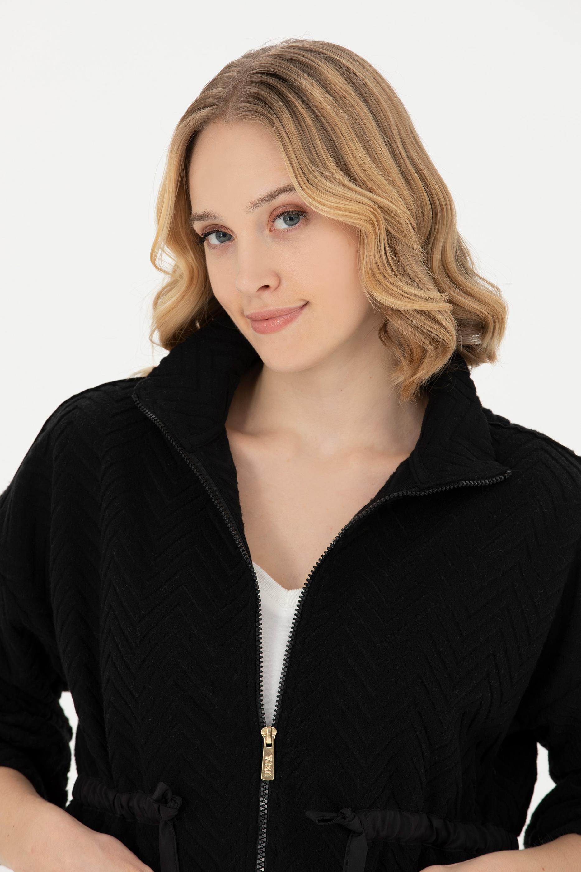 - Kadın Siyah Fermuarlı Örme Hırka
