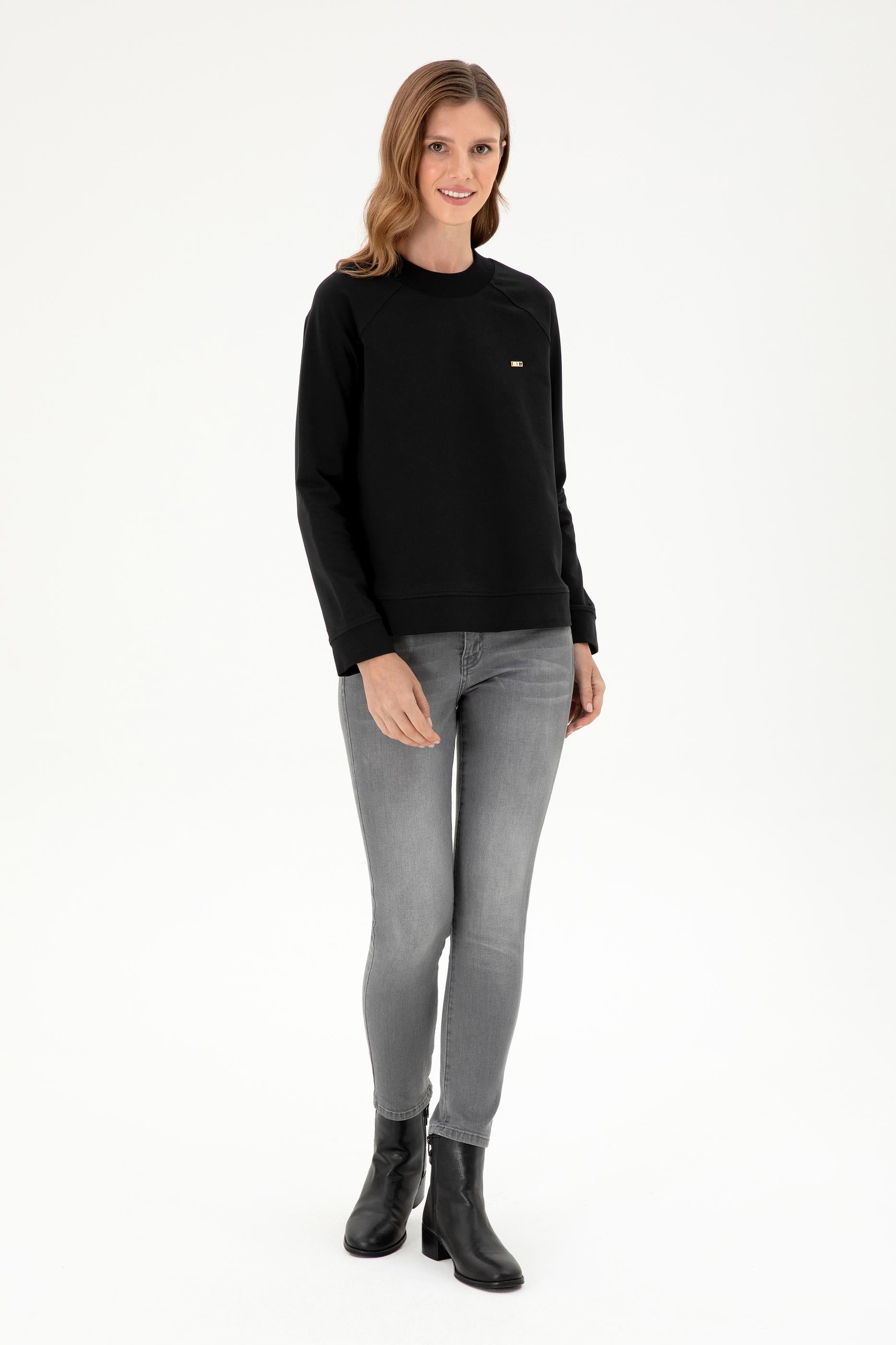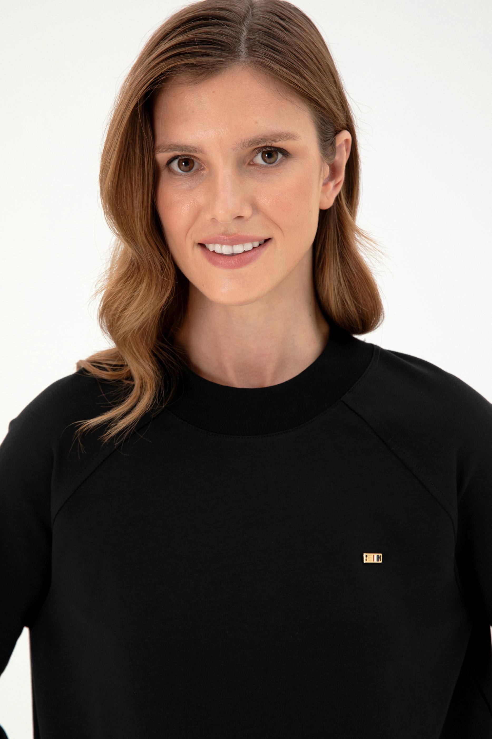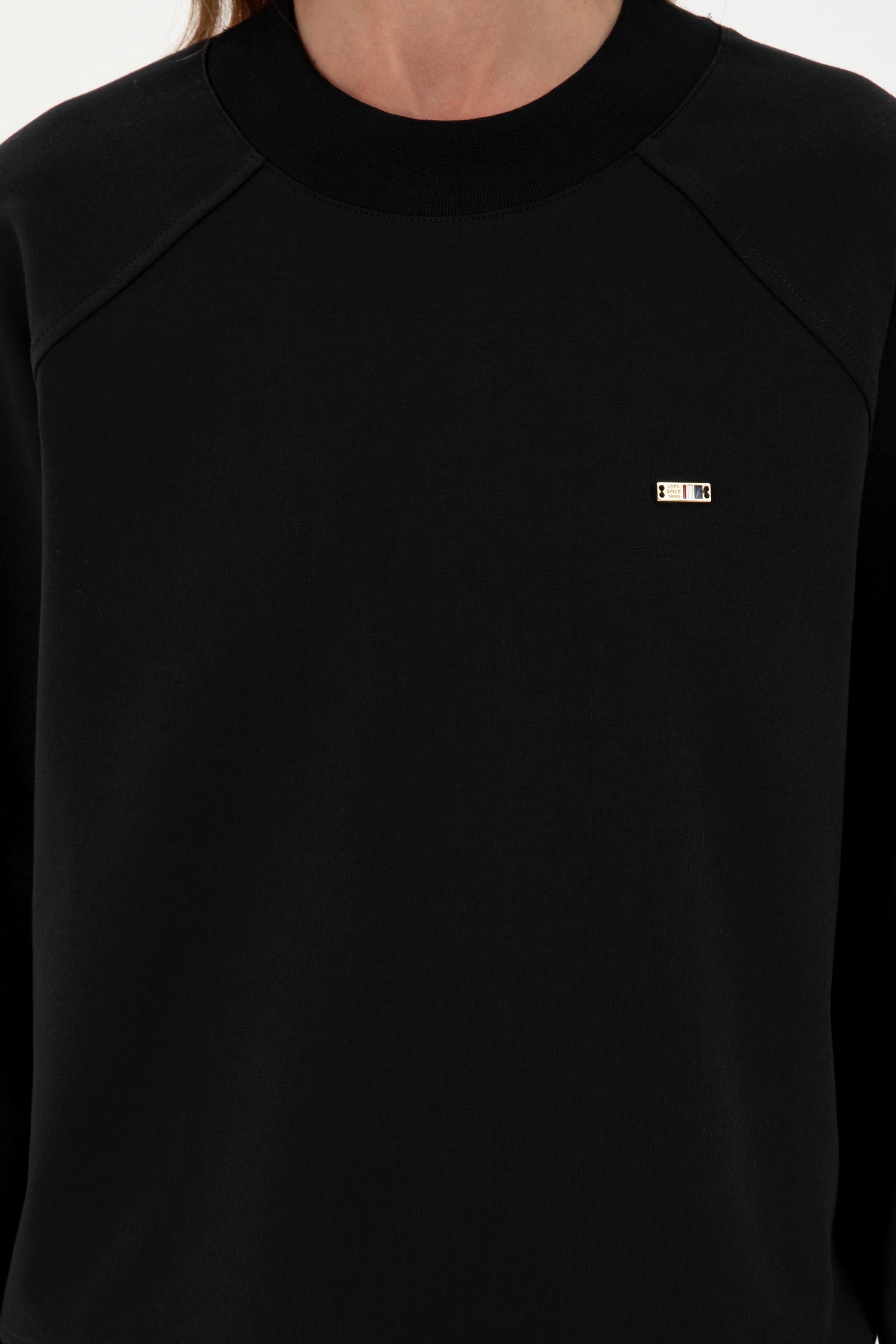 Kadın Siyah Bisiklet Yaka Sweatshirt