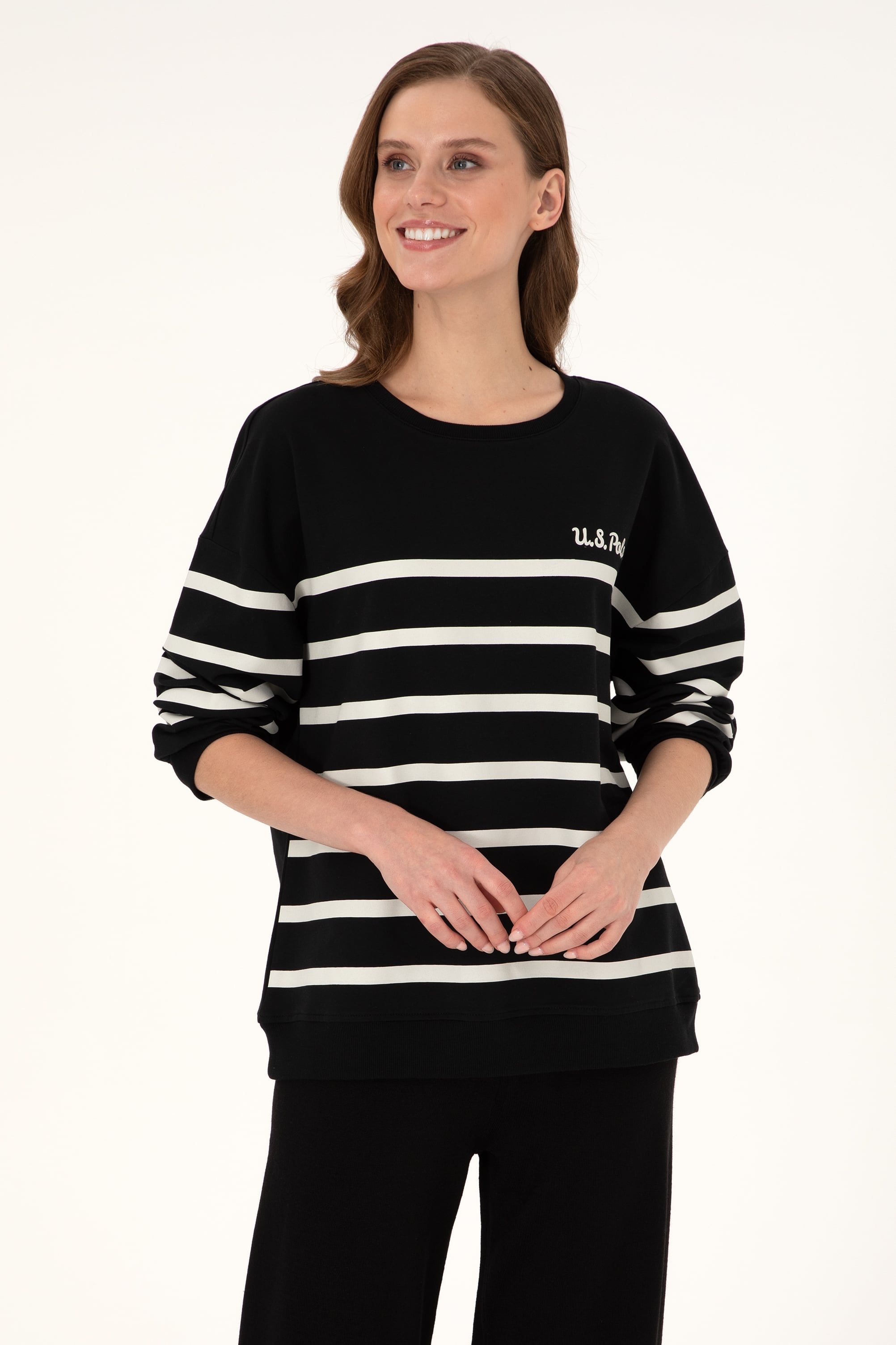 Kadın Siyah Çizgili Bisiklet Yaka Sweatshirt