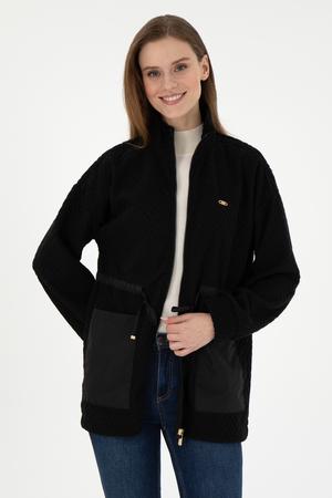 Kadın Siyah Fermuarlı Dik Yaka Sweatshirt