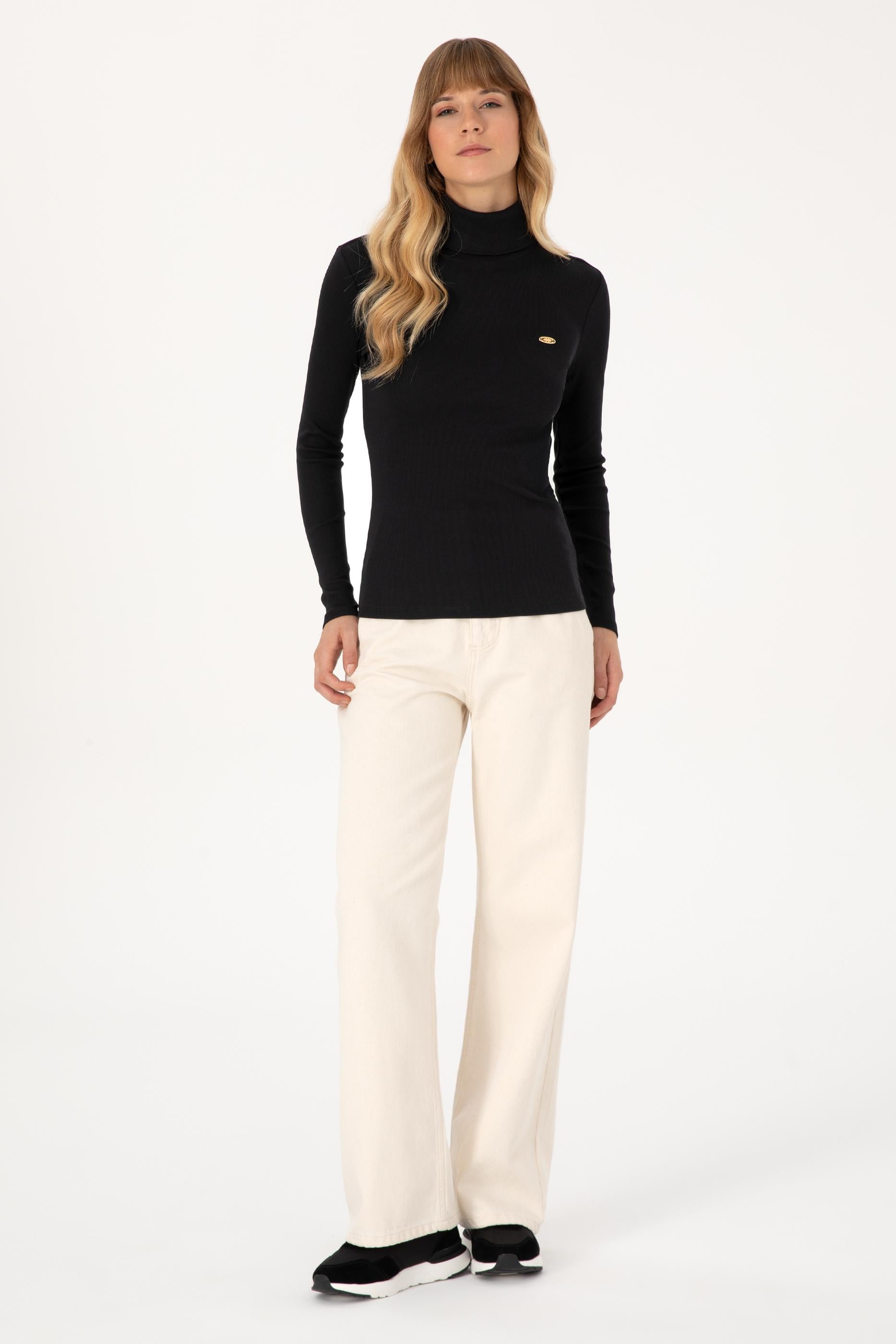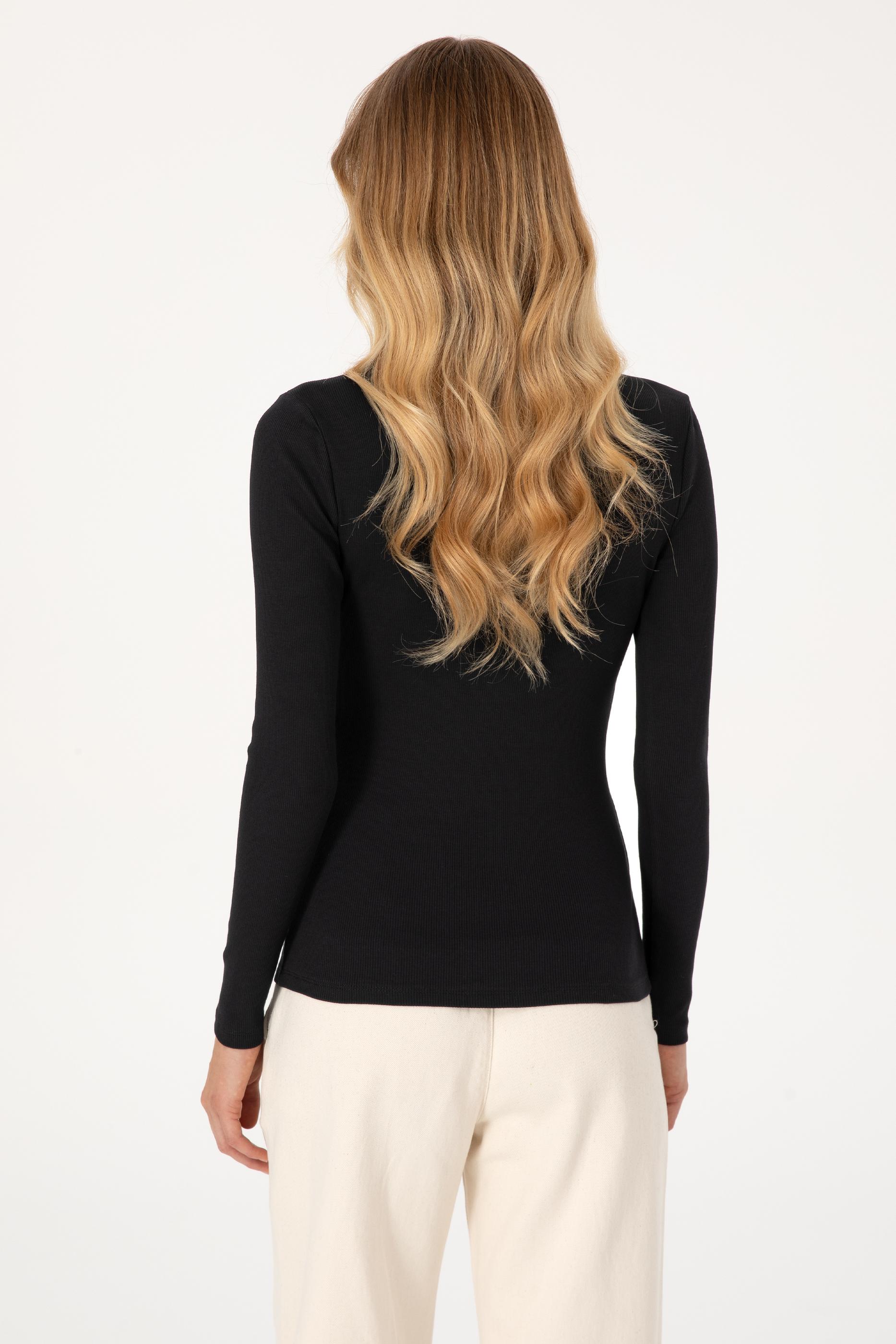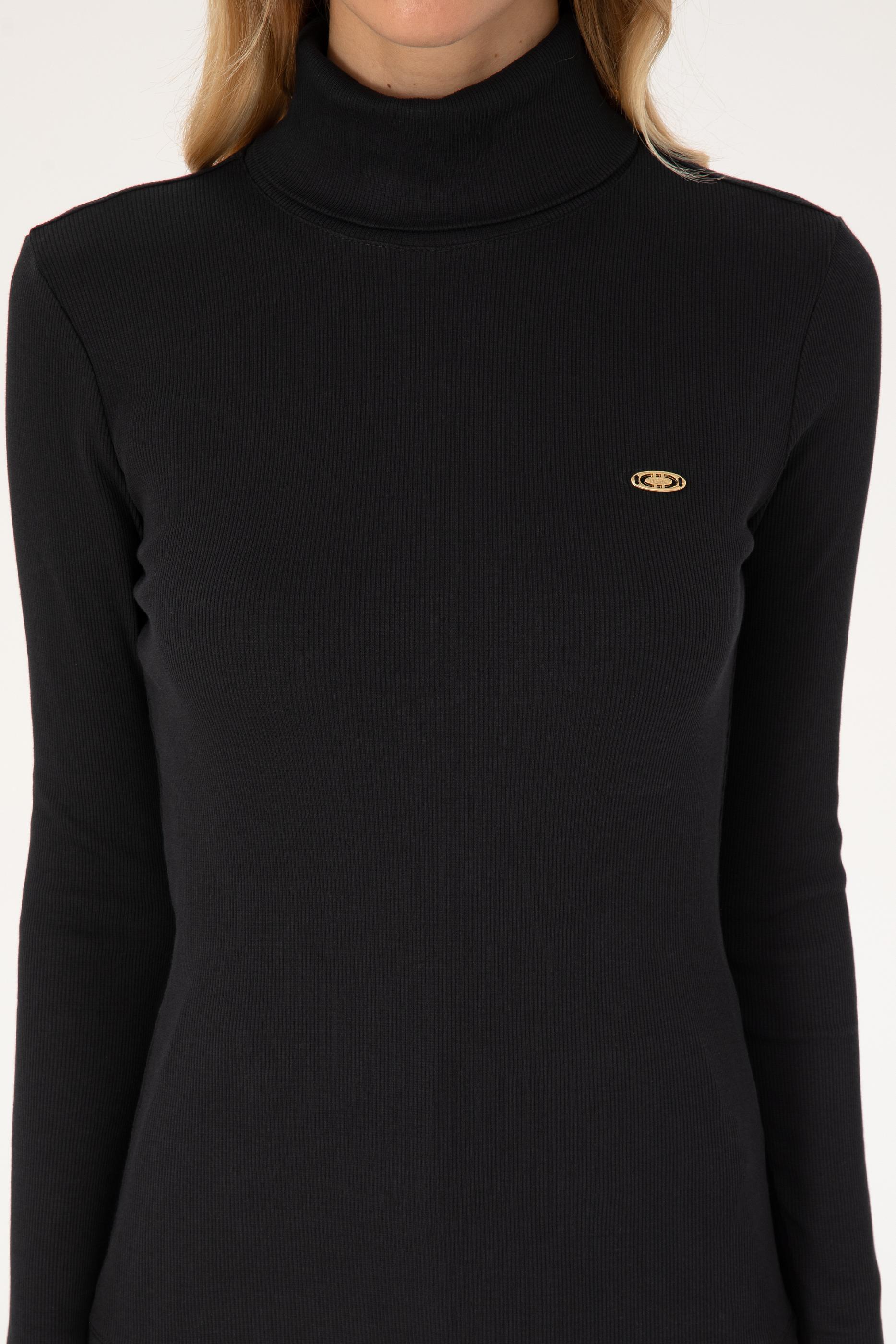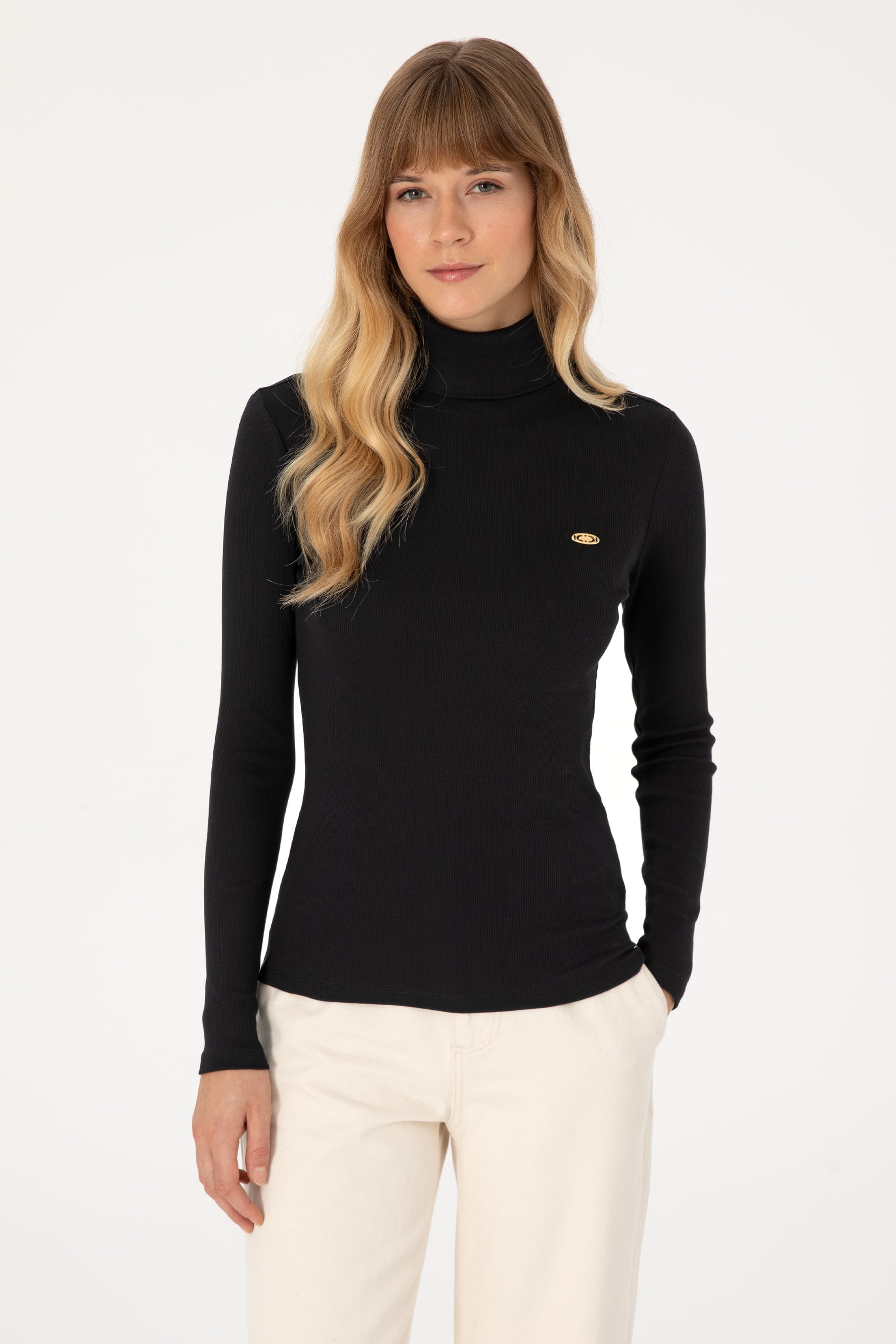 Kadın Siyah Balıkçı Yaka Sweatshırt - 50313430004