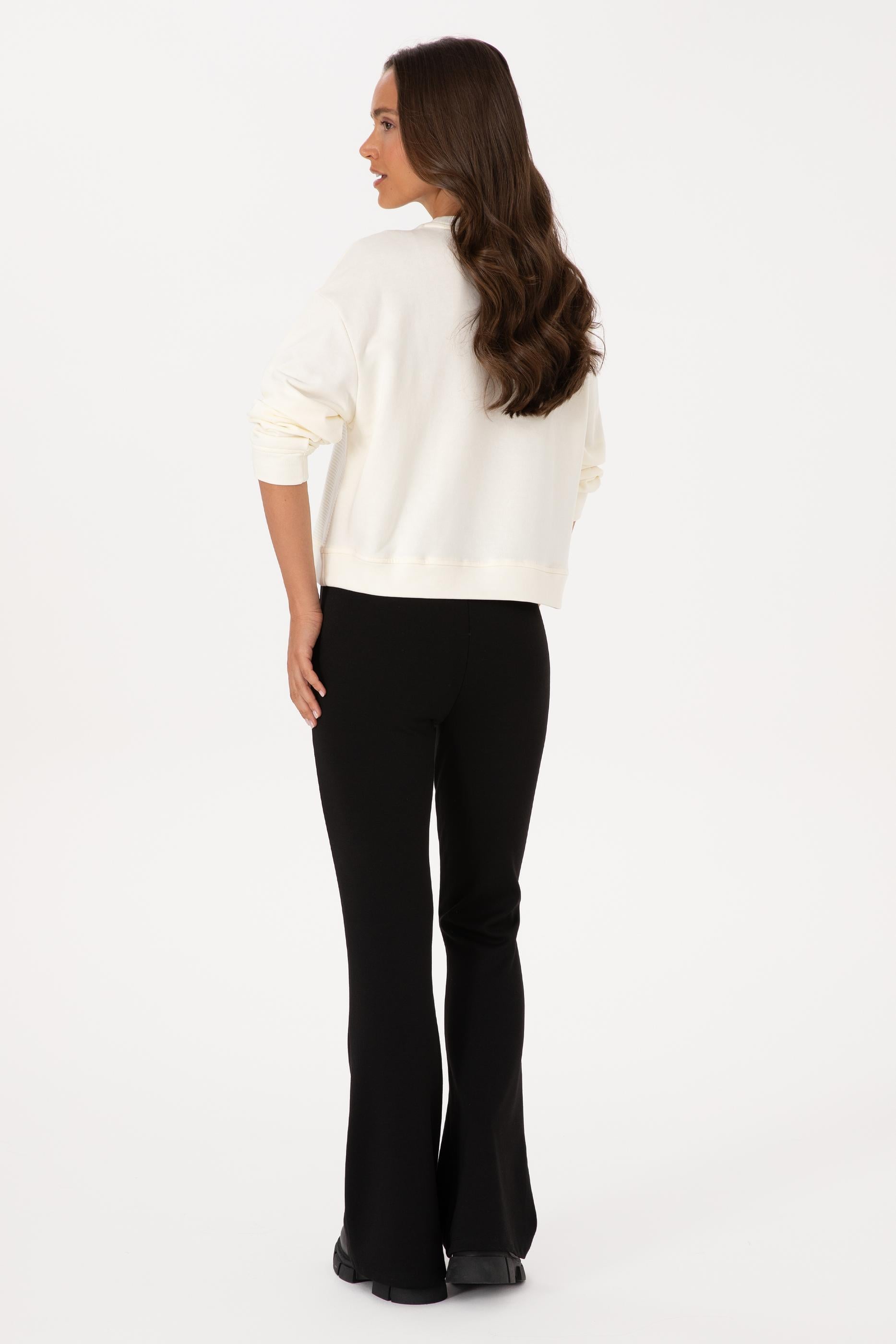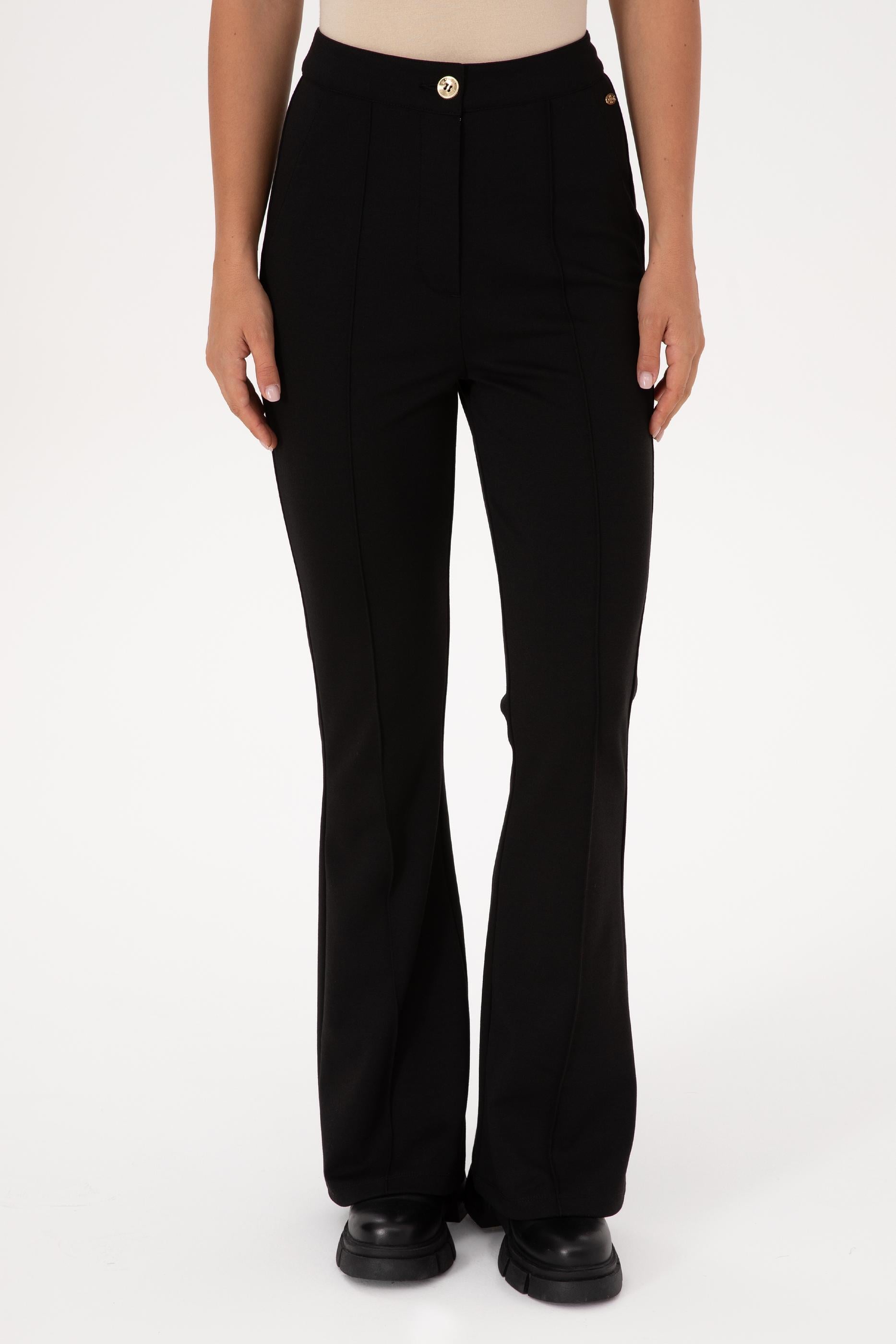 Zamansız siyahrengi ile sezonun ruhunu yansıtan bu örme pantolon, yüksek bel tasarımıyla bel hattını zarifçe vurgularken flare paça formu sayesinde bacak boyunu optik olarak uzatıyor. Düz yapısının yalın şıklığı, onu hem gündelik kombinlerde hem de özel davetlerde kolayca kullanılabilecek çok yönlü bir parça haline getiriyor. Yumuşak ve esnek dokusu, uzun süreli kullanımlarda bile konfor sunarken, akıcı duruşu her adımda özgün bir zarafet katıyor. Mevsim fark etmeksizin tercih edilebilecek bu model, sneaker’larla rahat ve modern, topuklularla ise feminen ve iddialı bir stil oluşturma imkânı veriyor. Sadece online’a özel olarak sunulan bu pantolon, gardırobunuza hem retro esintili hem de modern bir dokunuş kazandırmak için ideal bir seçim.