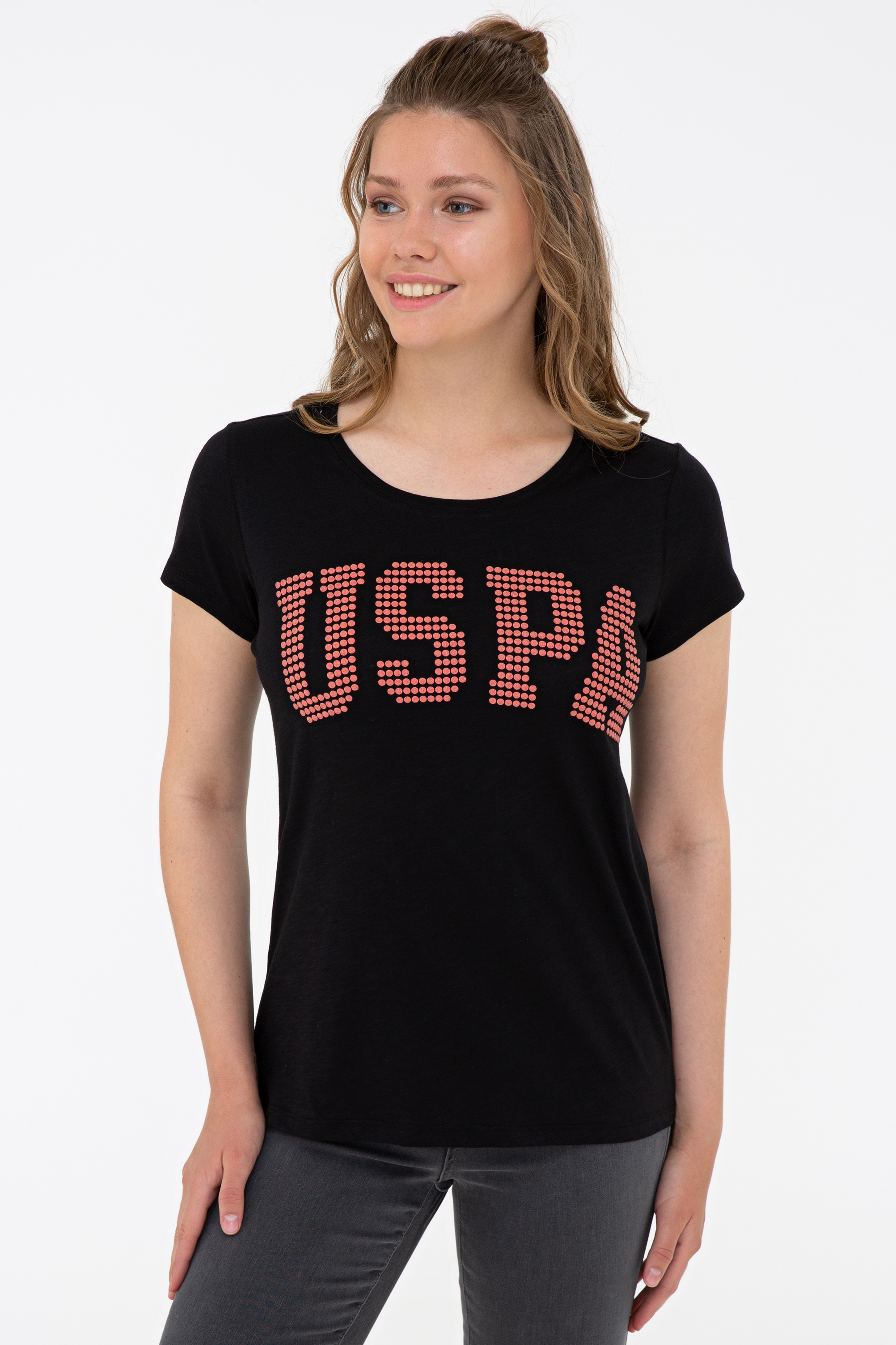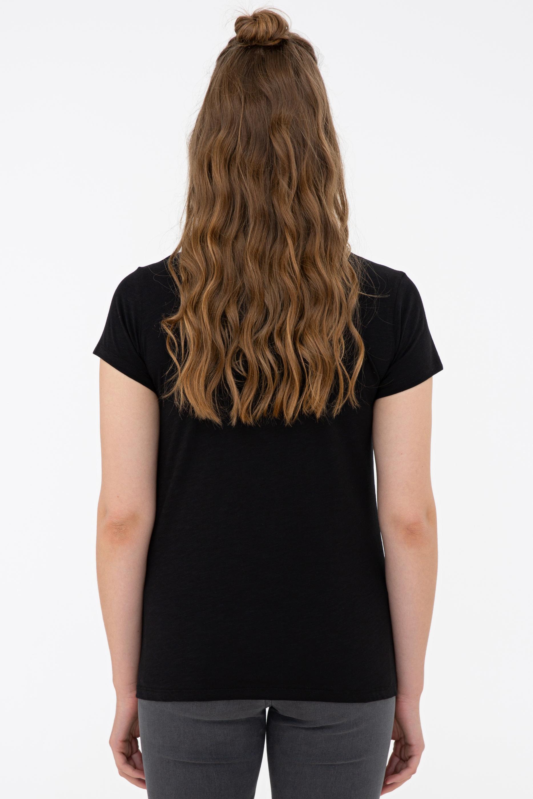 Kadın Siyah Bisiklet Yaka Tişört