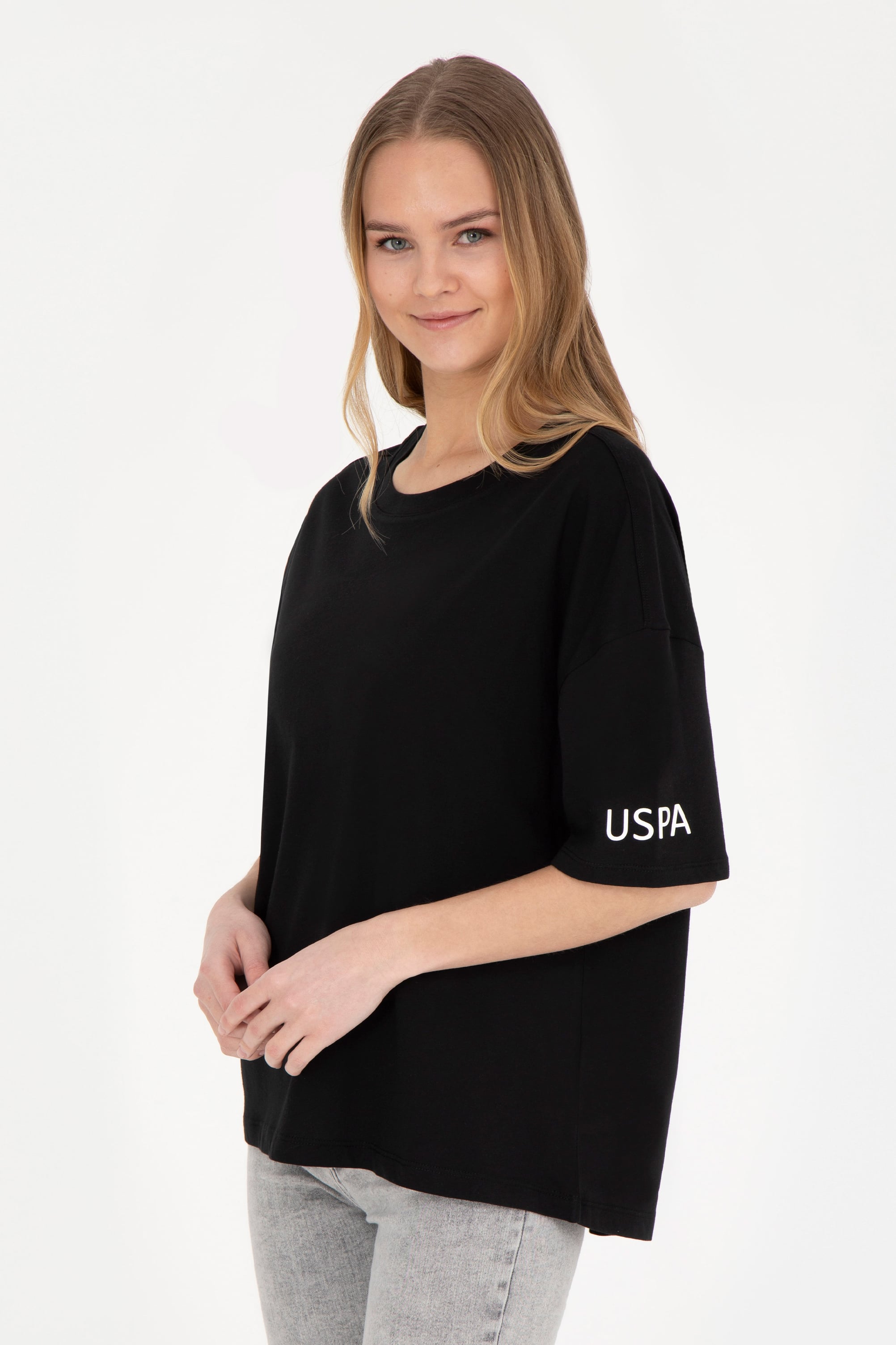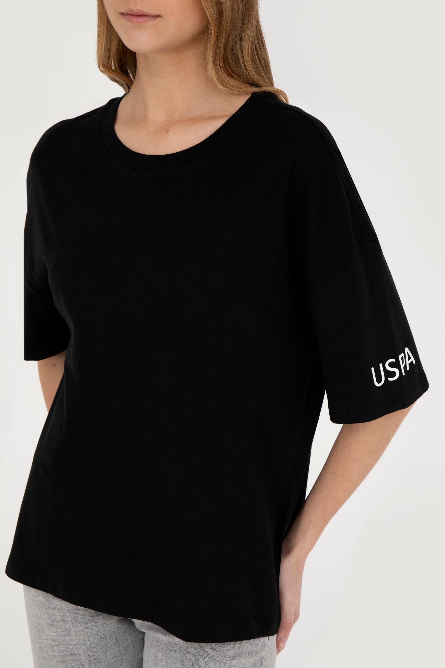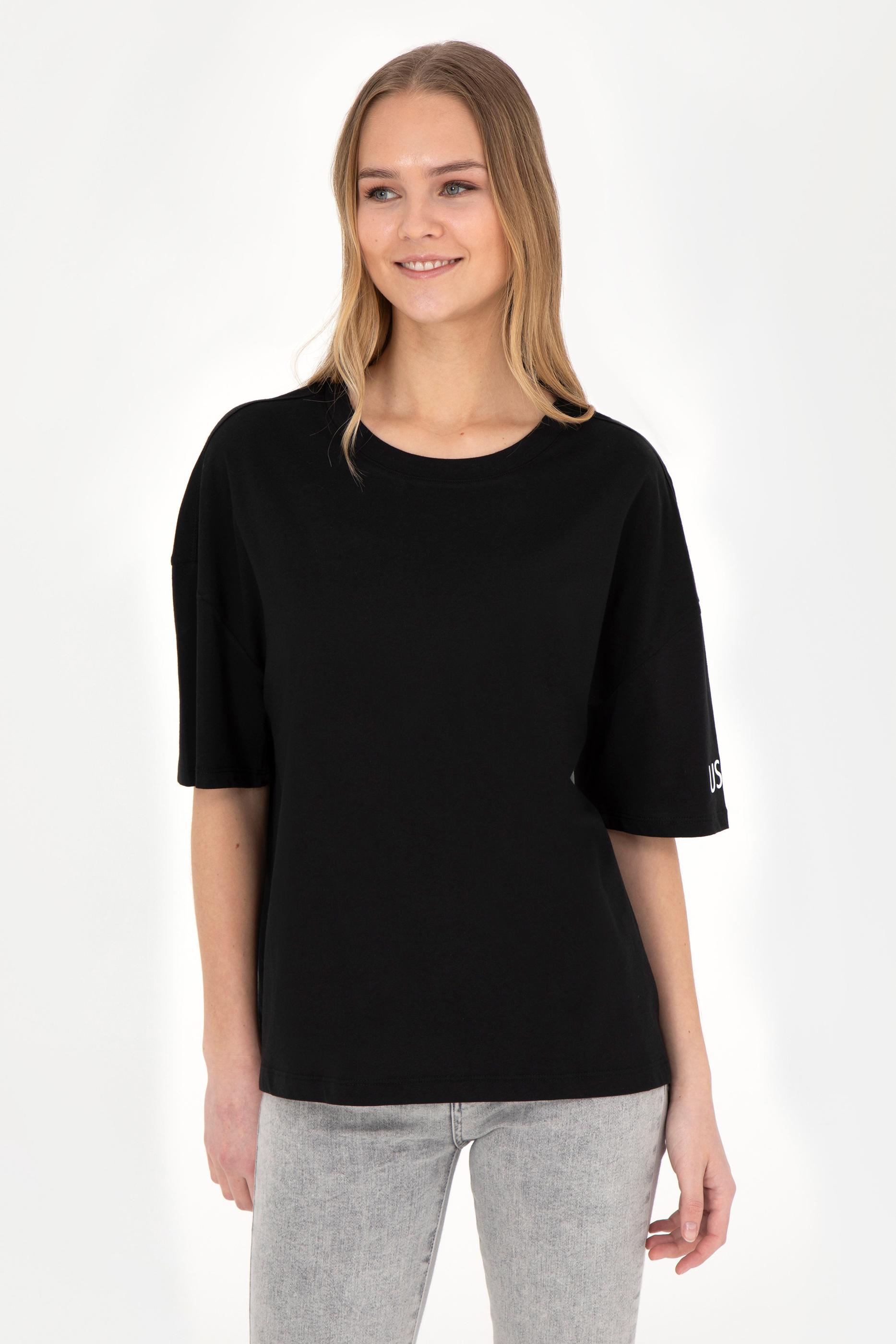 Kadın Siyah Oversize Bisiklet Yaka Tişört - 50286107039