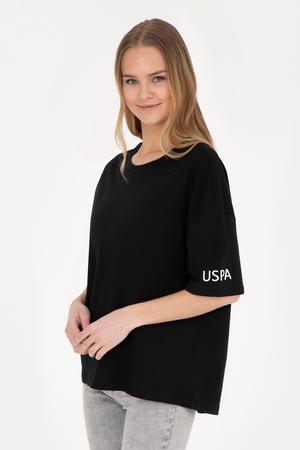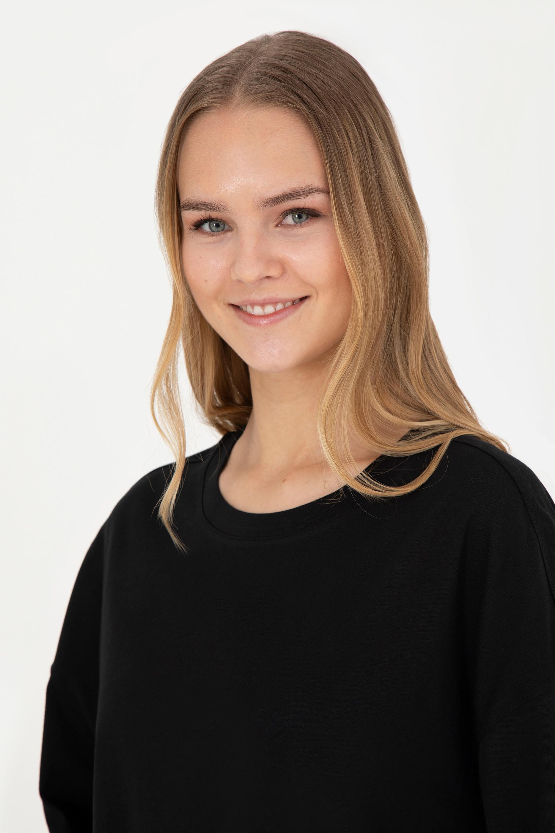 Kadın Siyah Oversize Bisiklet Yaka Tişört