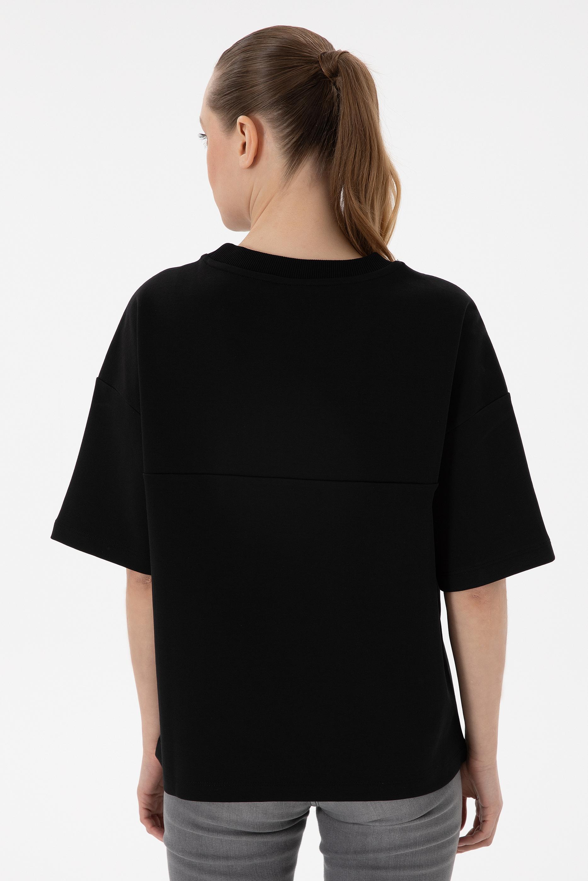 Kadın Siyah Oversize Bisiklet Yaka Tişört