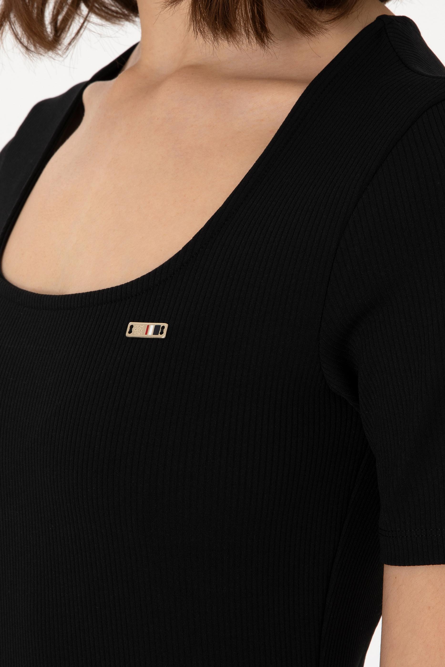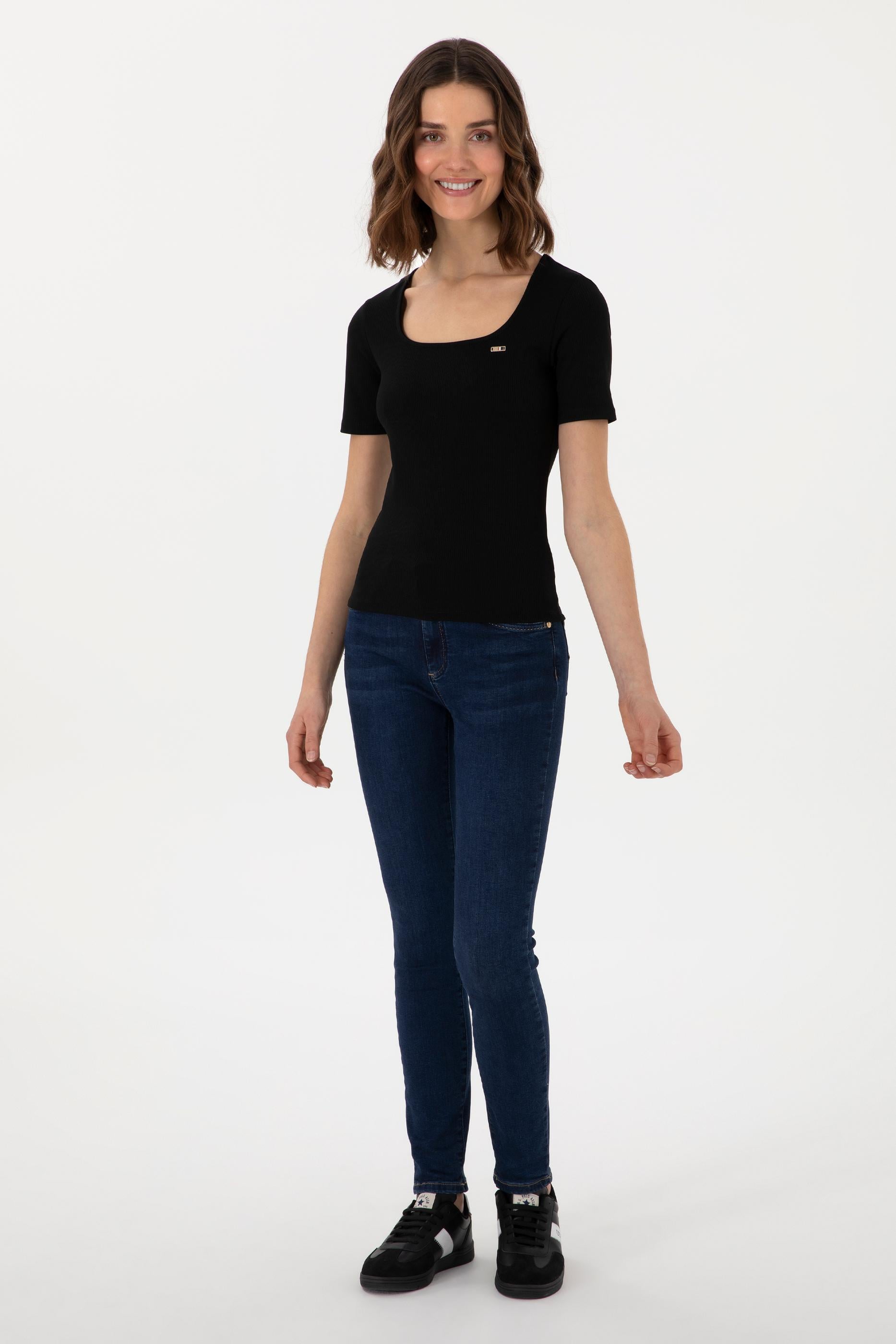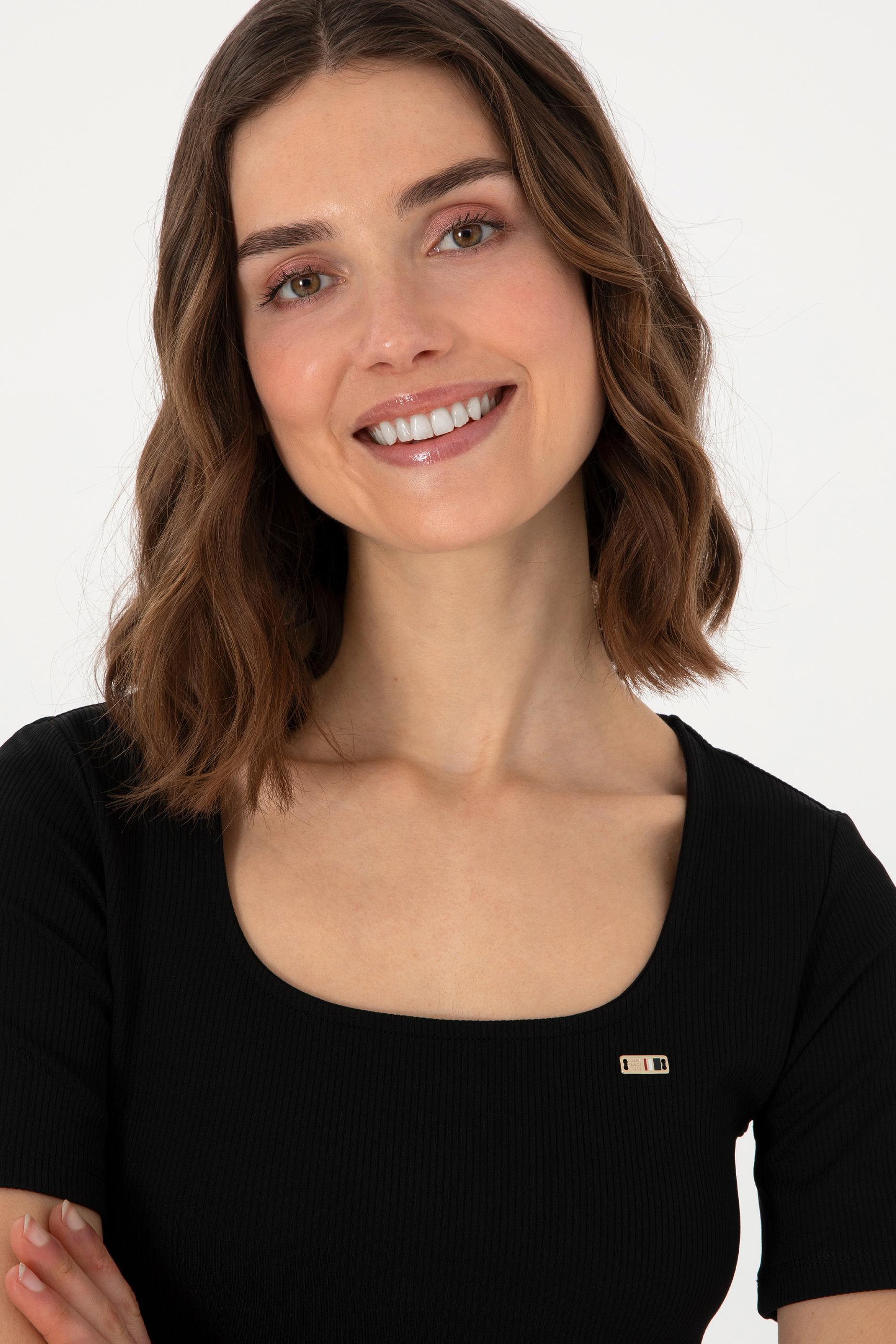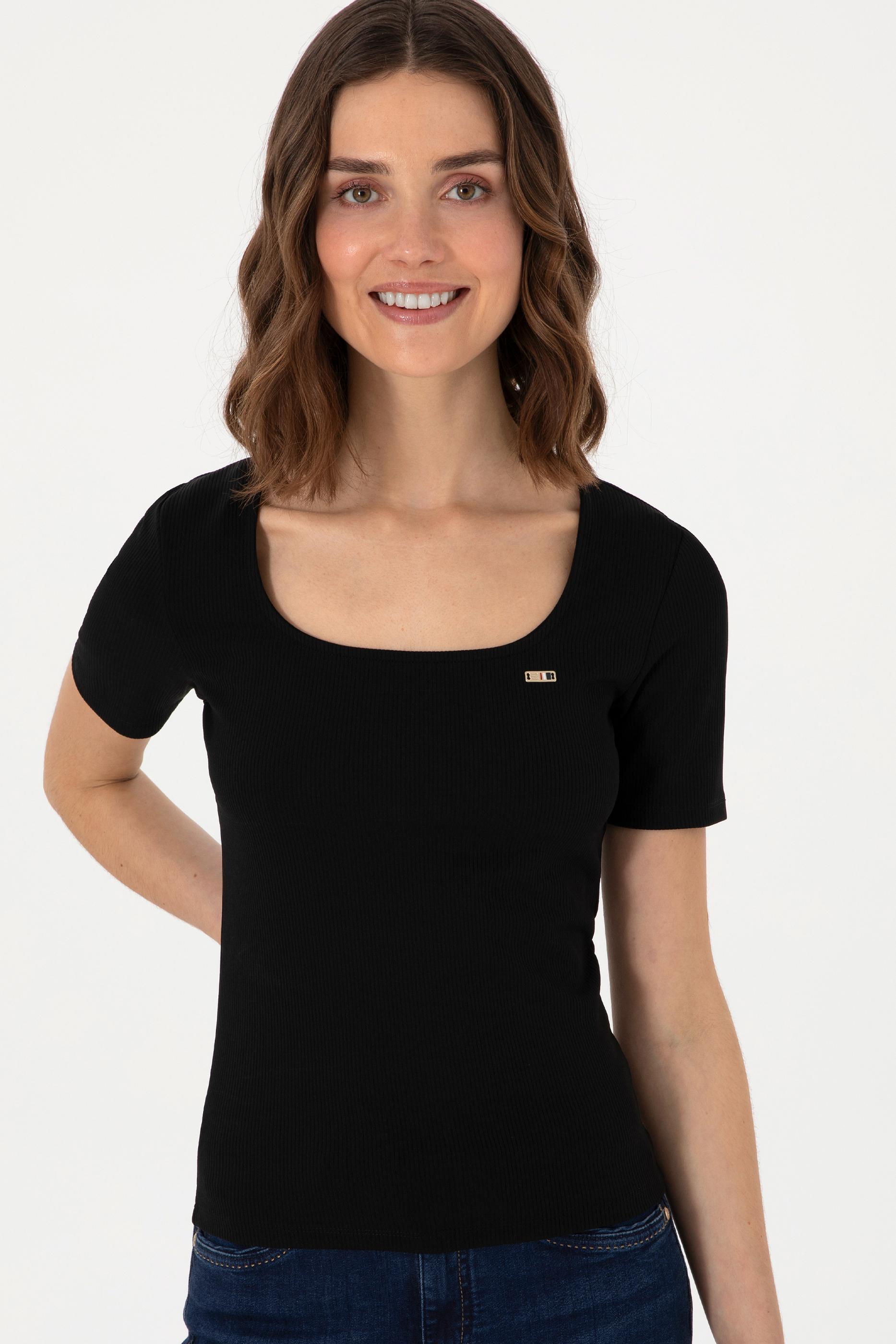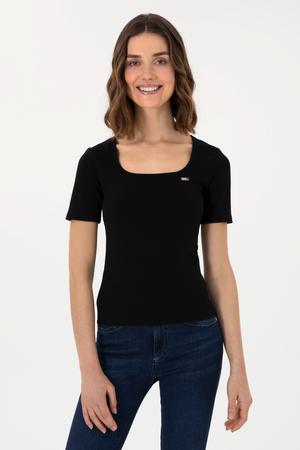 Kadın Siyah Kare Yaka Tişört