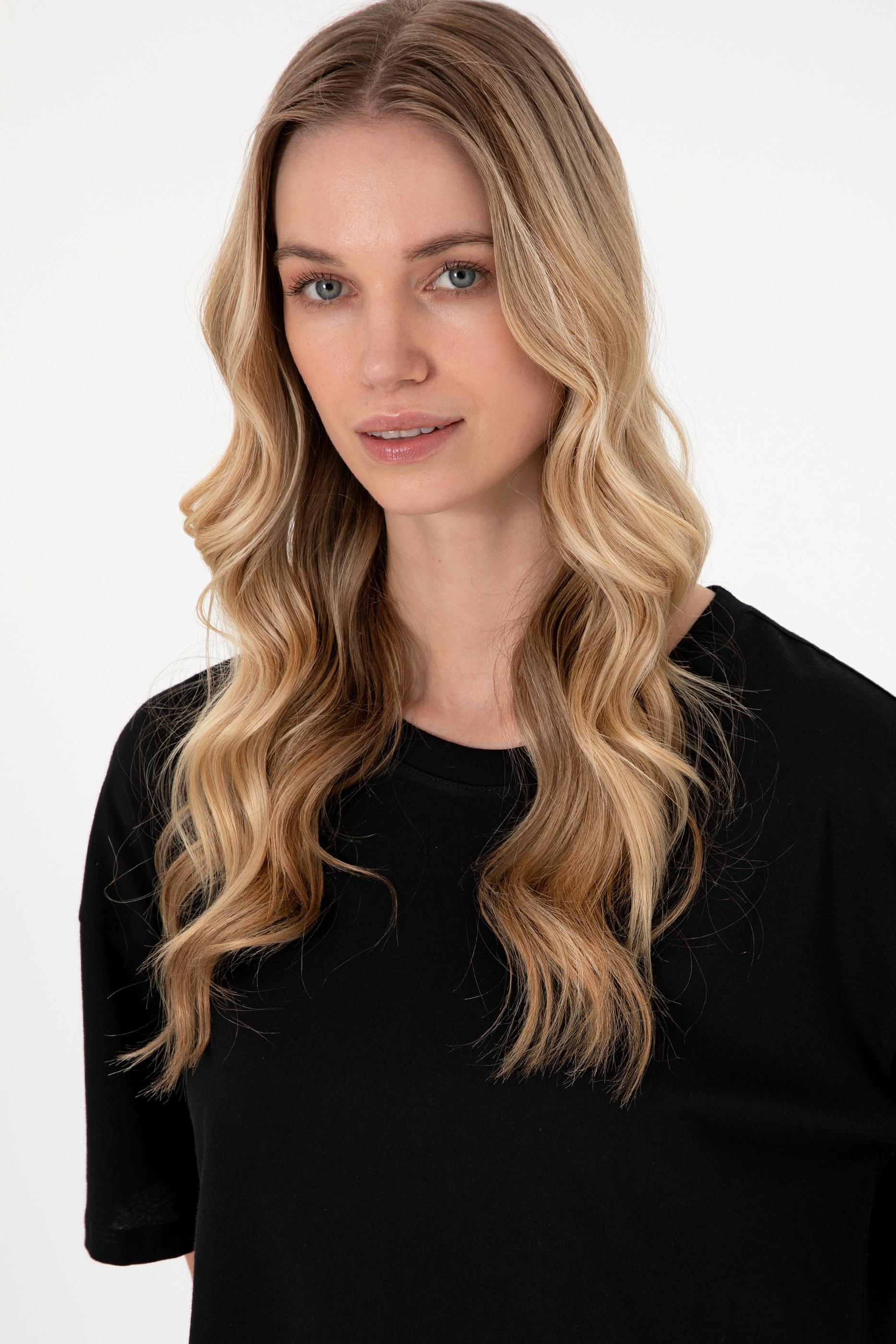 Kadın Siyah Oversize Bisiklet Yaka Tişört