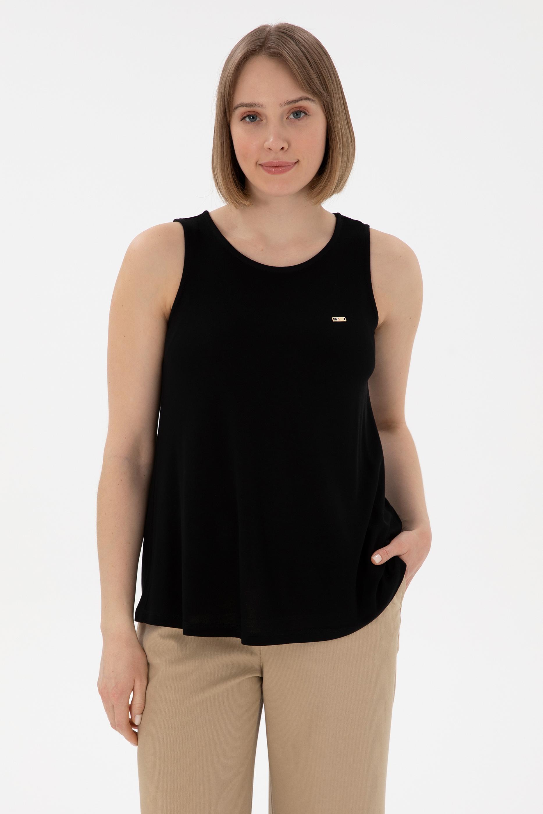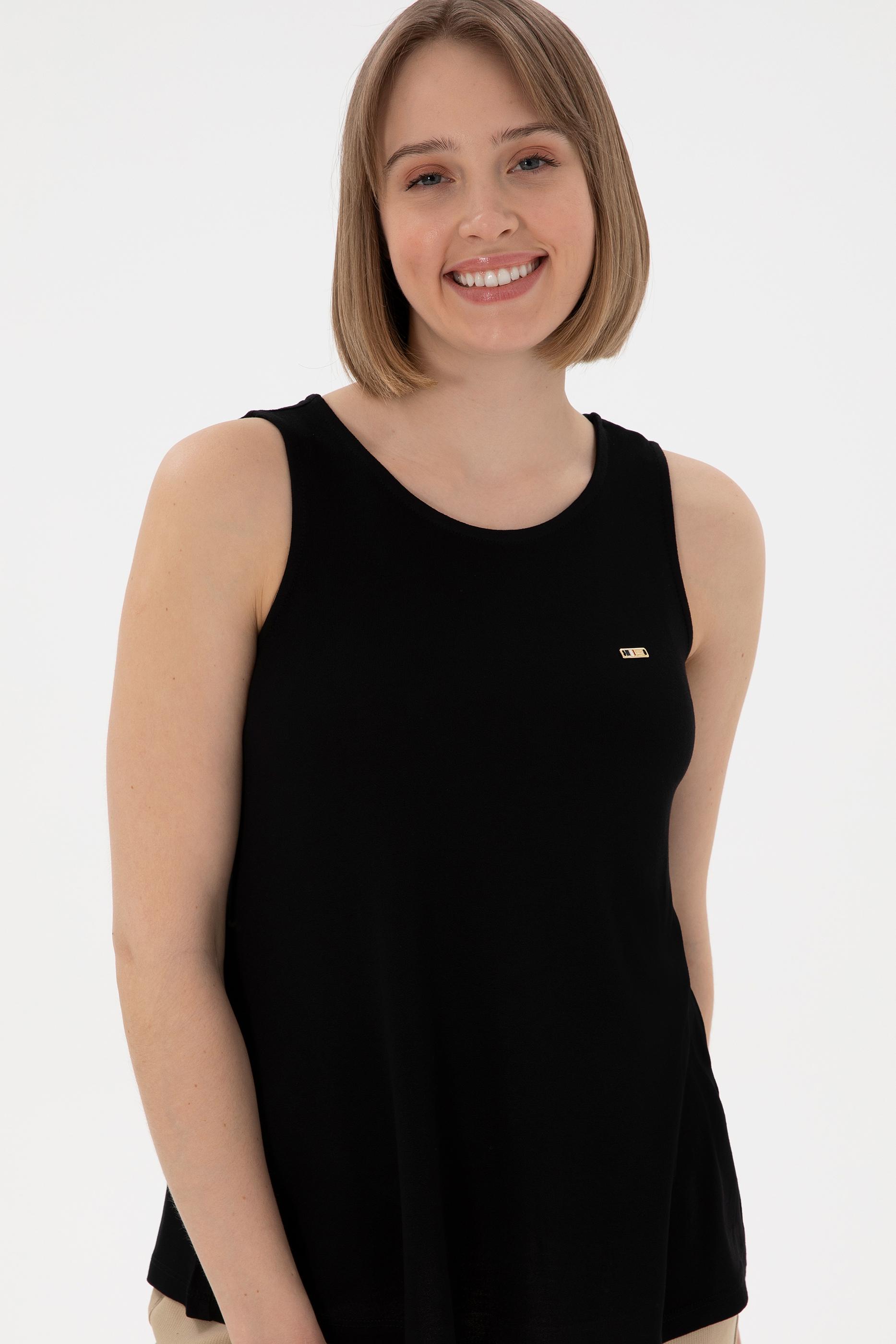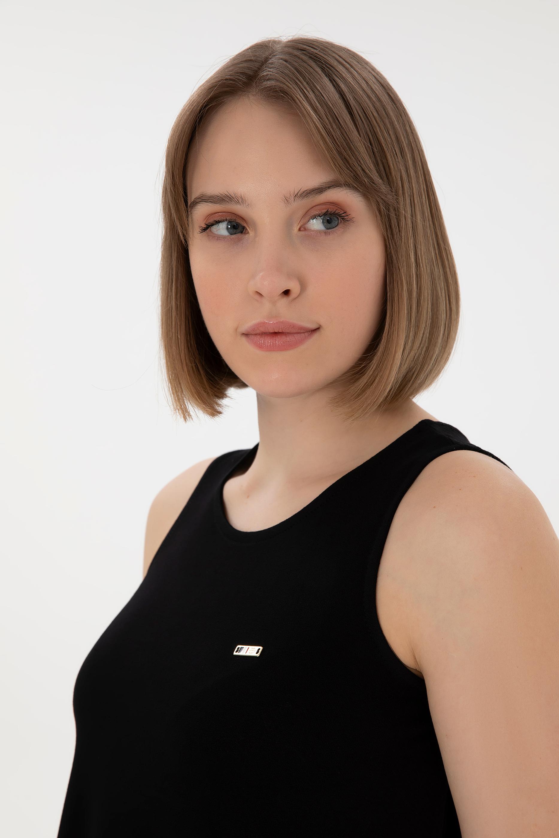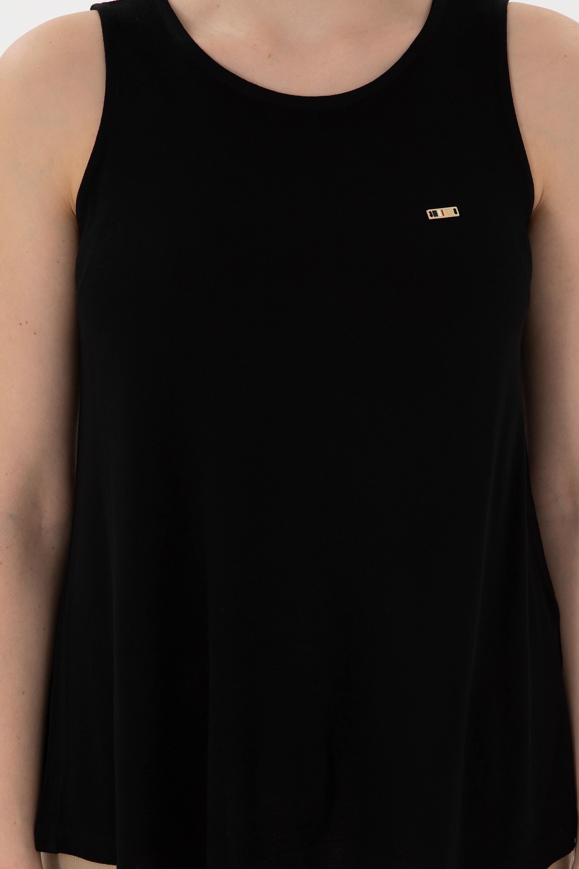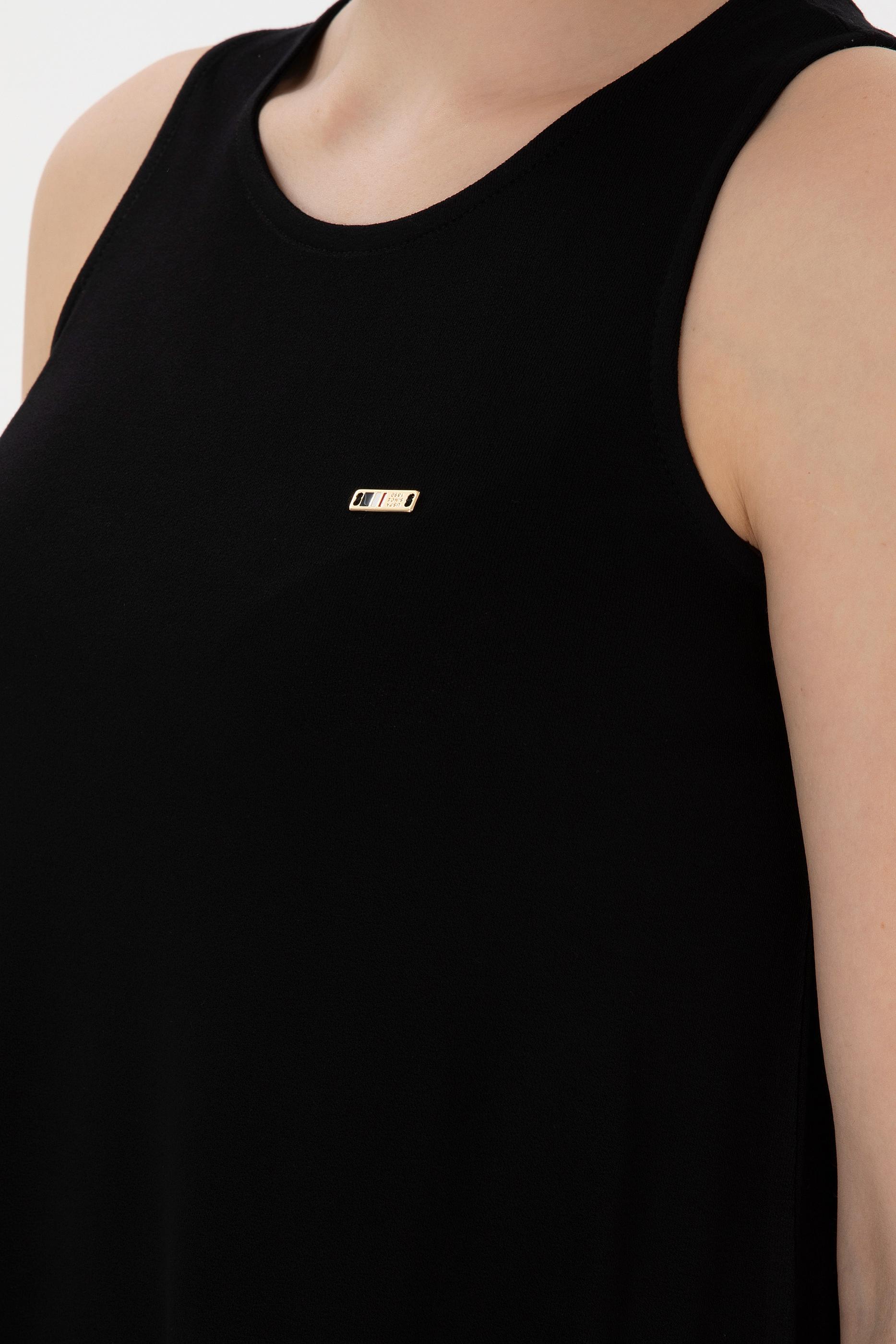 Kadın Siyah Kolsuz Bisiklet Yaka Tişört