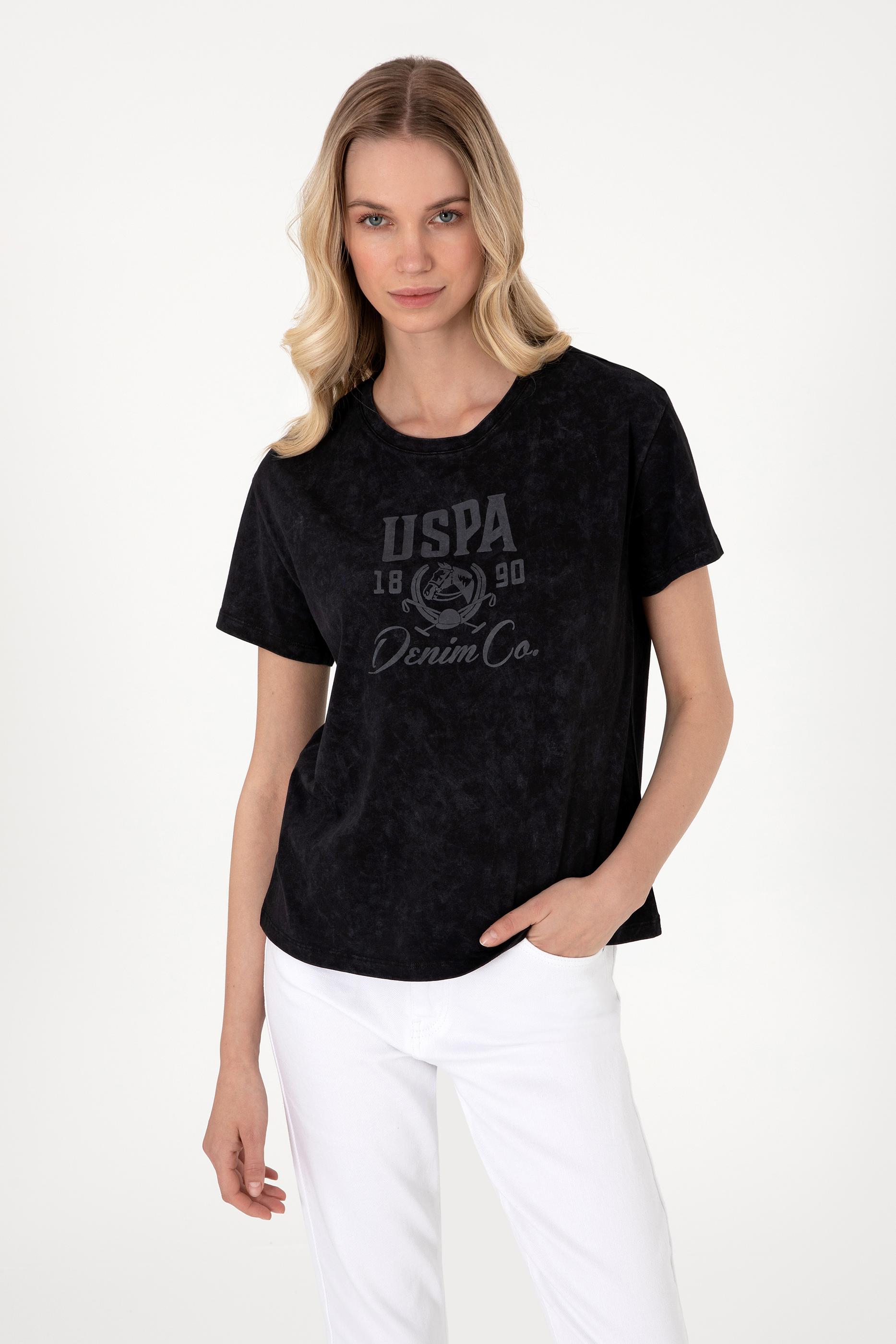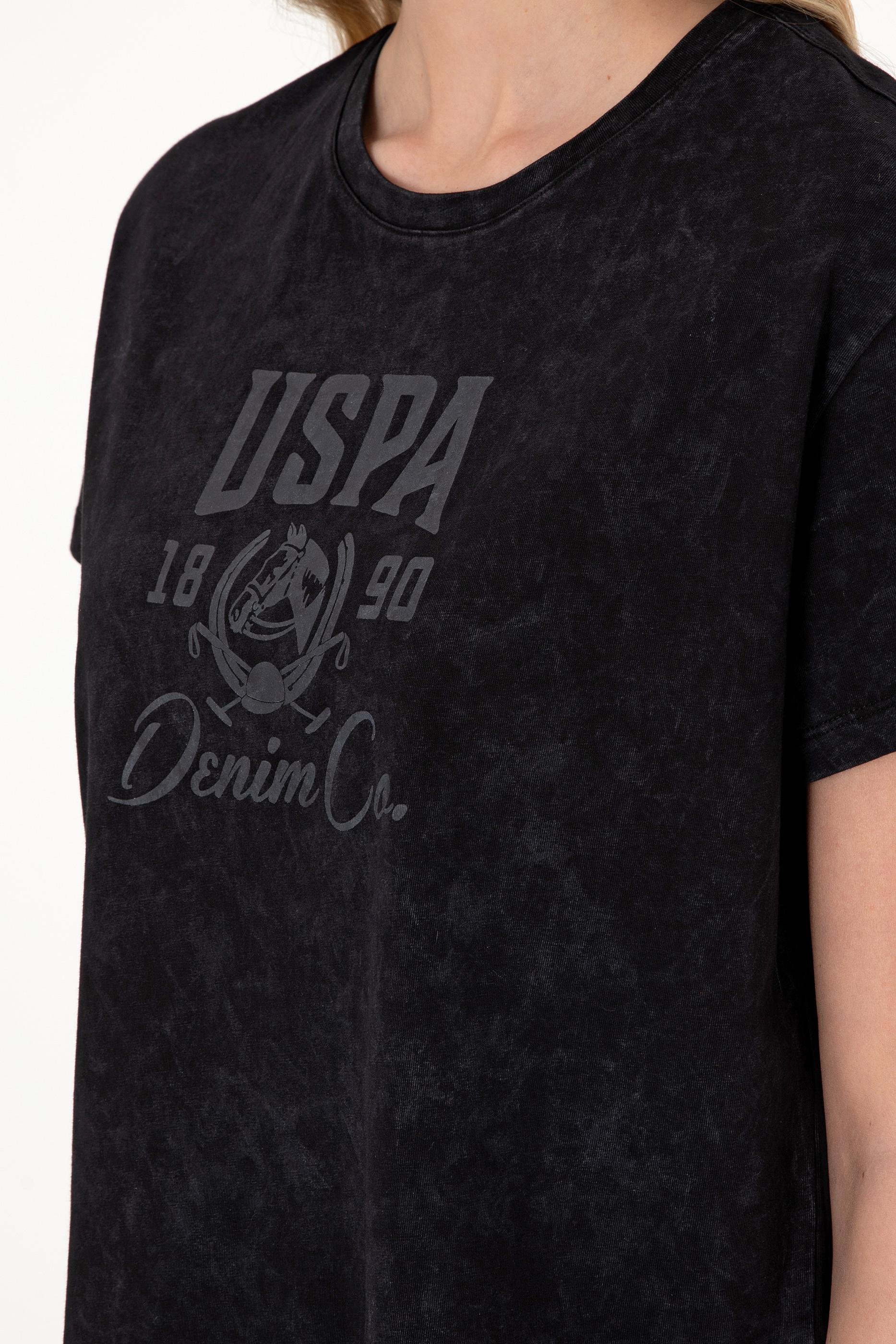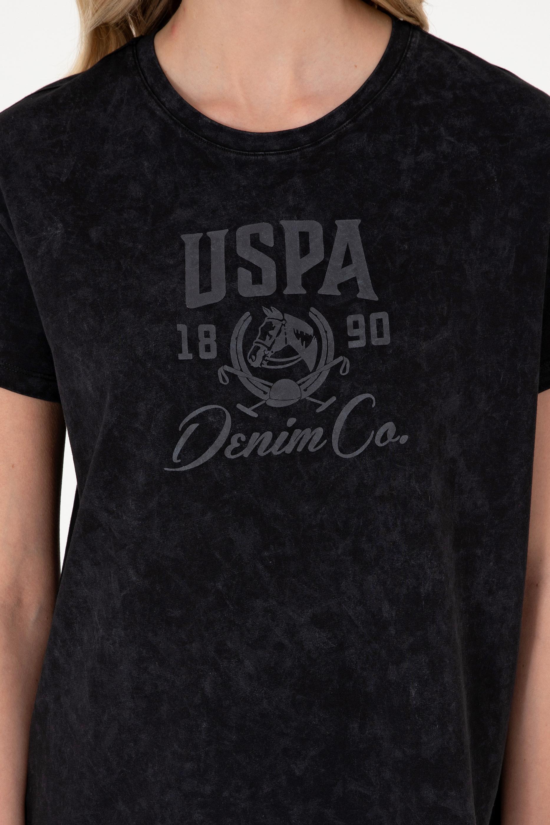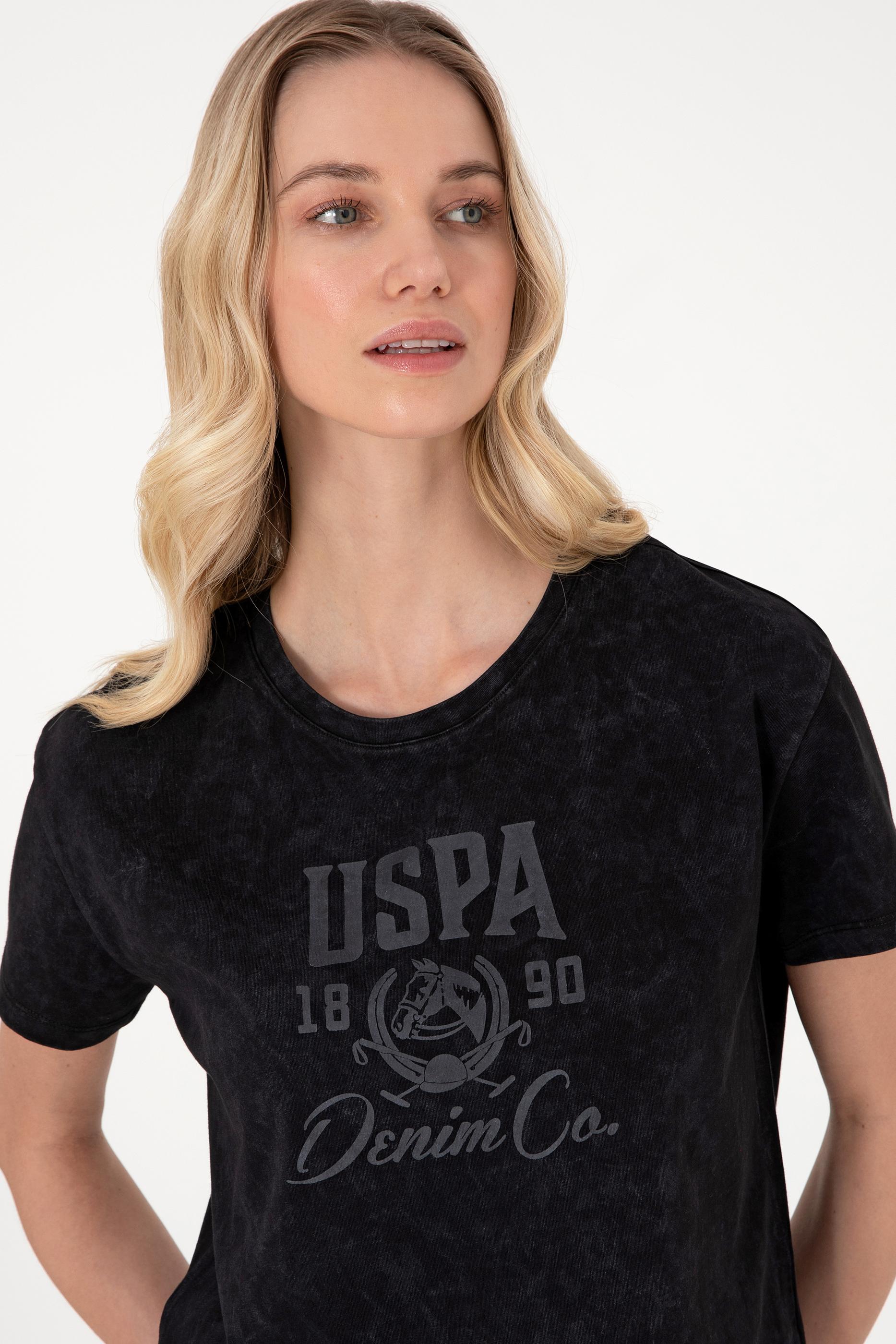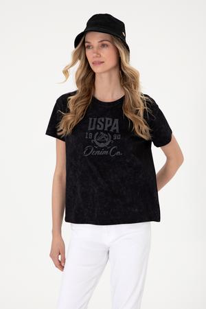 U.S. Polo Assn. tasarımı bu kadın siyah tişört, özel yıkama efektiyle hafif soluk ve dokulu bir görünüm sunarak casual stile güçlü bir karakter kazandırır. Bisiklet yaka kesimi ve kısa kollu yapısıyla sade bir temel oluştururken, göğüs kısmındaki büyük ebatlı USPA Denim Co. baskı tasarıma dinamik bir hava katar. Yumuşak ve dökümlü duruşuyla rahatlık vadeden model, hem günlük kullanım hem de hafta sonu kombinleri için ideal bir seçimdir. Beyaz, krem veya açık renk pantolonlarla kontrast yaratarak öne çıkan bu parça, sportif ve sokak stiline göz kırpan modern bir alternatiftir.