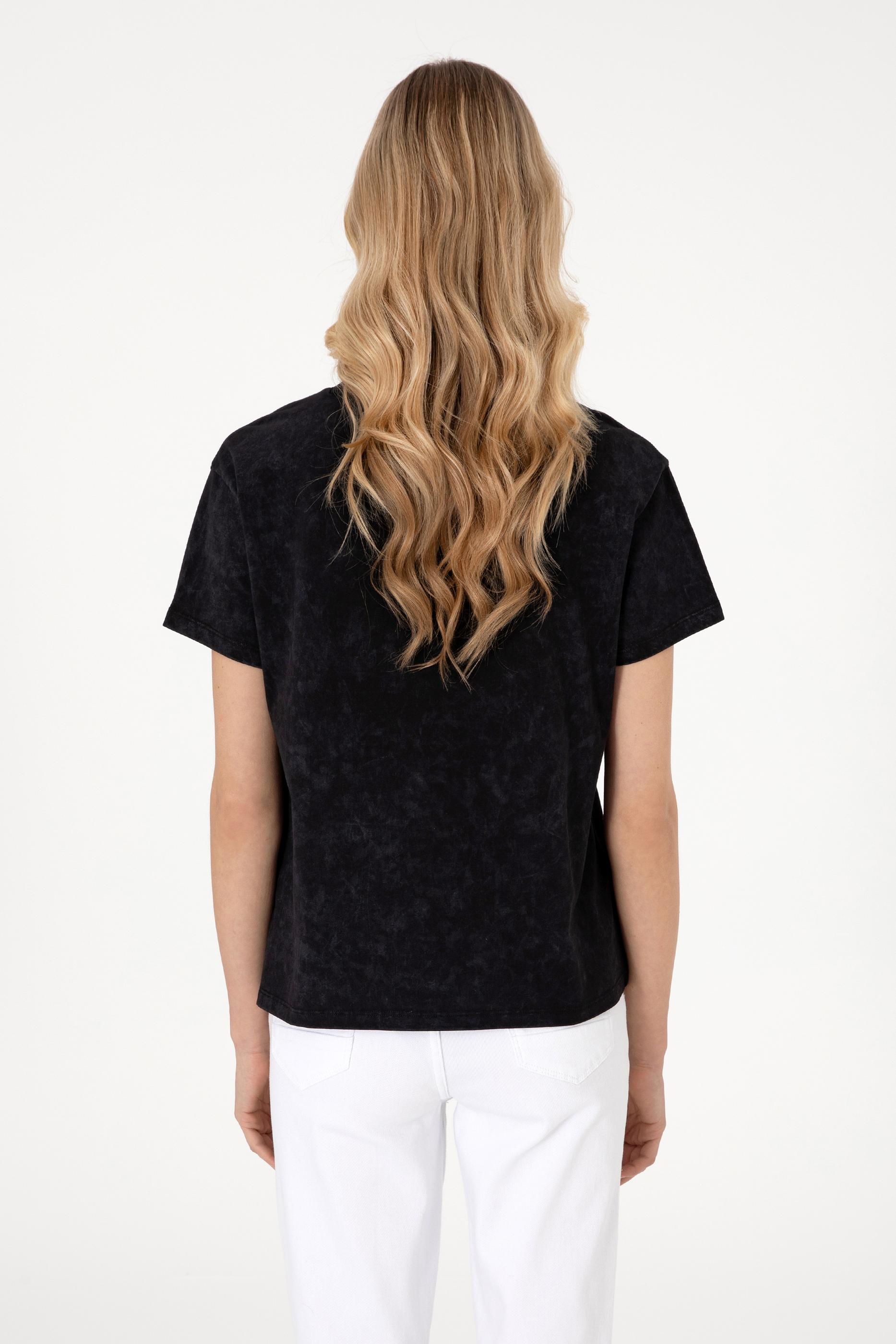 - Kadın Siyah Yıkamalı Bisiklet Yaka Tişört