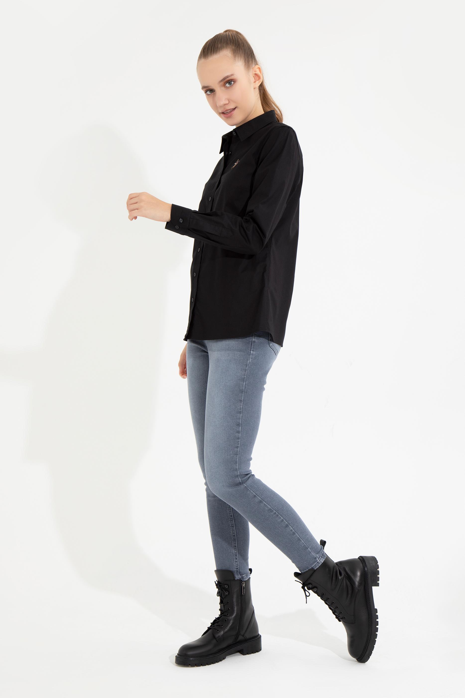 - Kadın Siyah Uzun Kollu Basic Gömlek