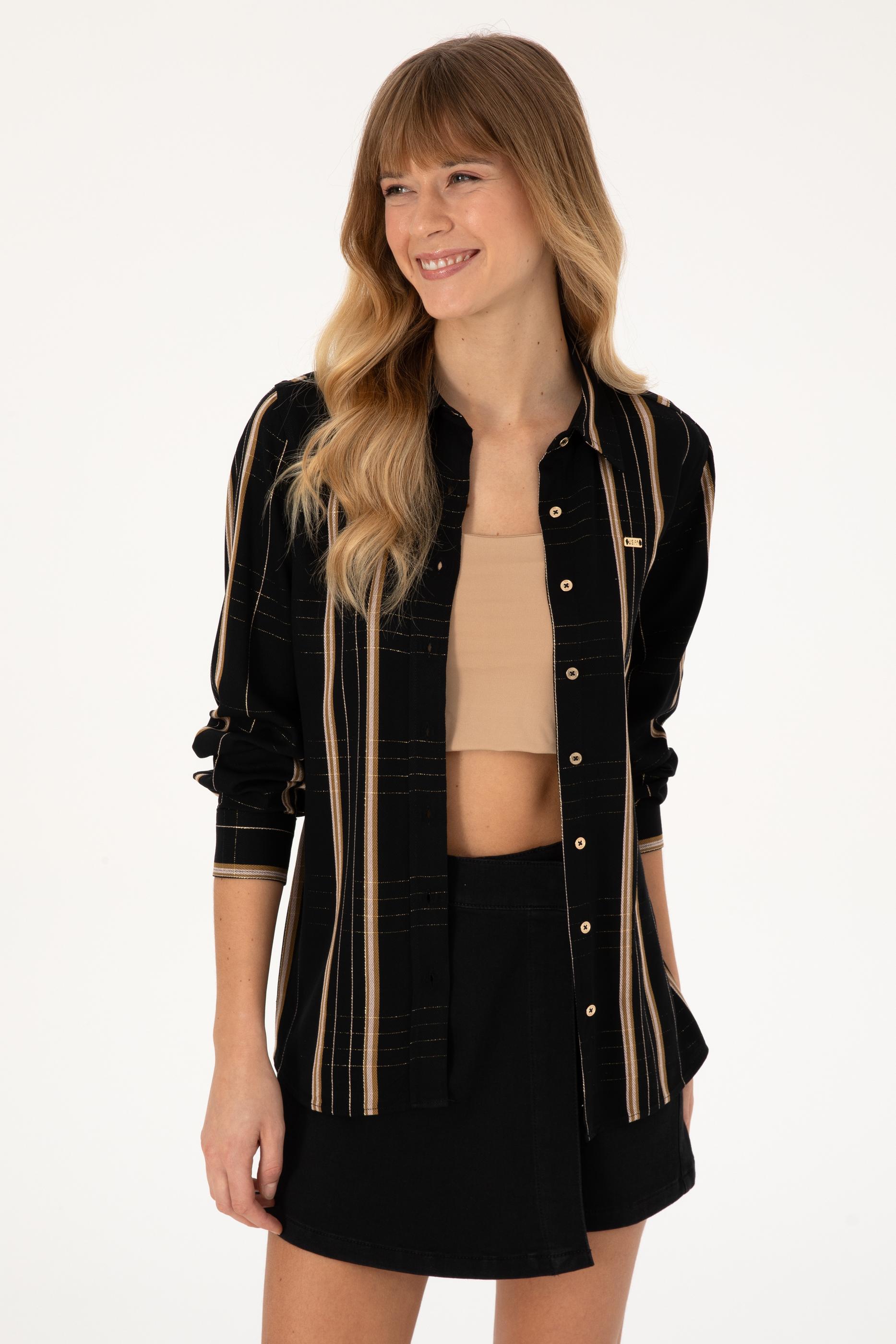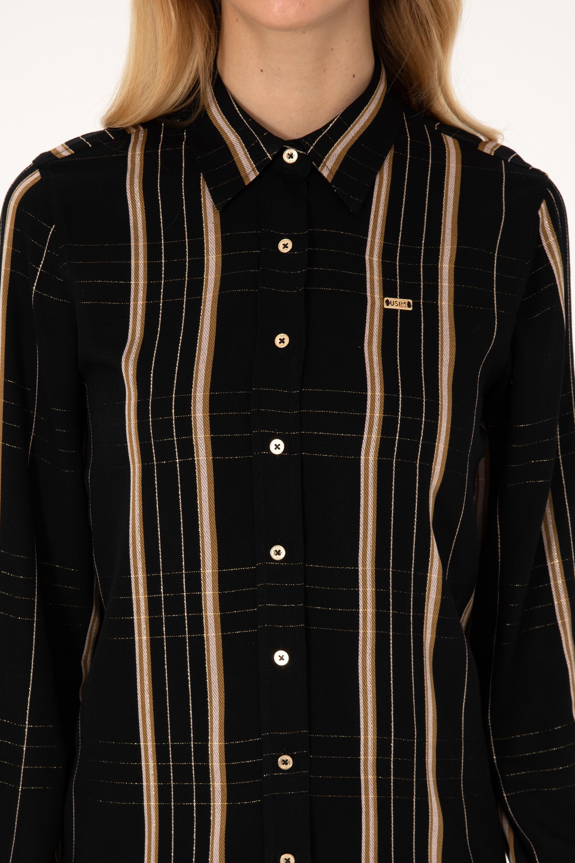 Kadın Siyah Uzun Kollu Çİzgili Gömlek