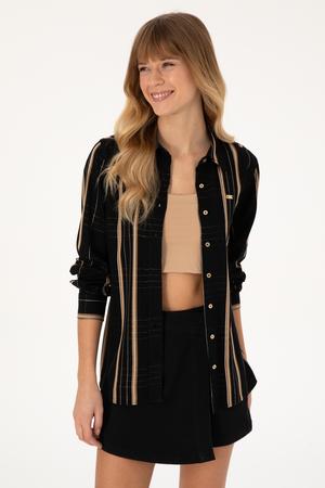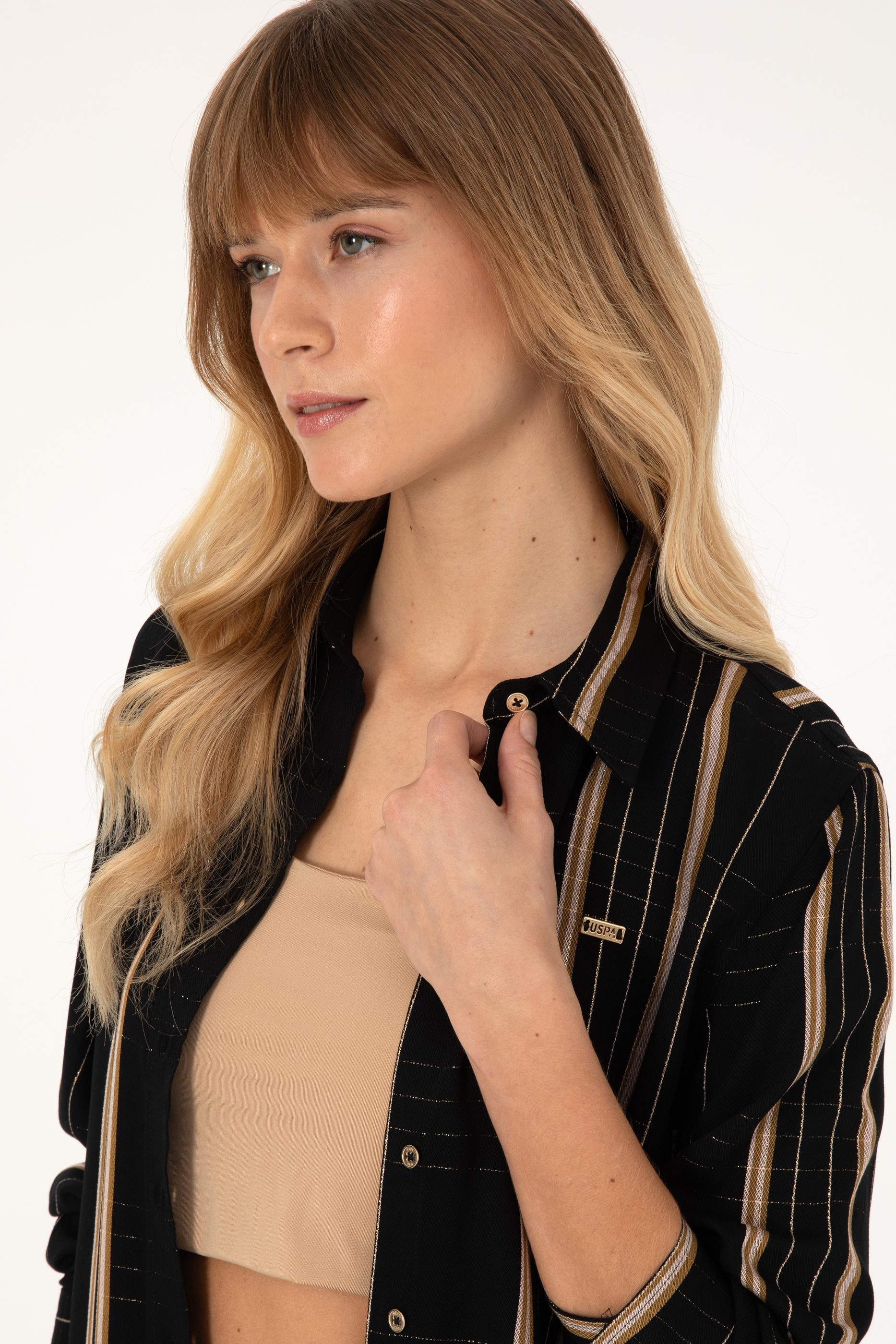 - Kadın Siyah Uzun Kollu Çİzgili Gömlek