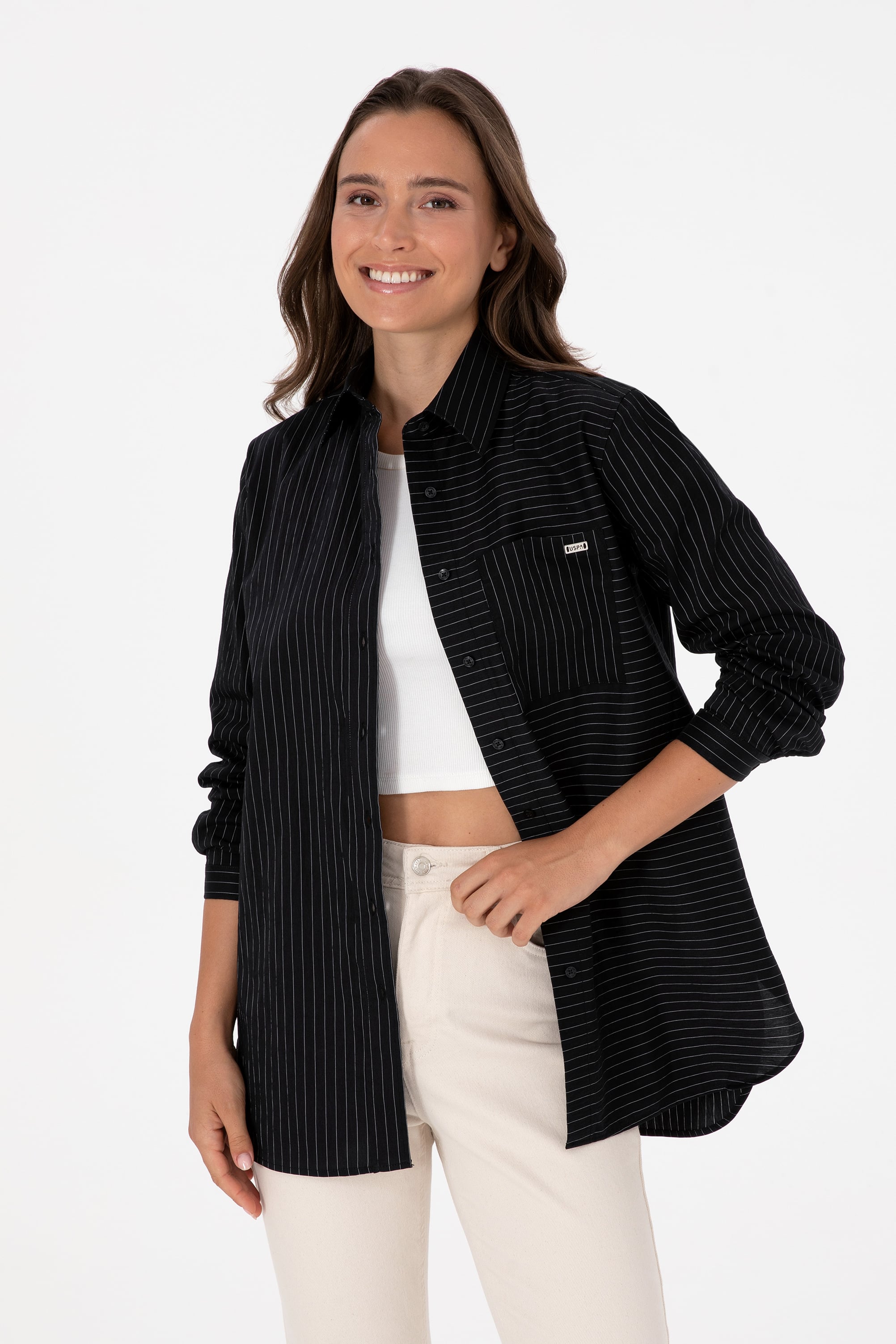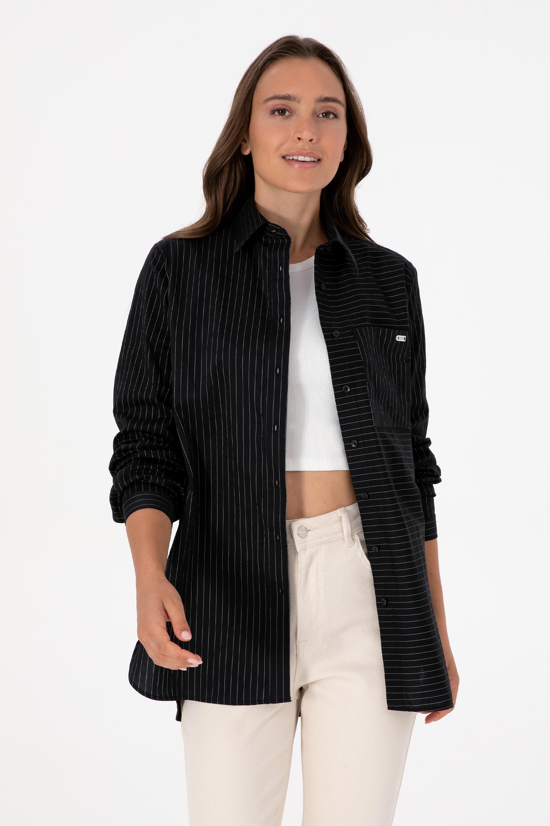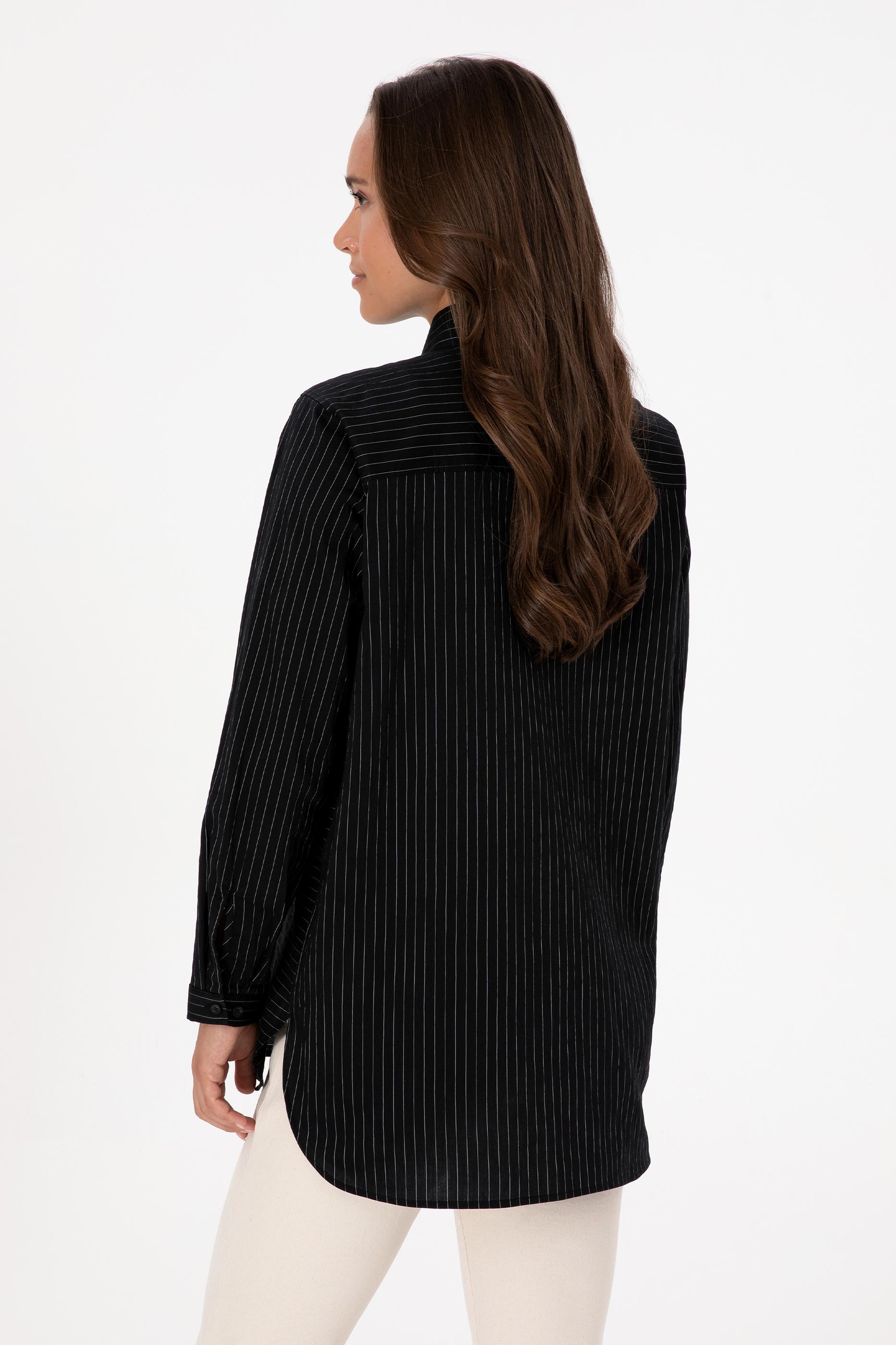 Kadın Siyah Uzun Kollu Çizgili Gömlek