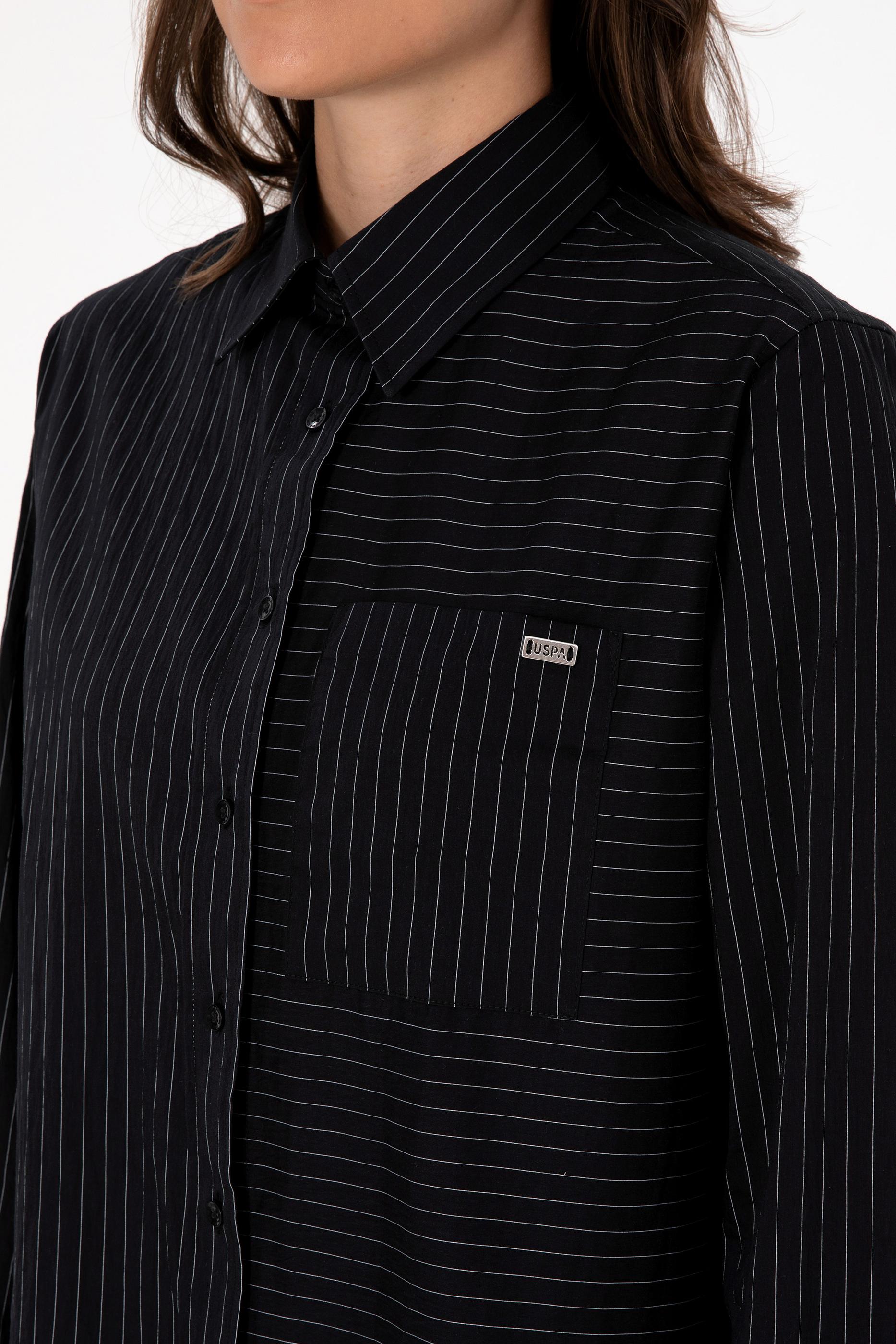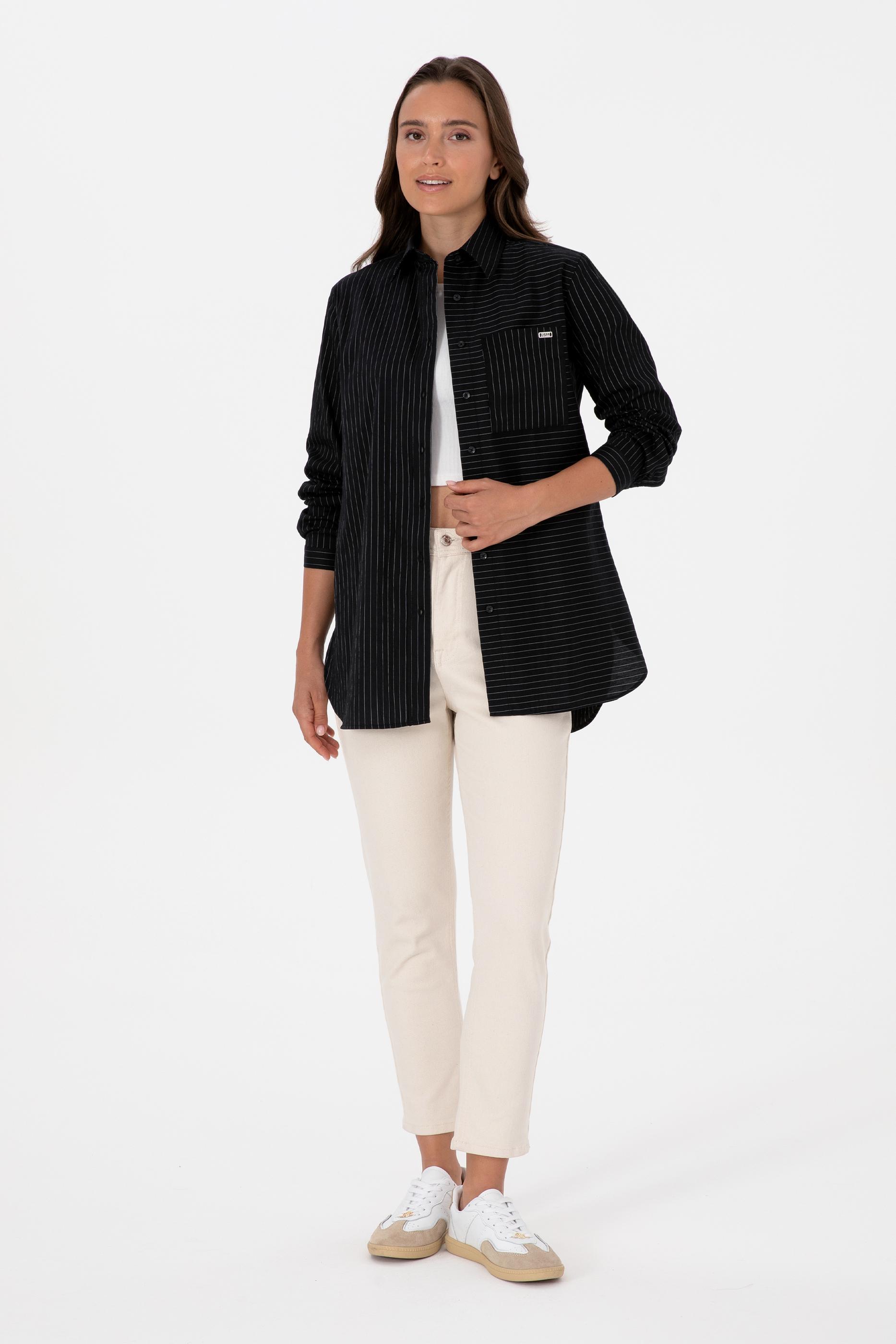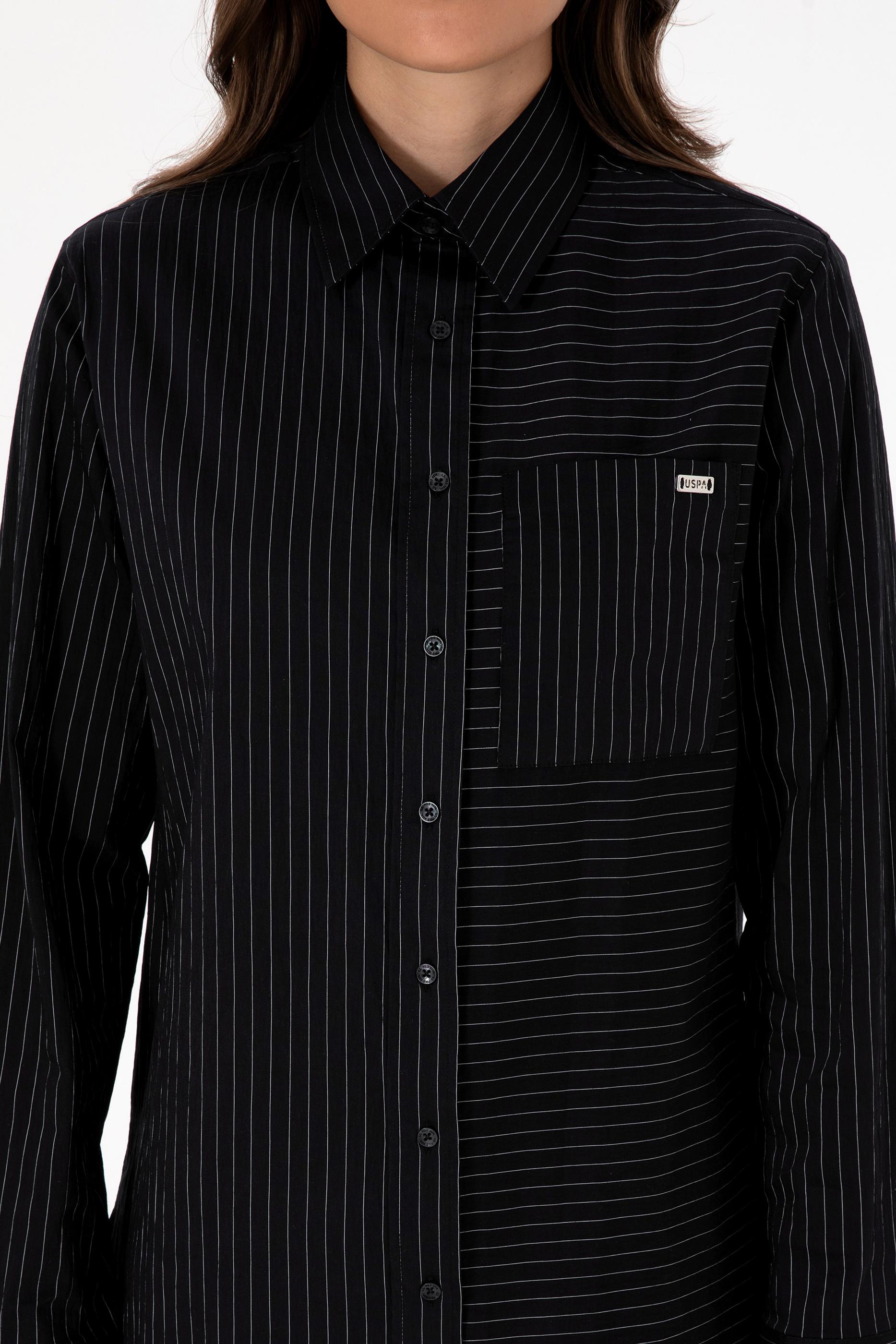 Kadın Siyah Uzun Kollu Çizgili Gömlek