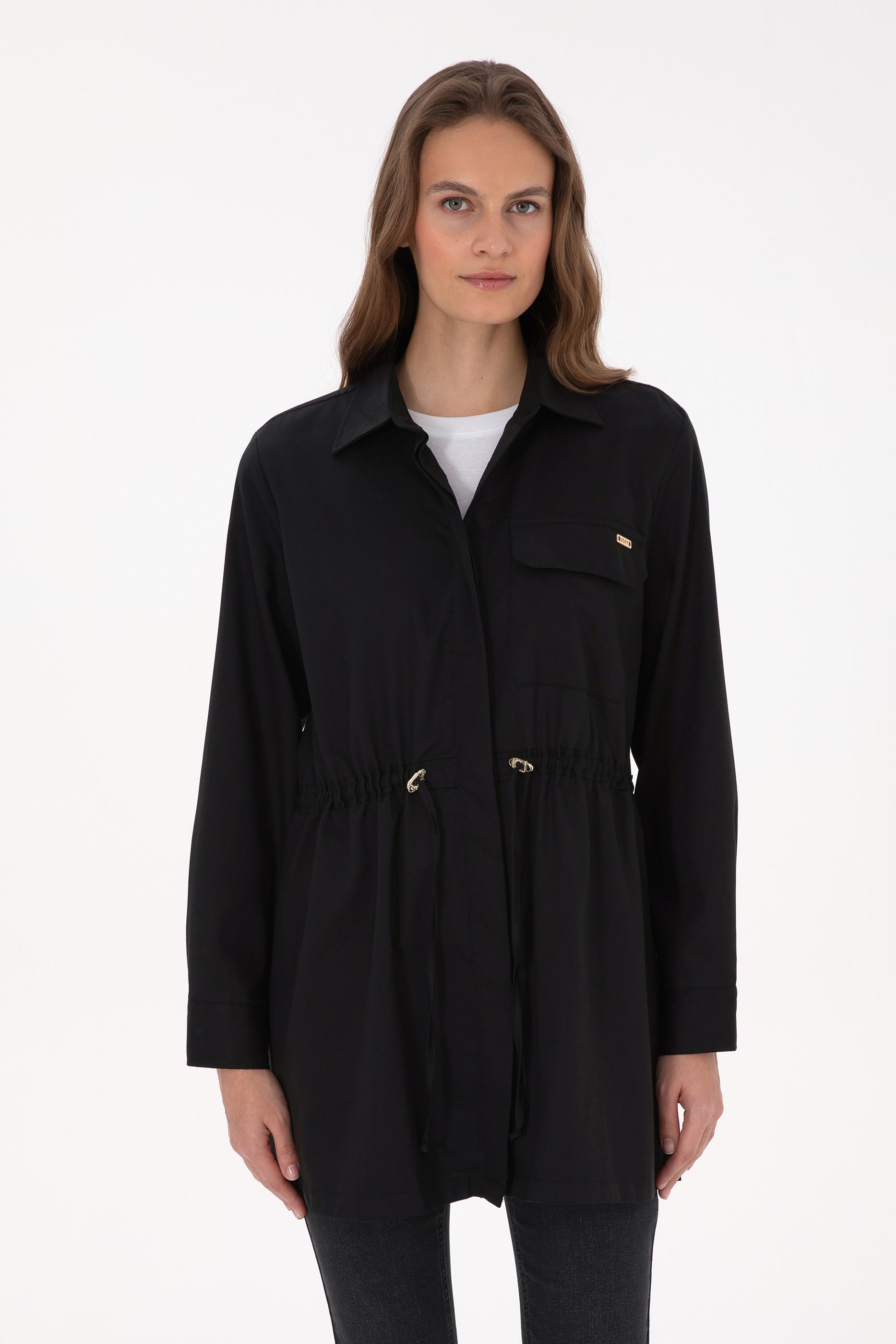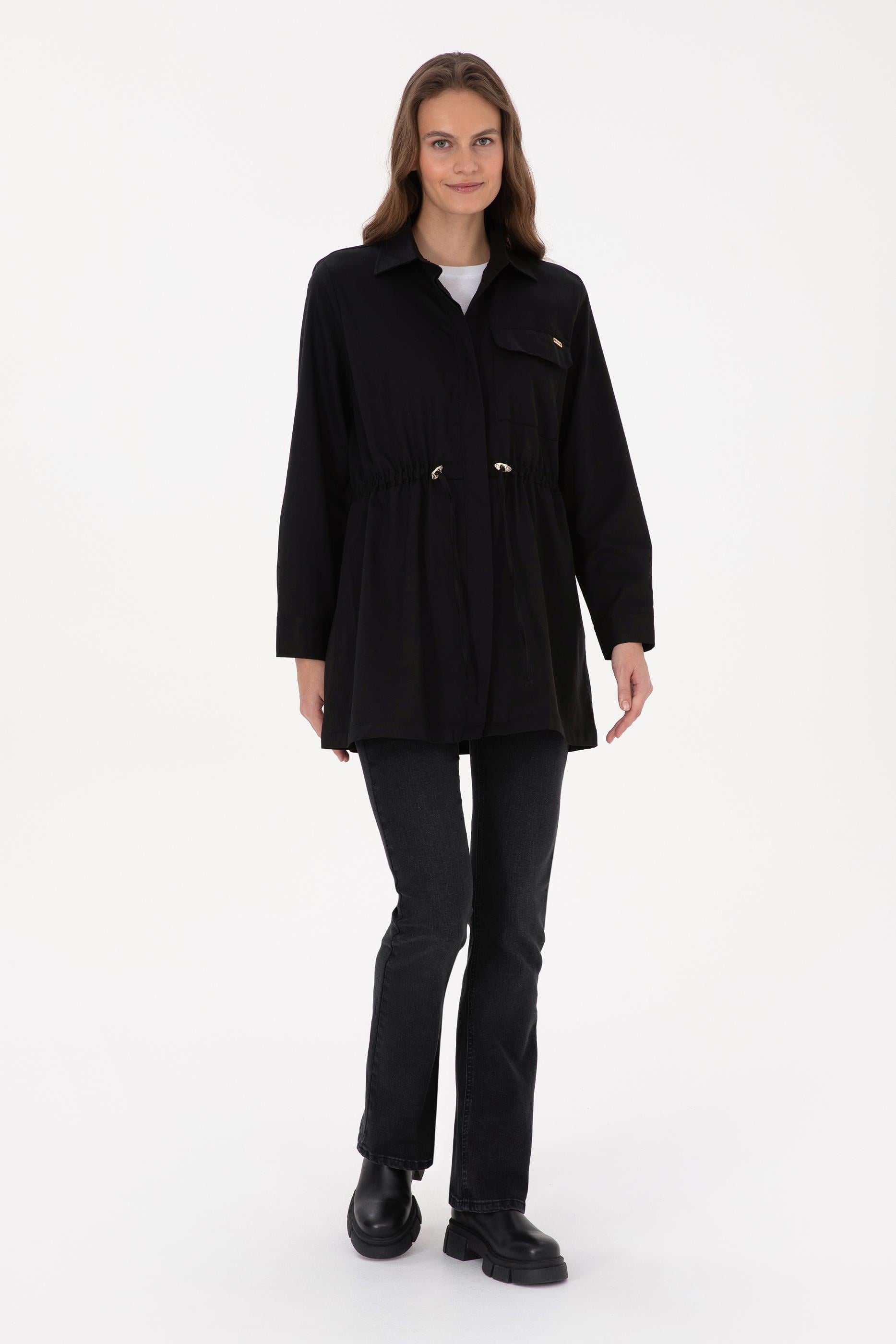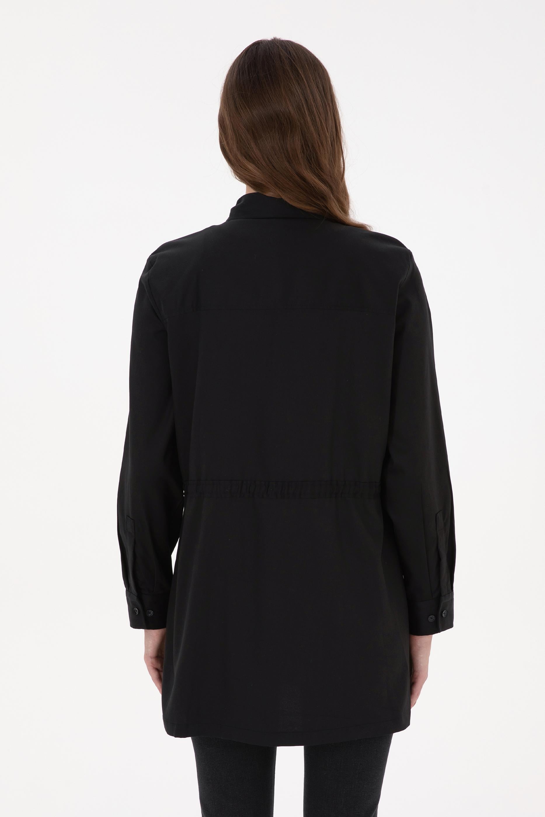 - Kadın Siyah Uzun Kollu Belden Büzgülü Gömlek