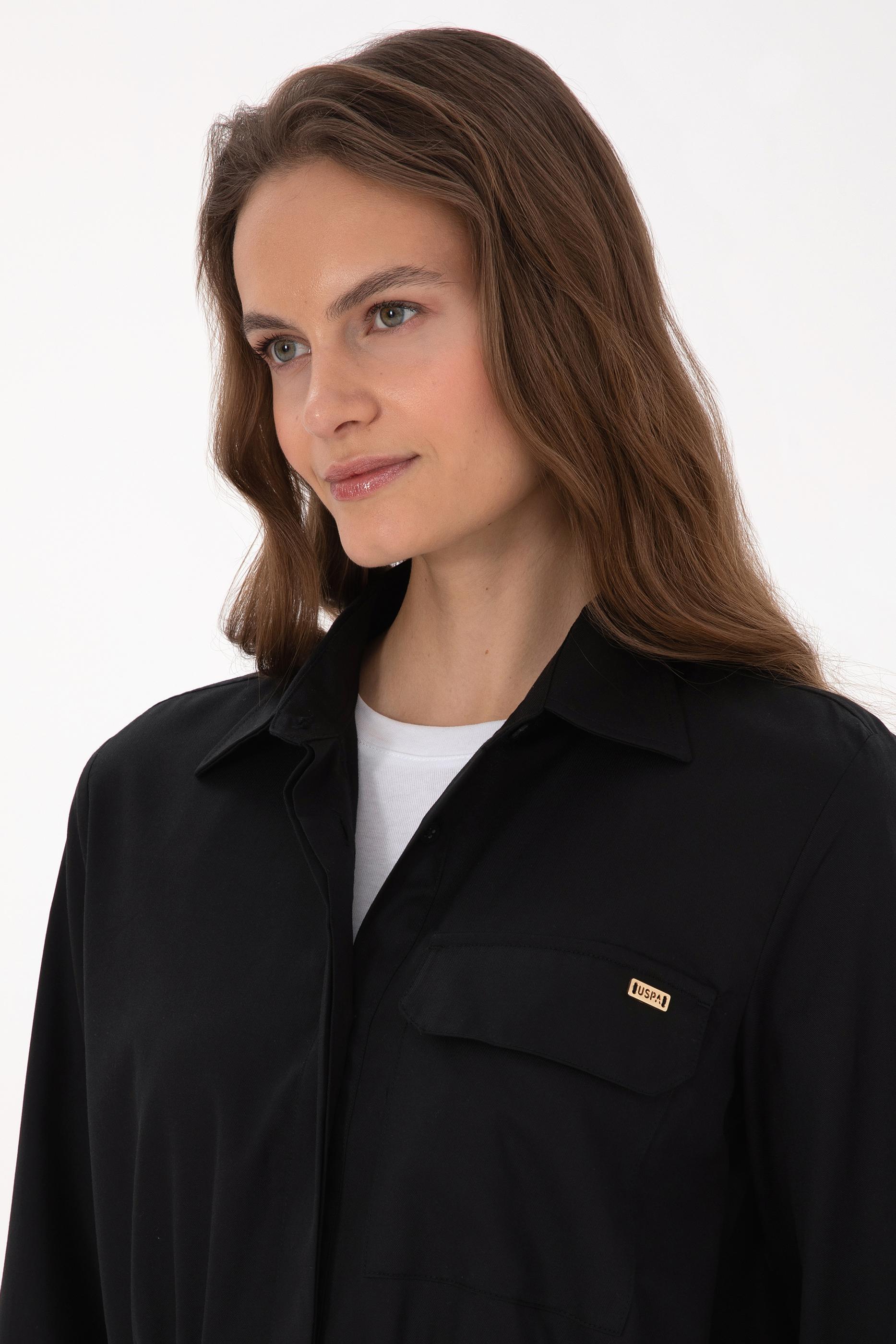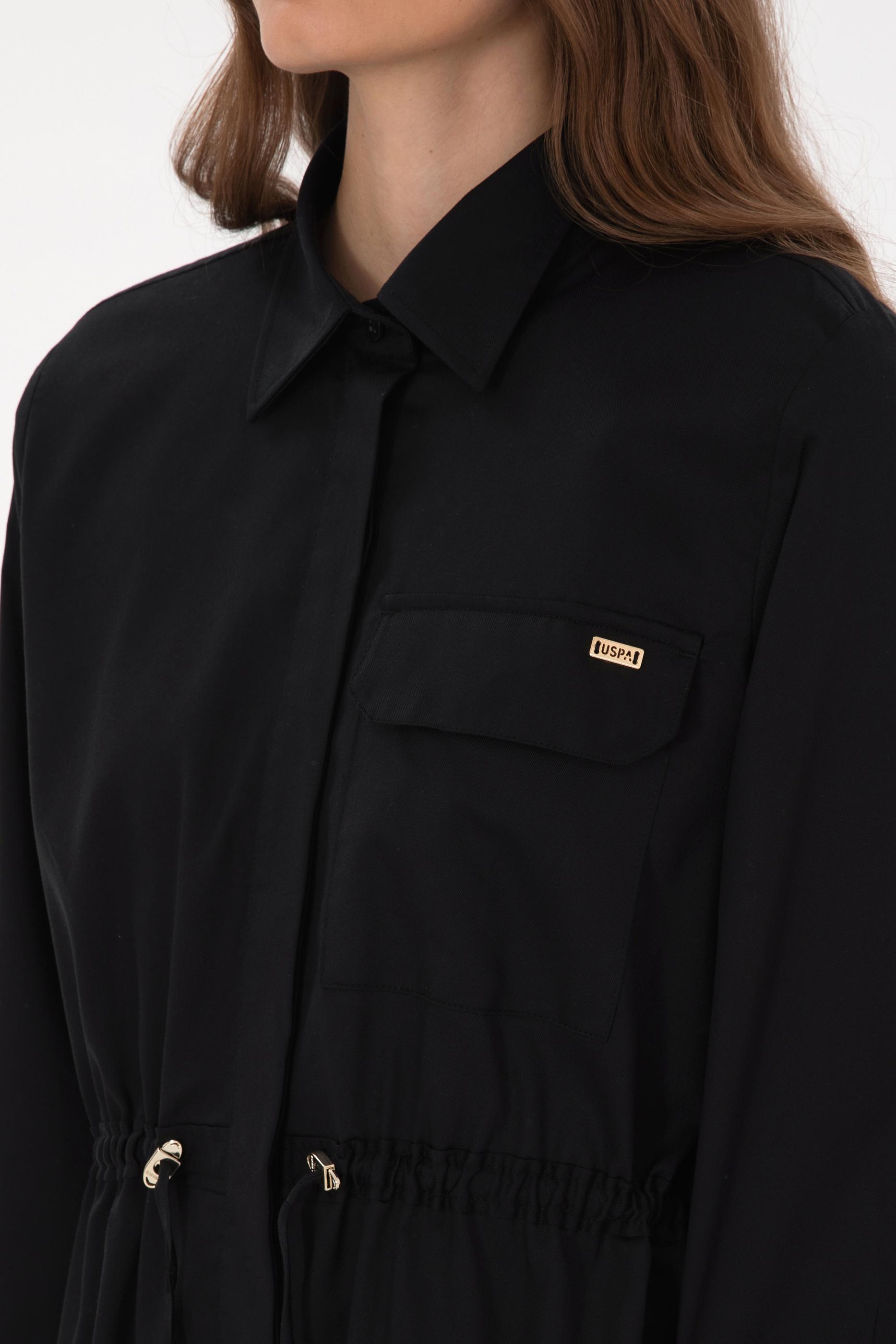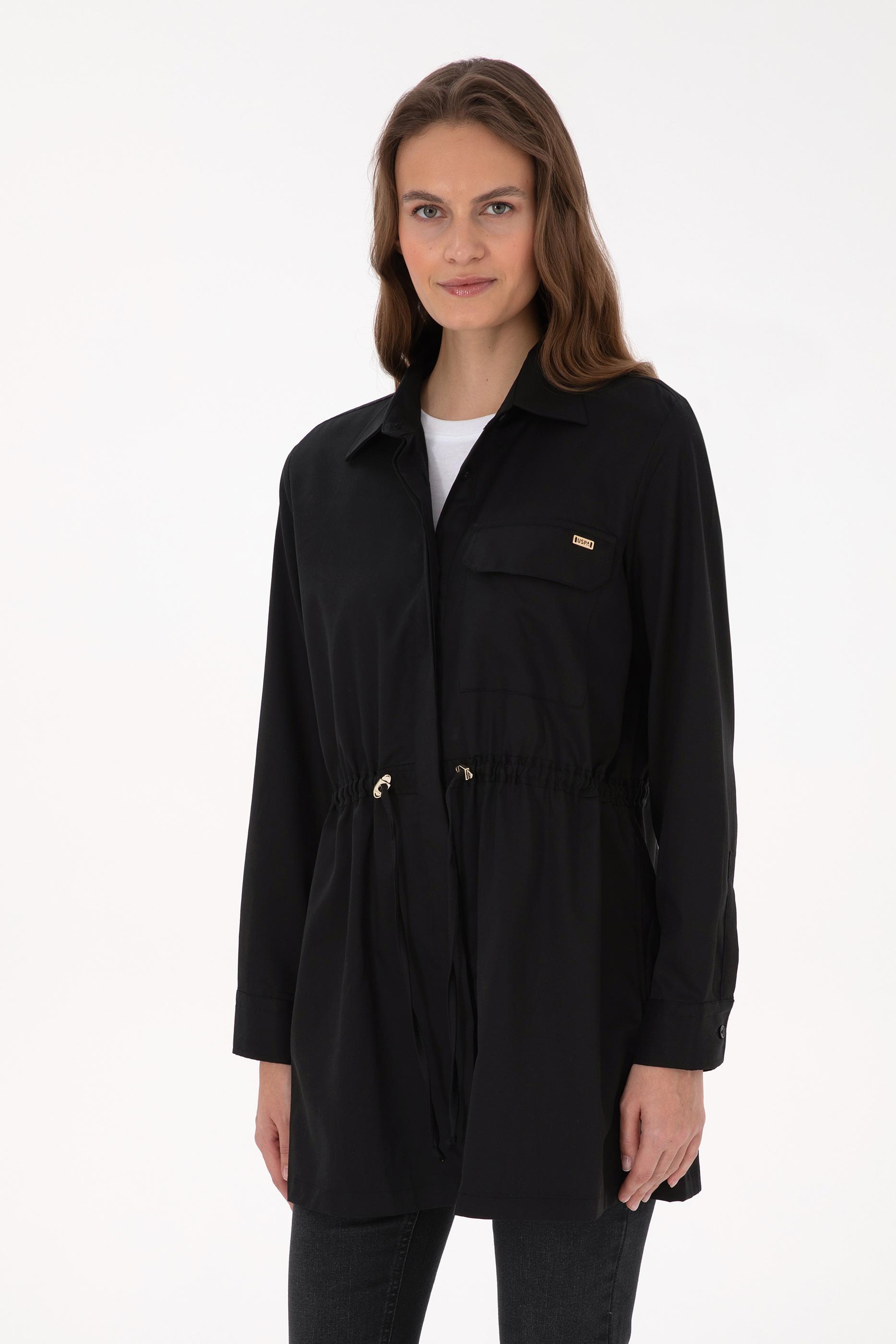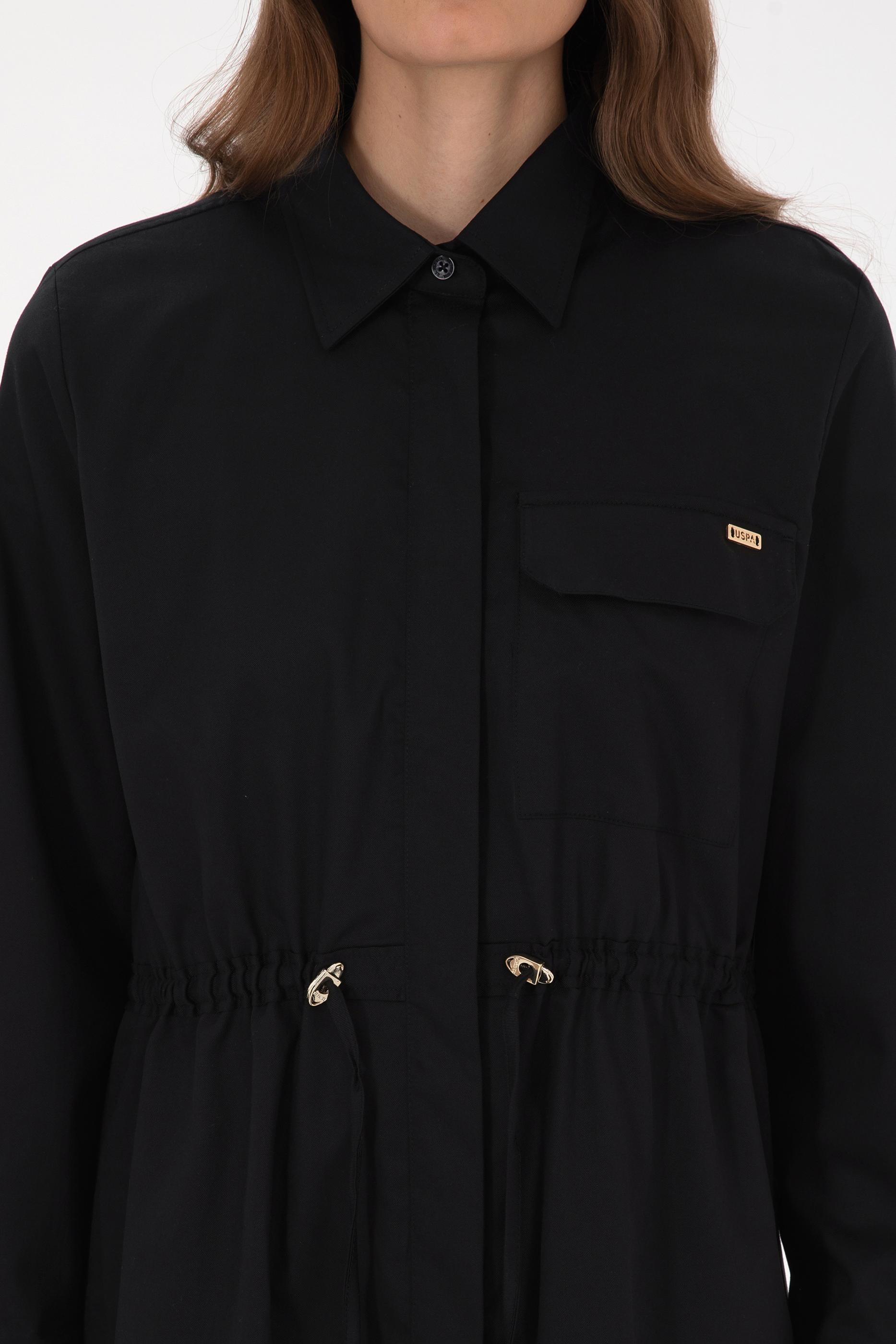 - Kadın Siyah Uzun Kollu Belden Büzgülü Gömlek