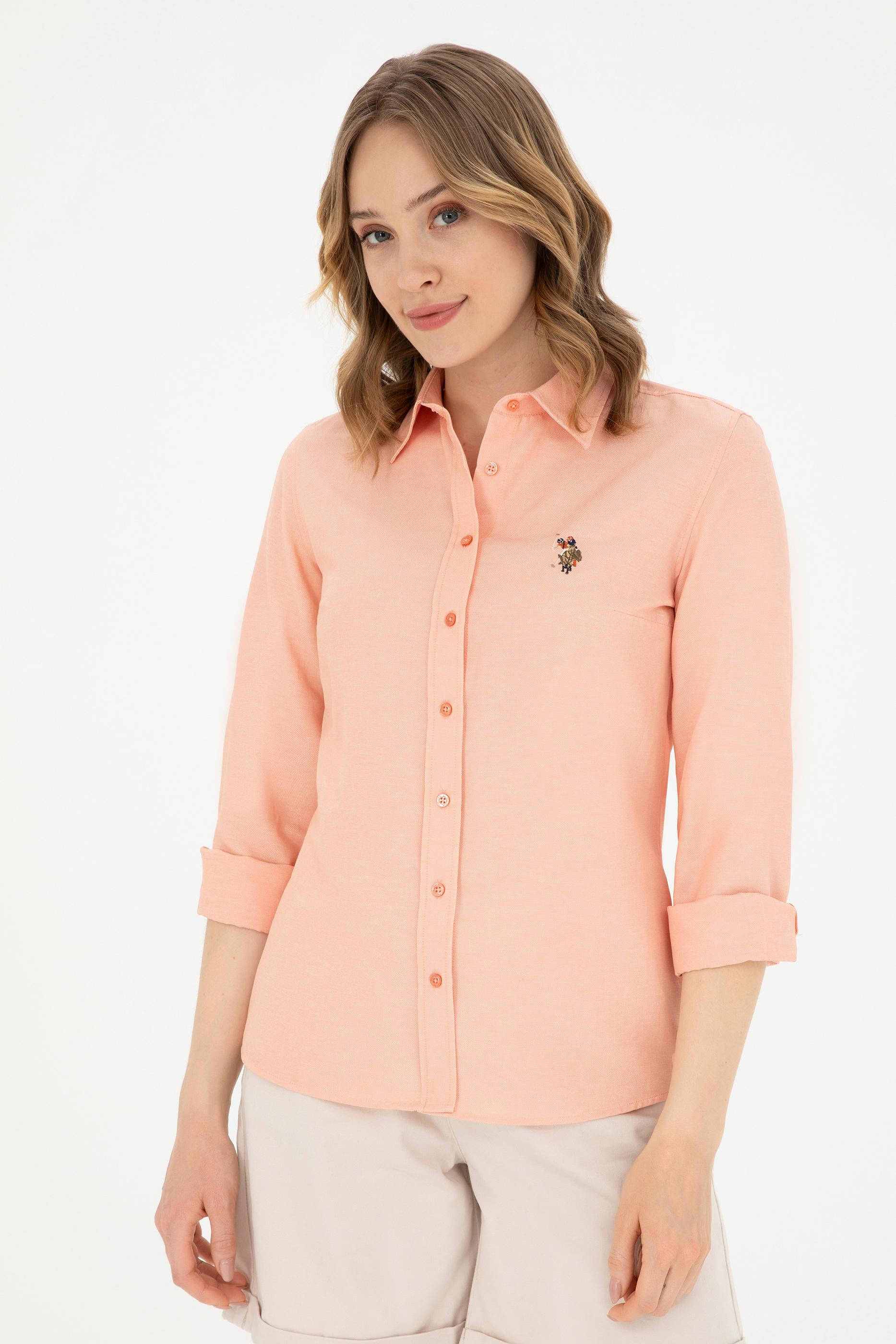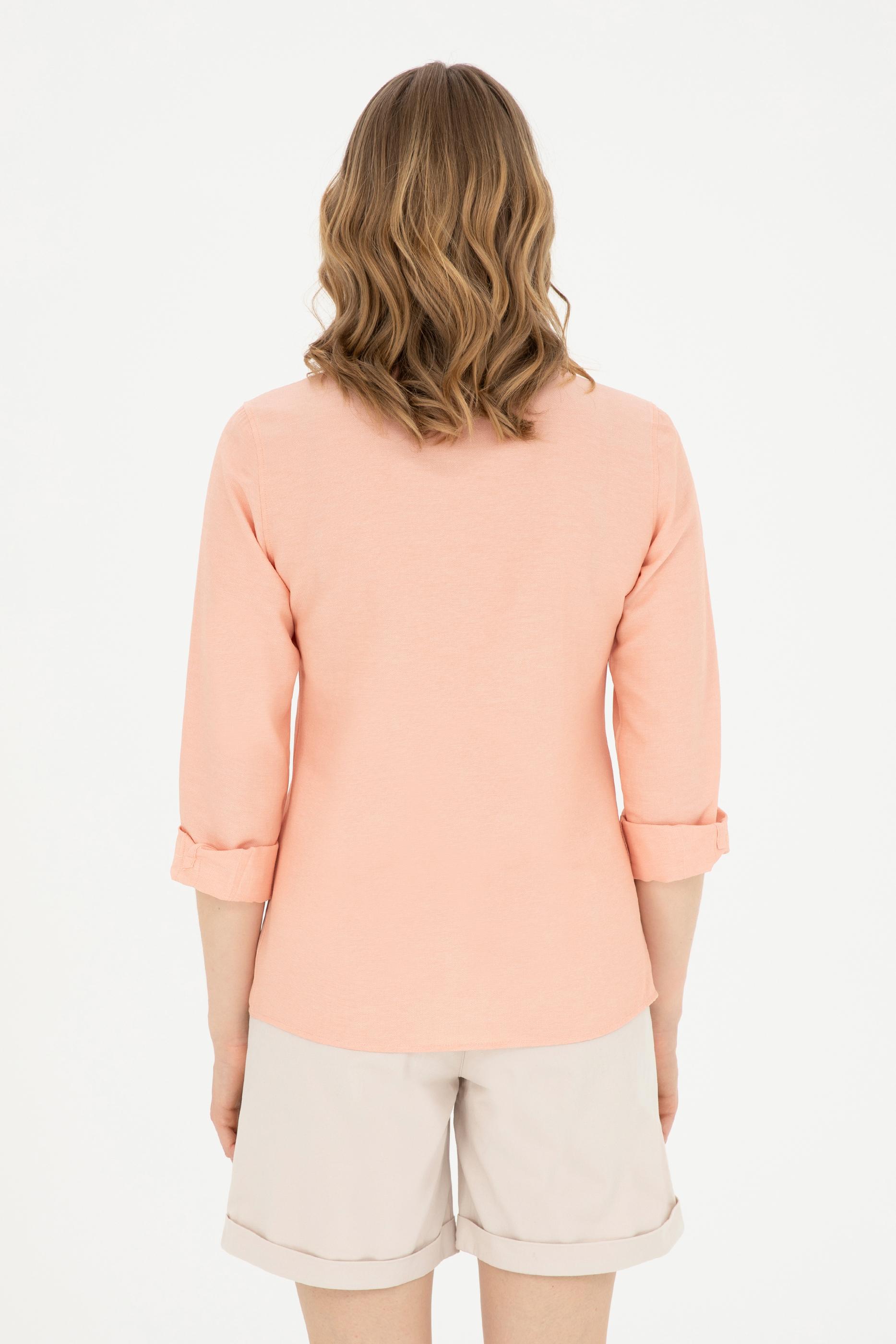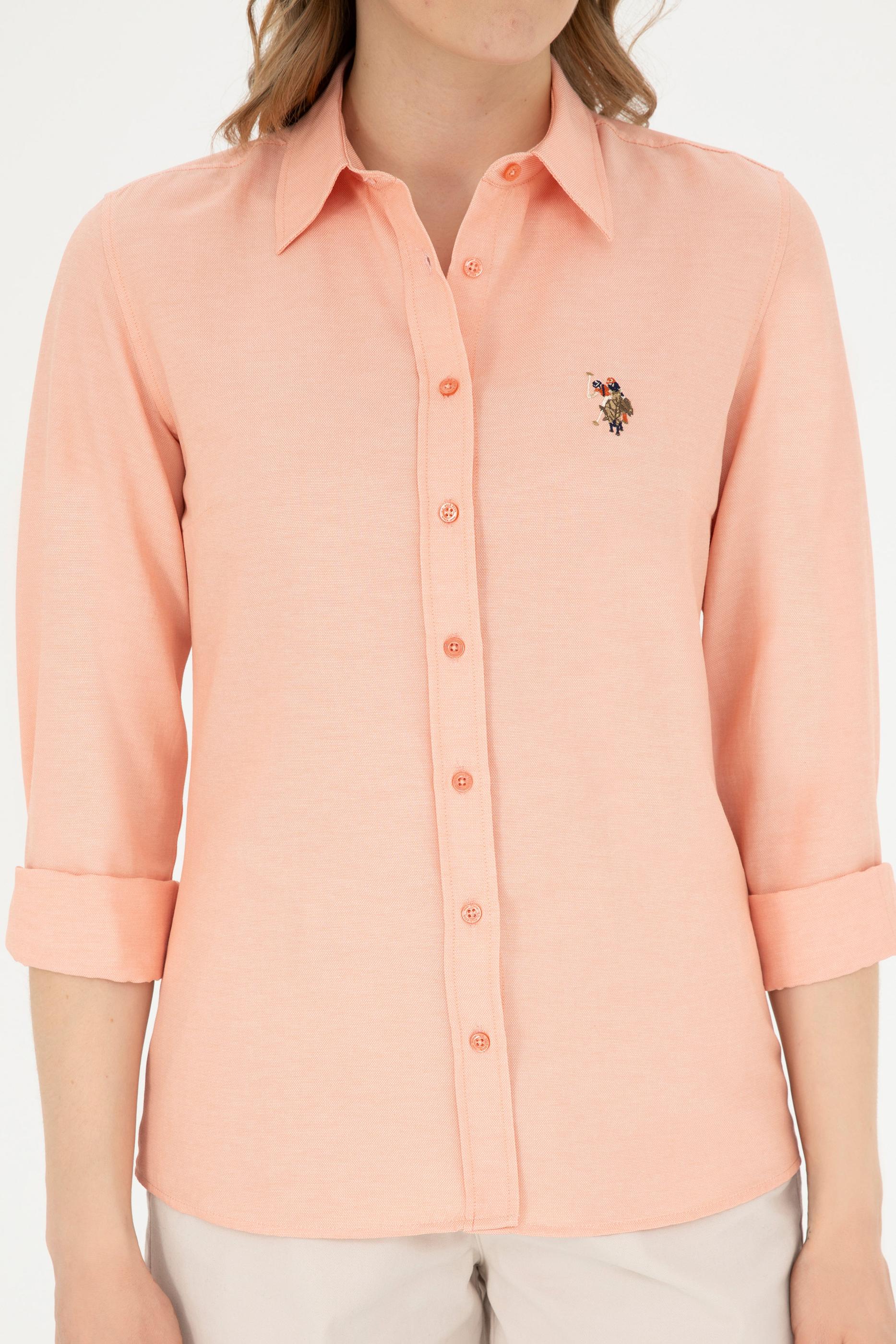 - Kadın Somon Uzun Kollu Basic Gömlek