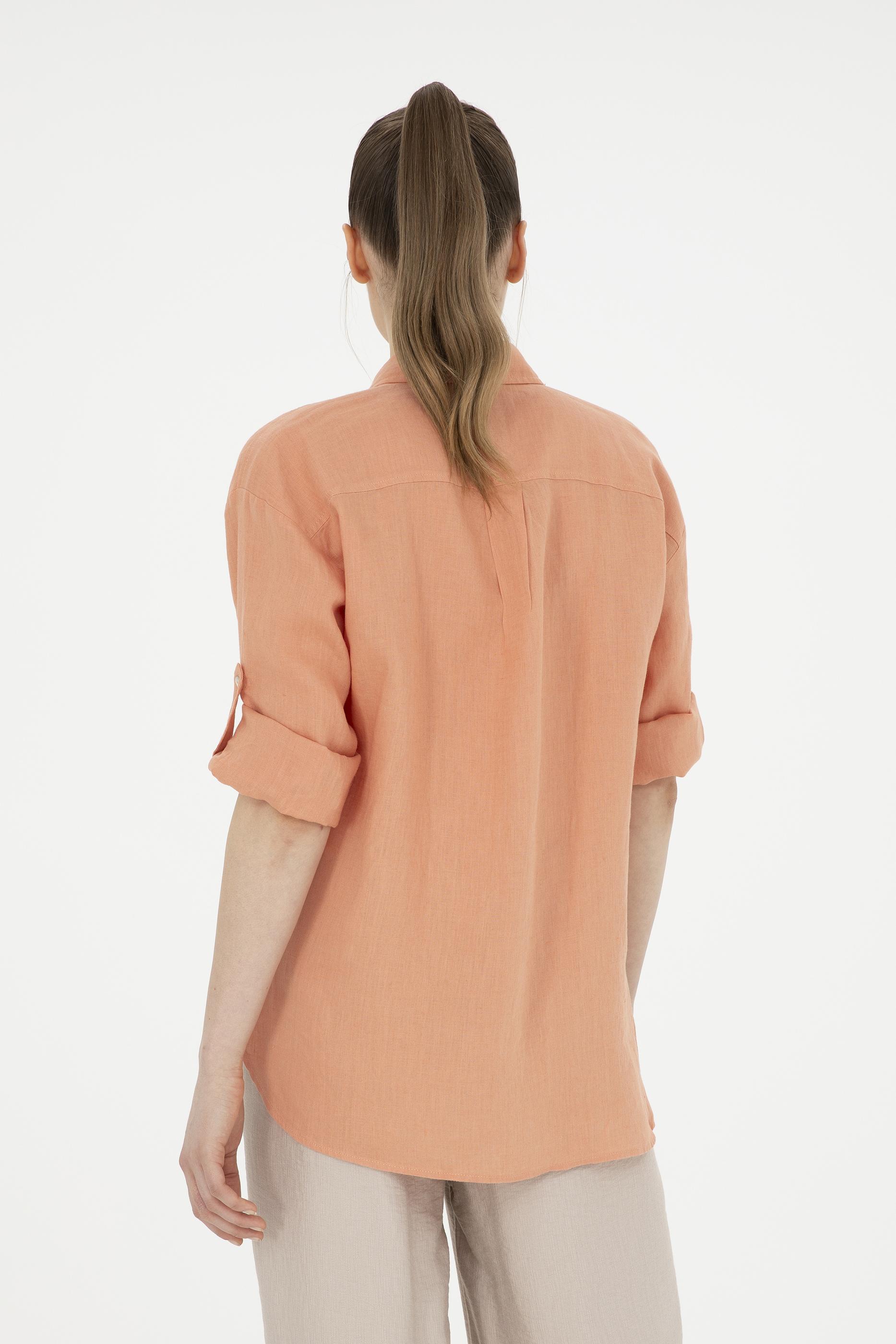 Kadın Somon Keten Uzun Kollu Gömlek