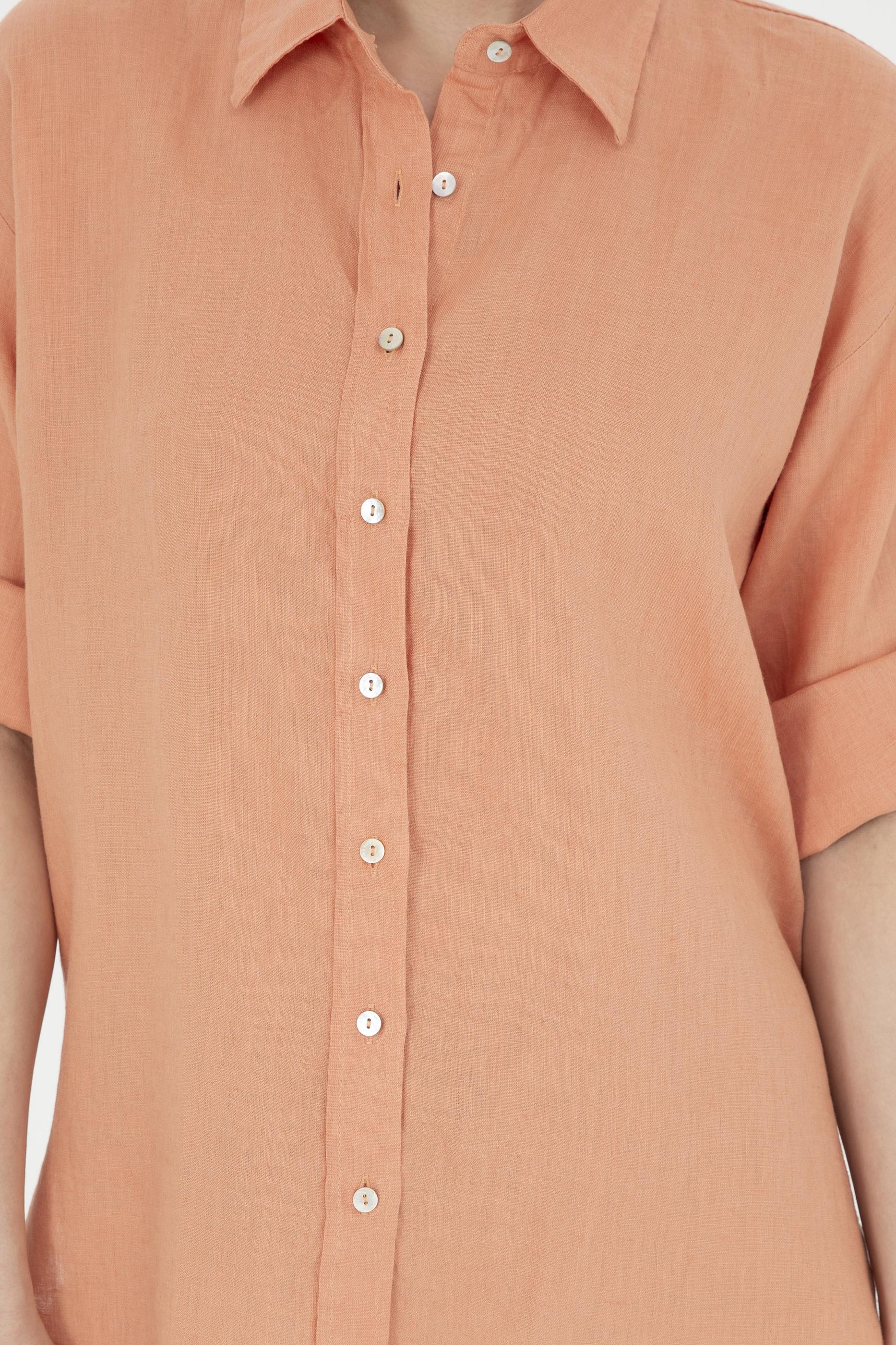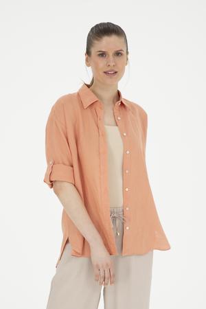 - Kadın Somon Keten Uzun Kollu Gömlek