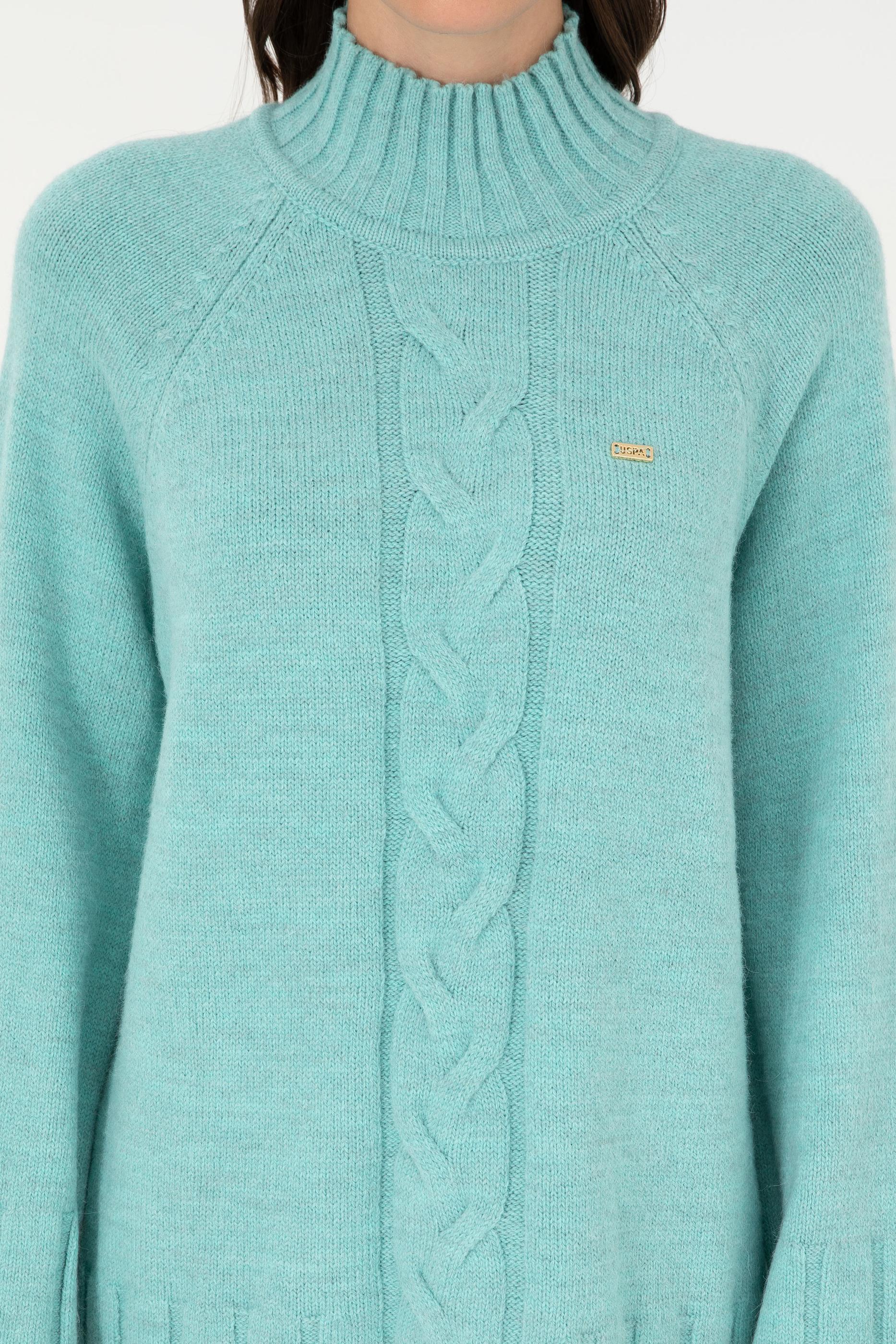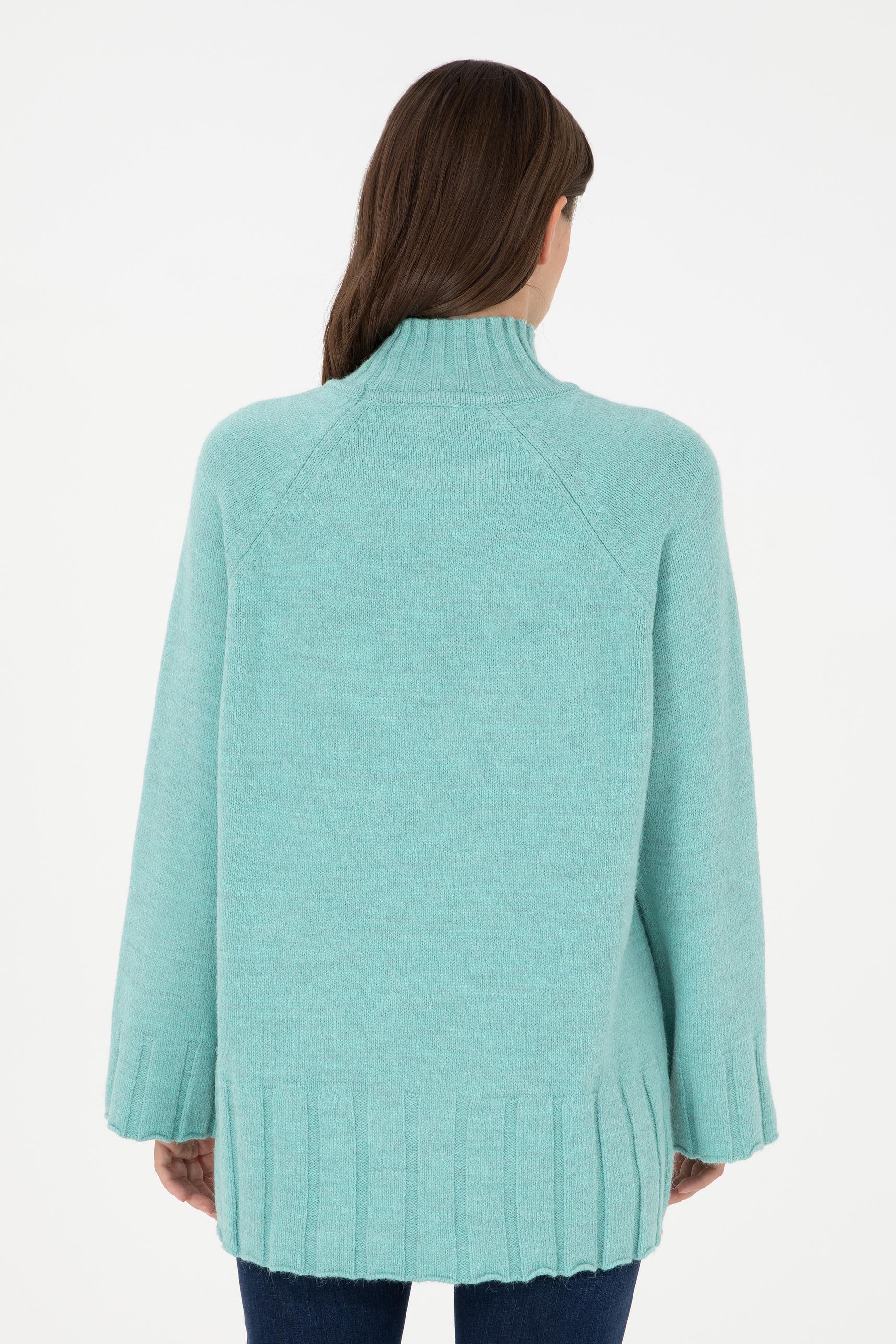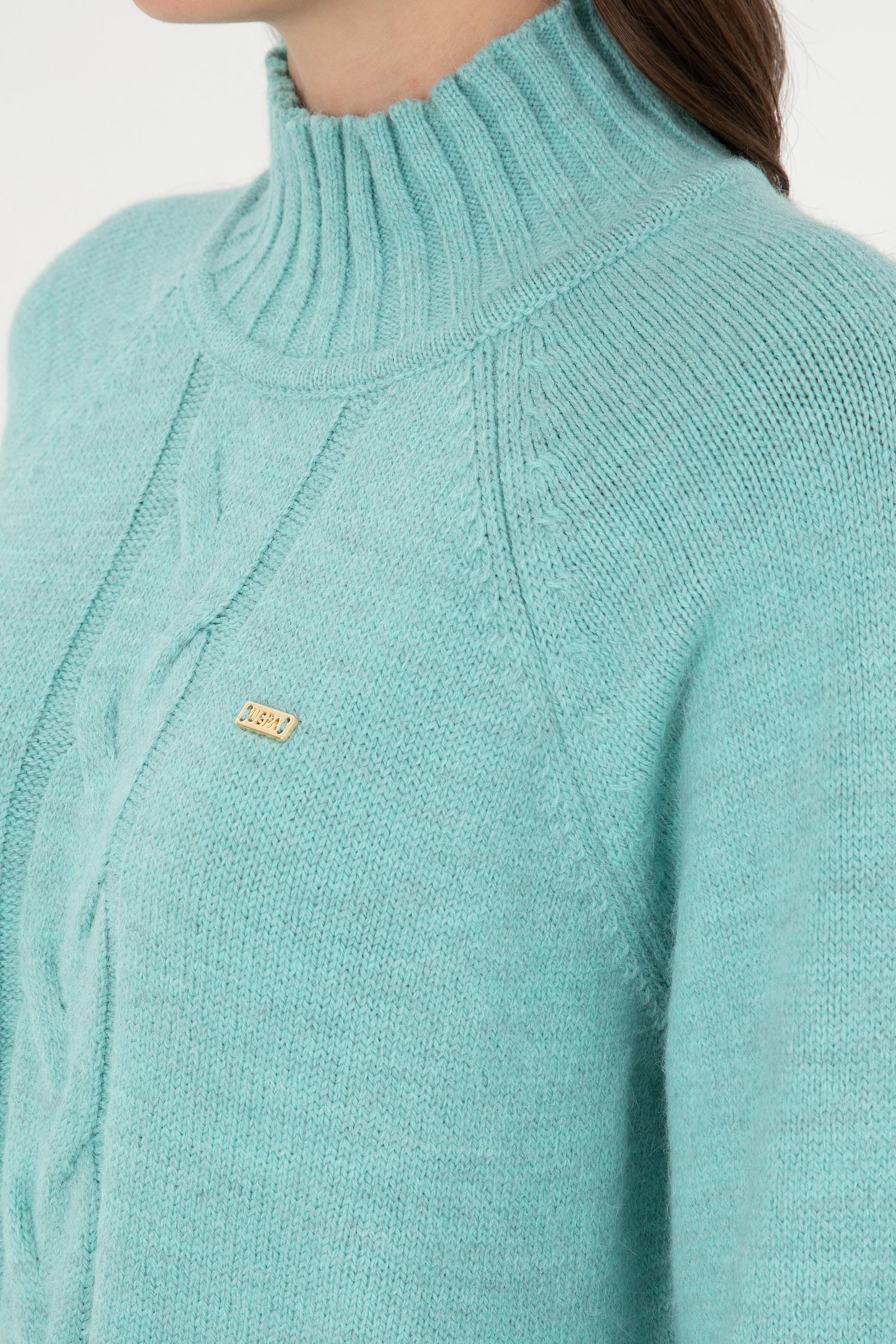 Kadın Su Yeşili Balıkçı Yaka Kazak