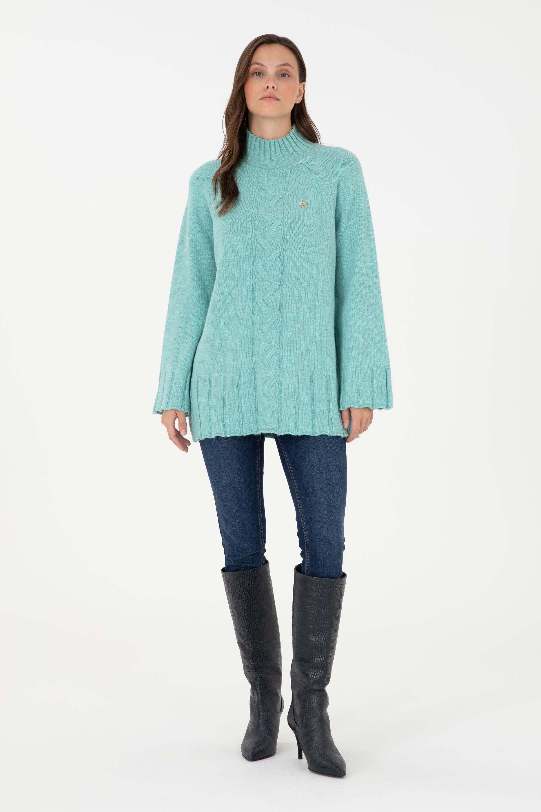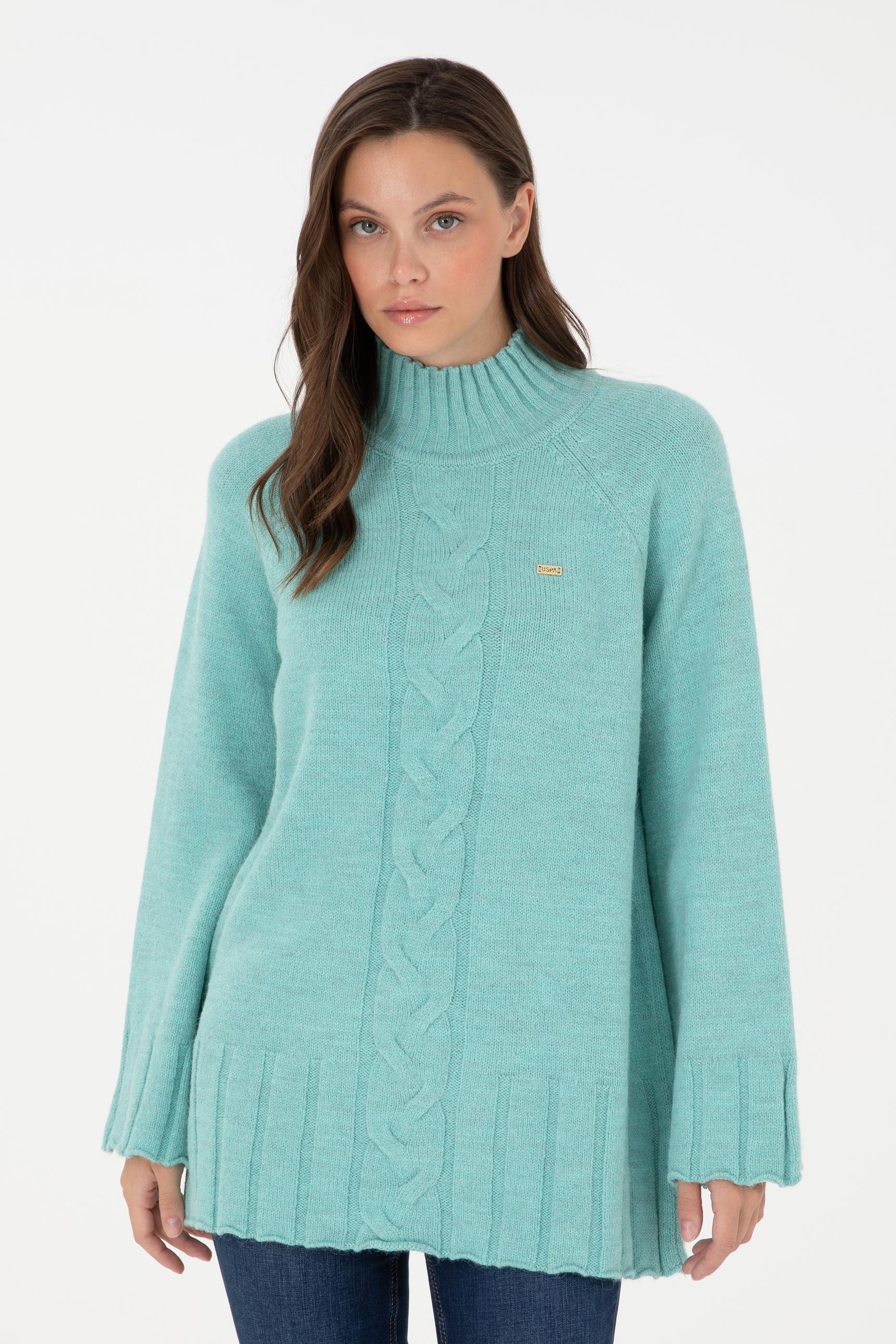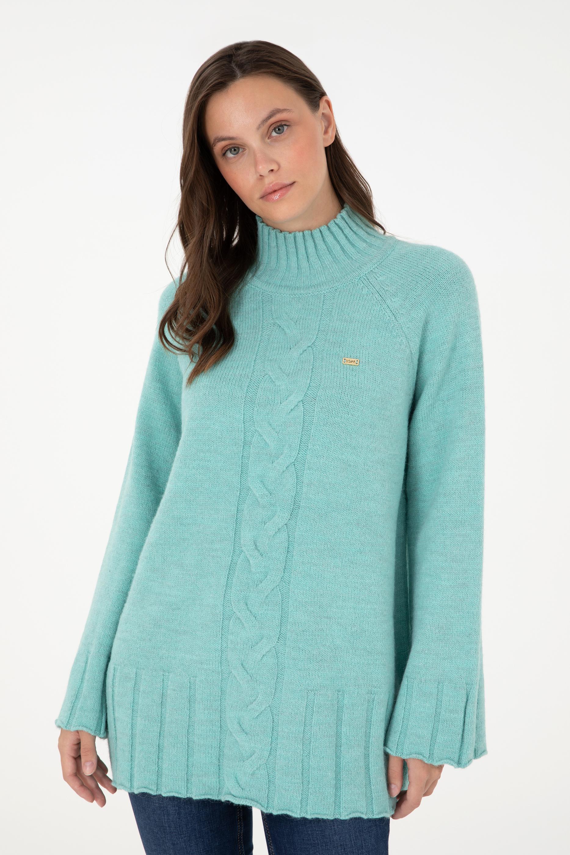 Kadın Su Yeşili Balıkçı Yaka Kazak