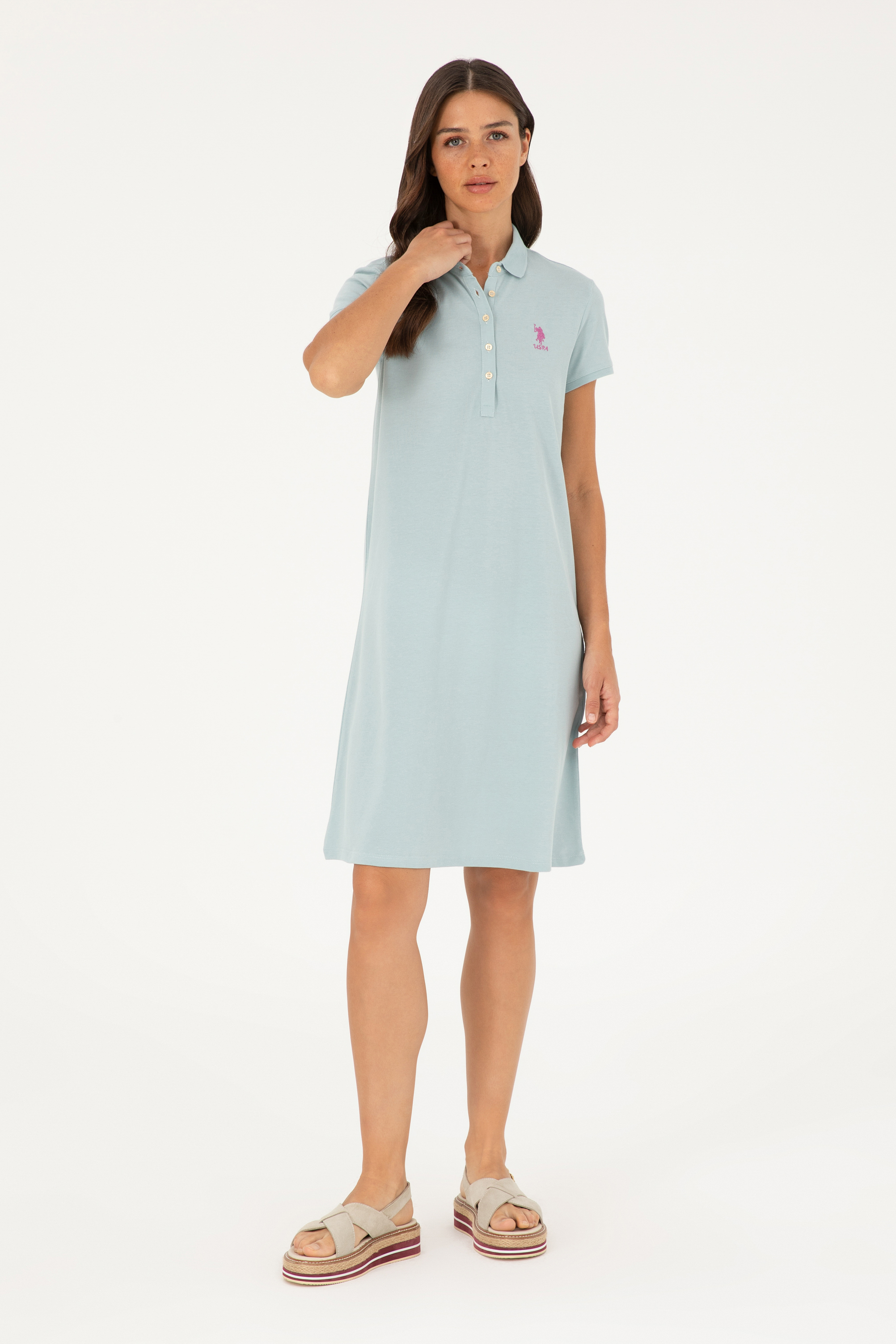 Kadın Su Yeşili Polo Yaka Mini Boy Örme Elbise