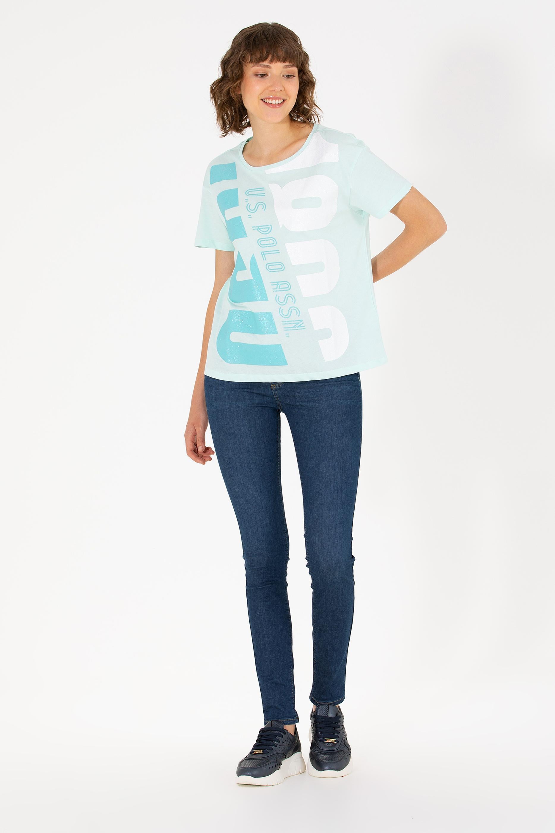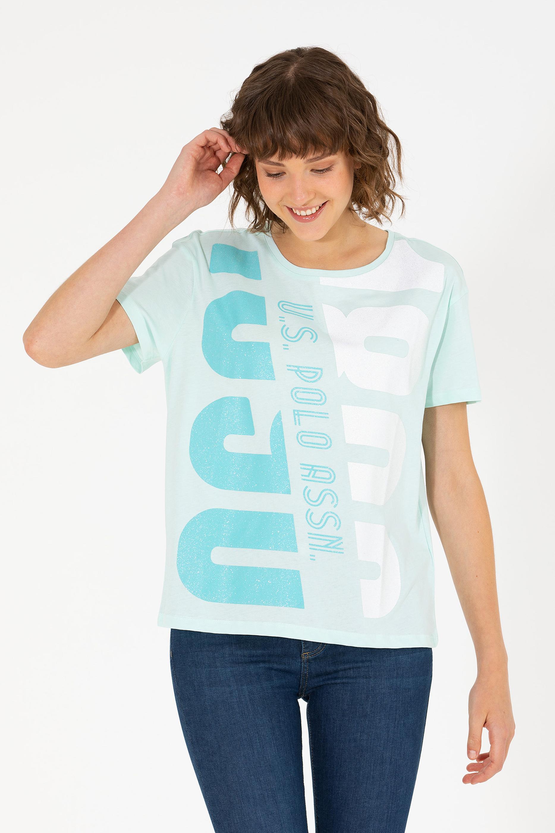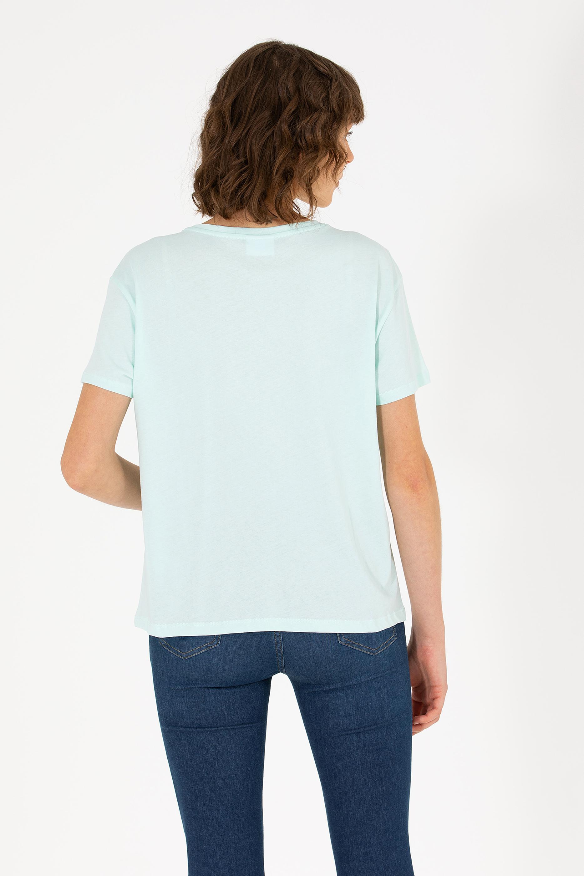 Kadın Su Yeşili Bisiklet Yaka Tişört
