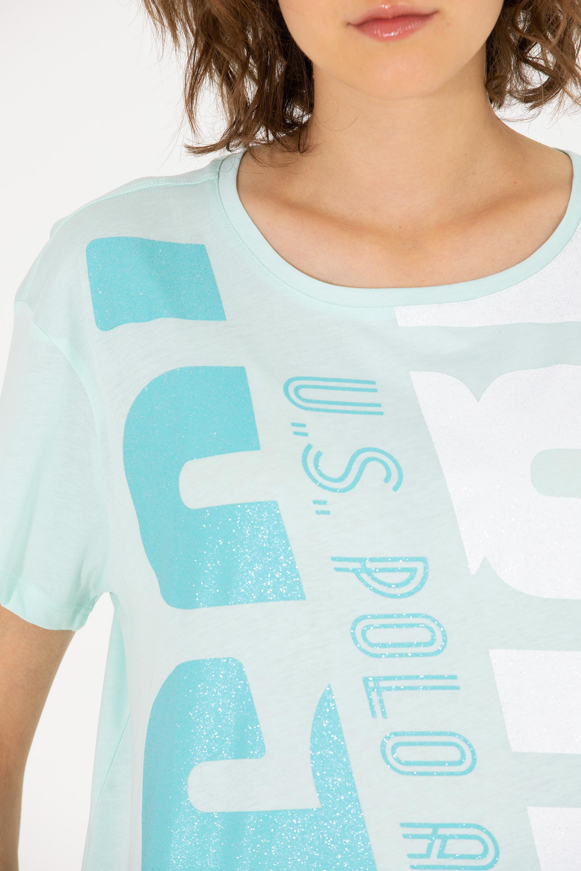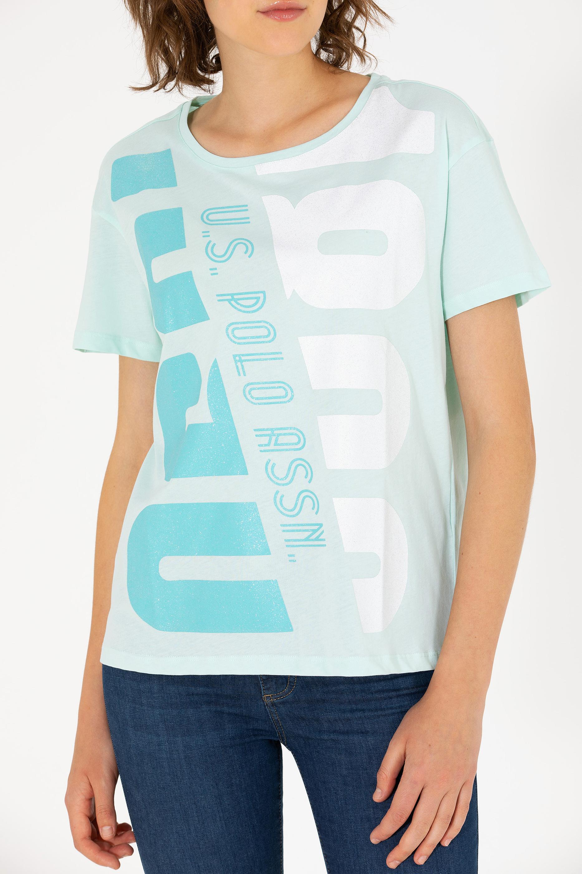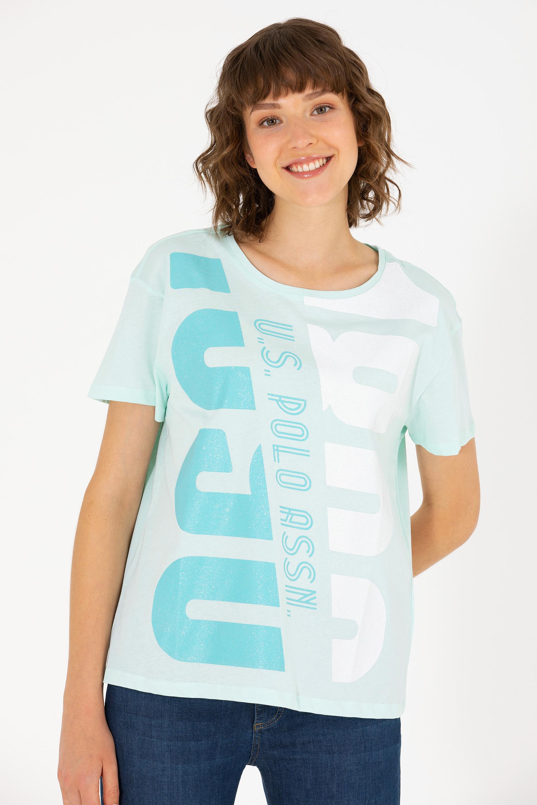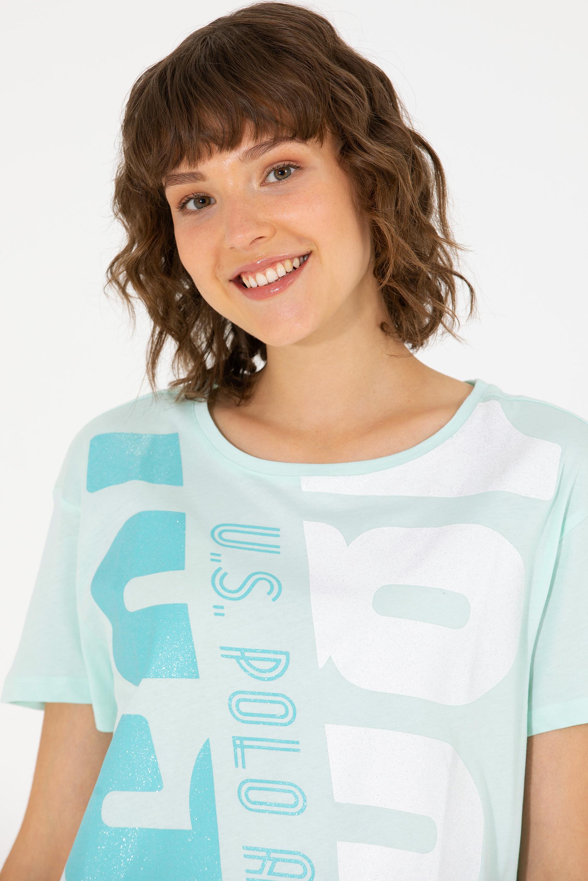 Kadın Su Yeşili Bisiklet Yaka Tişört