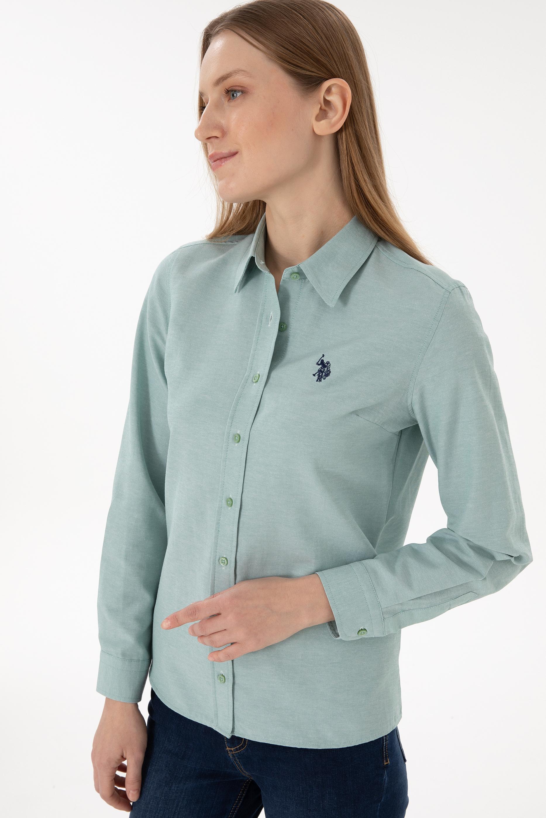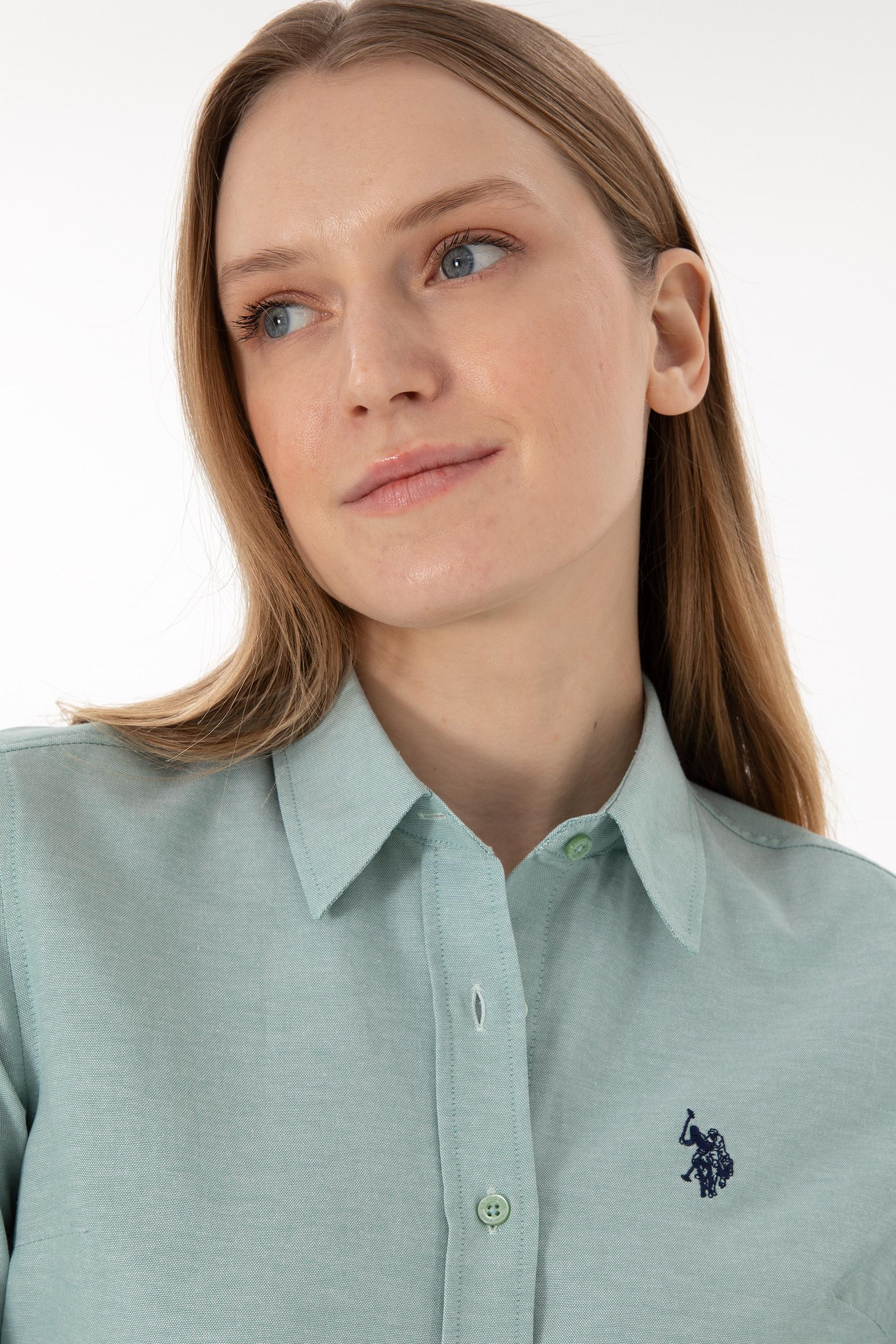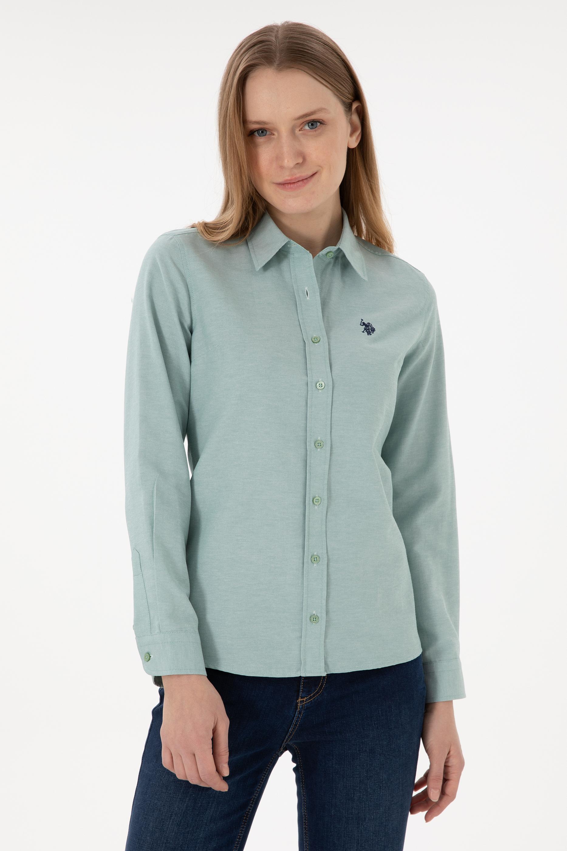 - Kadın Su Yeşili Uzun Kollu Basic Gömlek