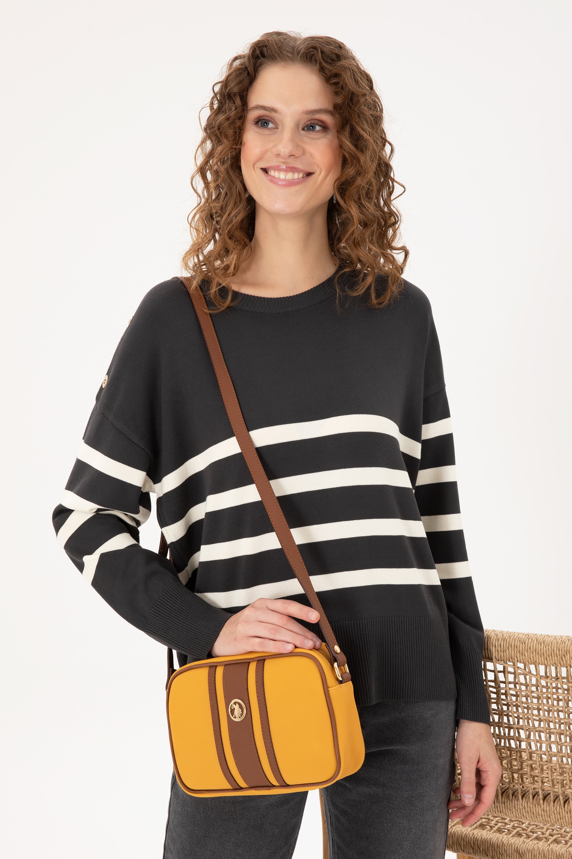 U.S. Polo Assn. taba kadın çapraz çanta,kahverengi şerit detayları ve kompakt tasarımıyla sportif şıklığın en fonksiyonel hâlini sunuyor. Hafif yapısı ve ayarlanabilir omuz askısıyla gün boyu konfor sağlayan bu model, küçük boyutuna rağmen günlük temel eşyalarınızı taşıyabileceğiniz kullanışlı bir iç hacme sahiptir. Metalik logo rozetiyle tamamlanan tasarım, hem denim pantolonlar hem de casual elbiselerle kolayca kombinlenebilir. Hafta sonu gezilerinden şehir içi rutinlere kadar her ana eşlik edebilecek bu çanta, dinamik bir stilin vazgeçilmez parçasıdır.