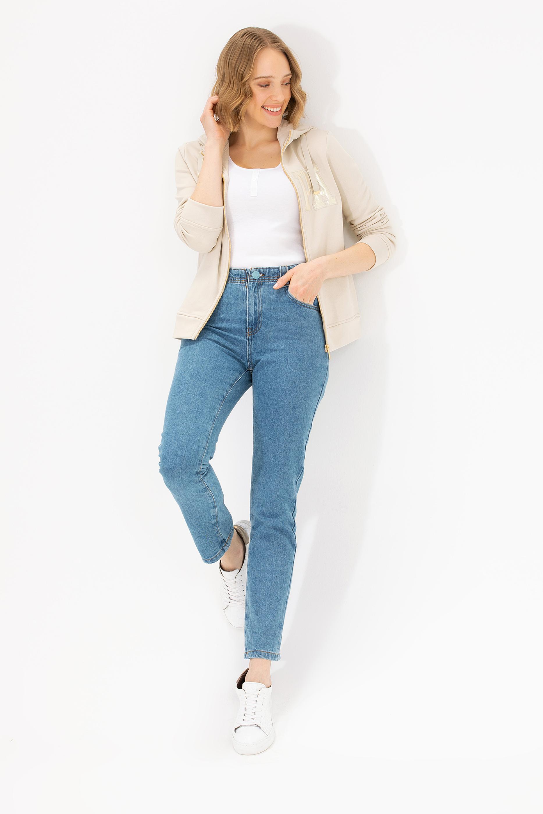 Kadın Taş Kapüşonlu Fermuarlı Basic Sweatshirt - 50262653087