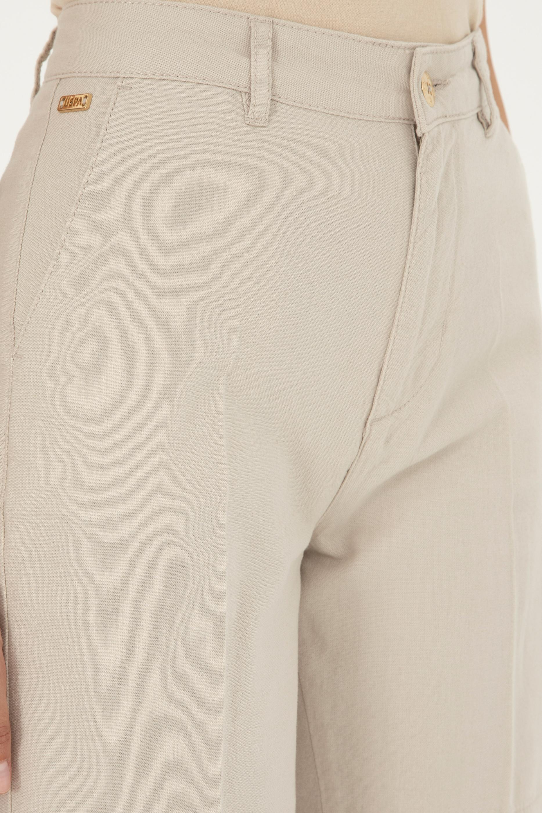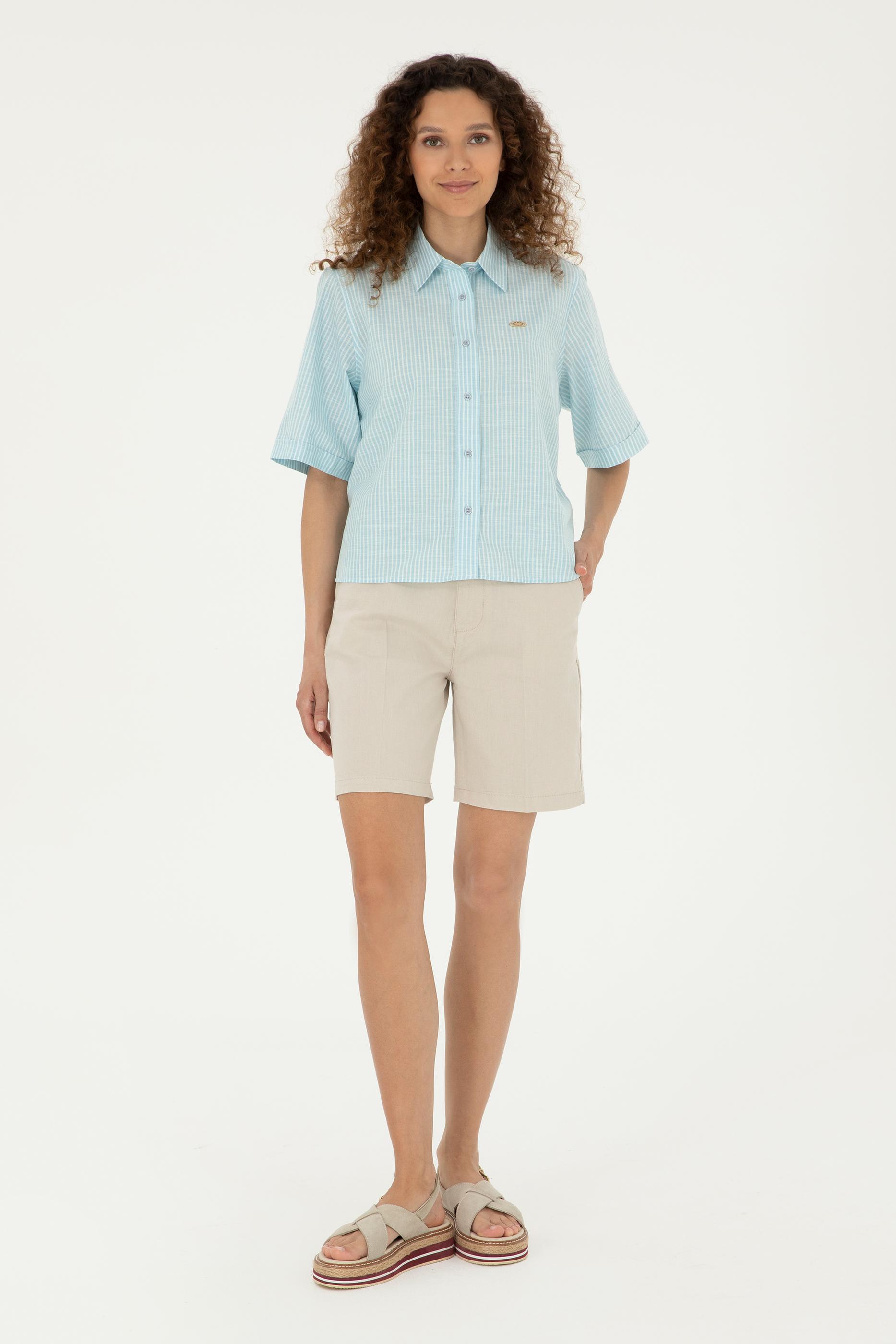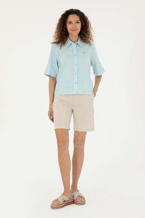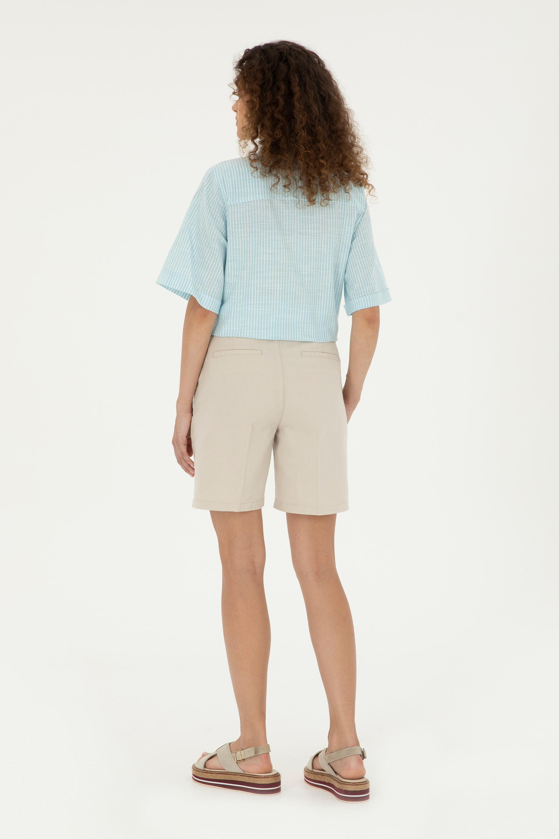Kadın Taş Keten Görünümlü Dokuma Şort