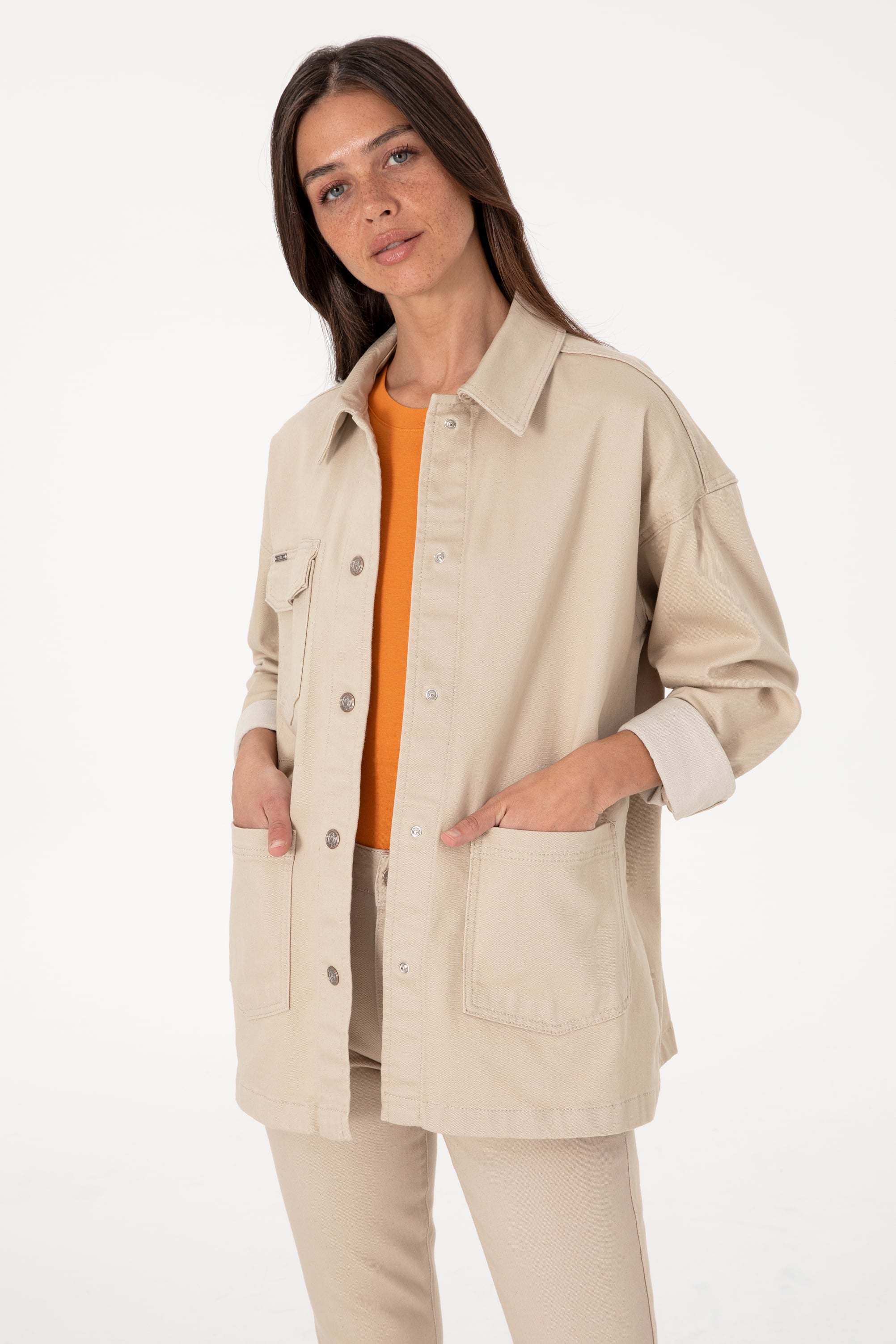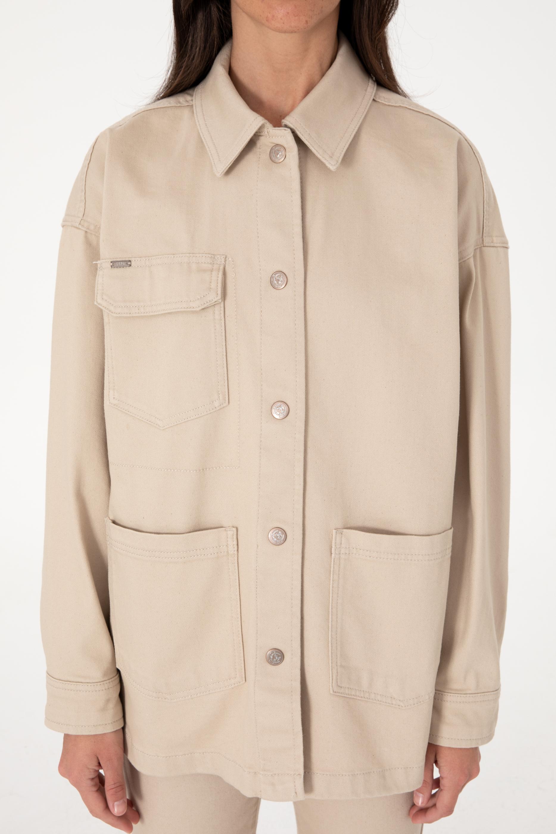 - Kadın Taş Jean Uzun Kollu Tunik Gömlek