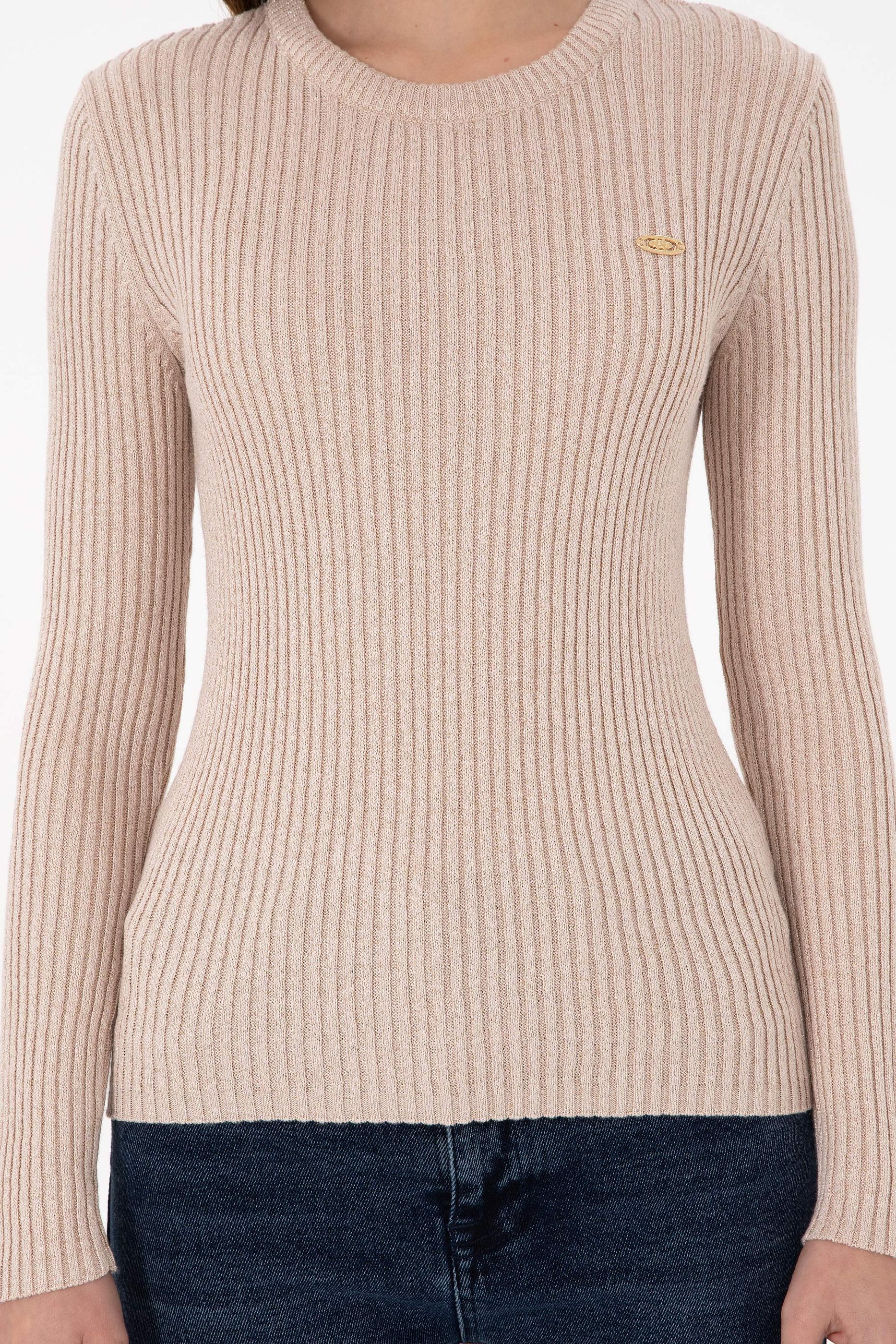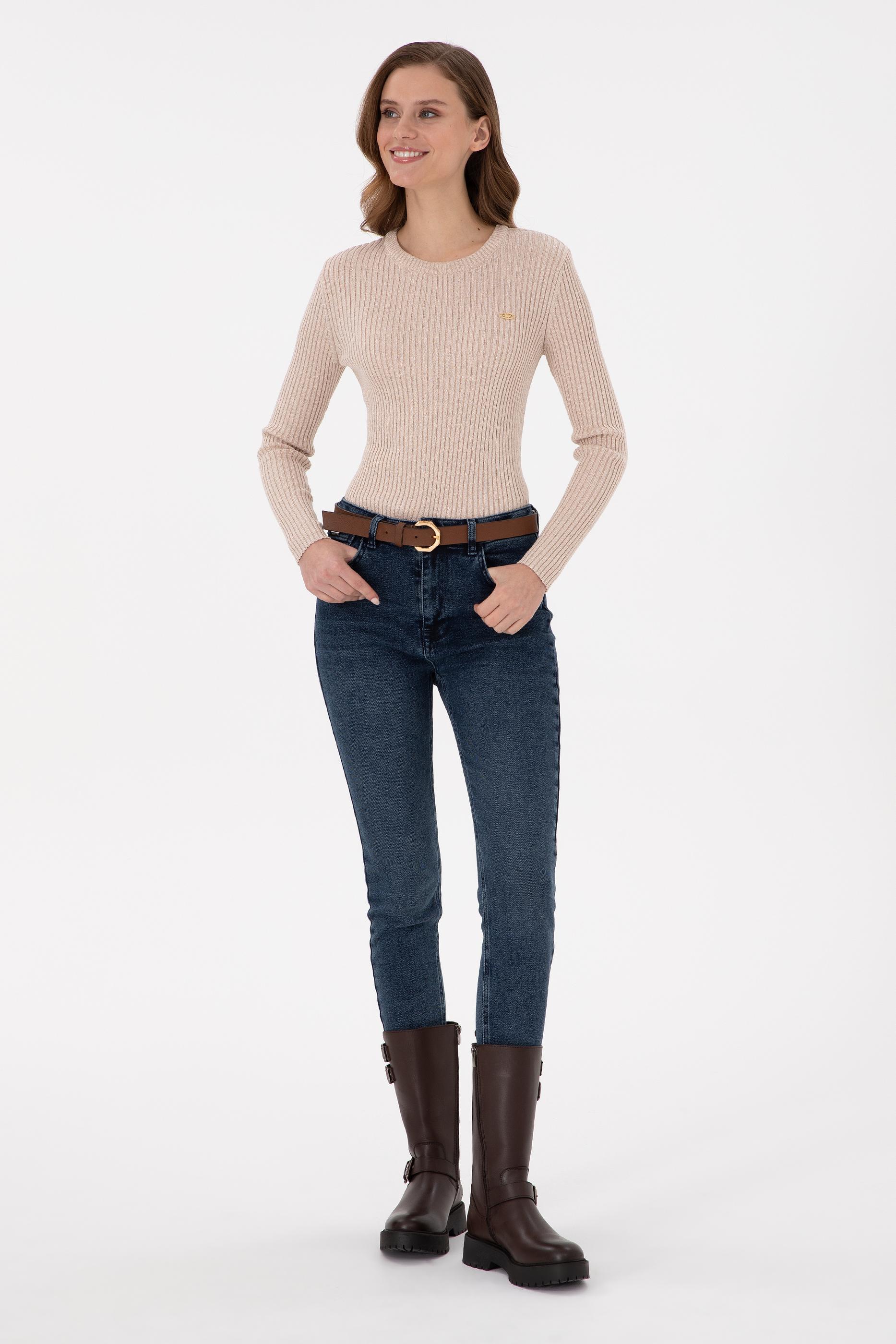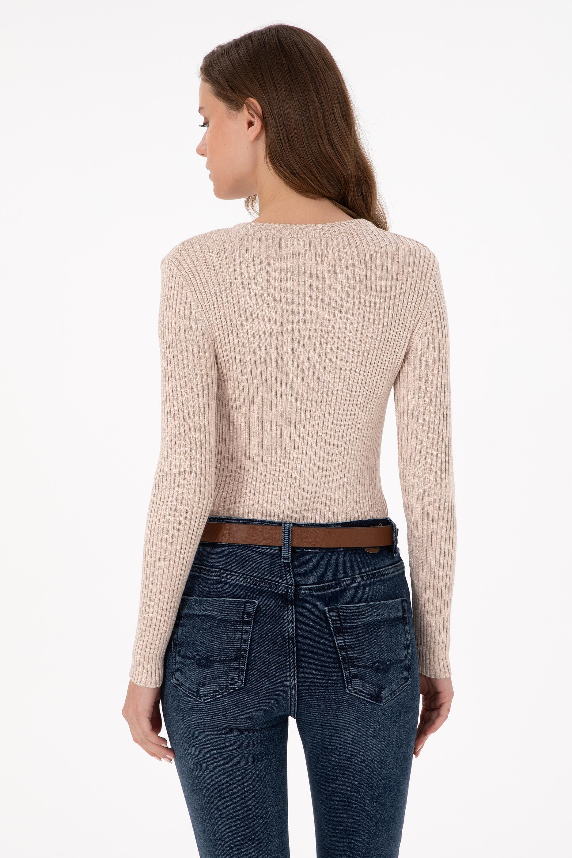 Kadın Taş Simli Bisiklet Yaka Kazak